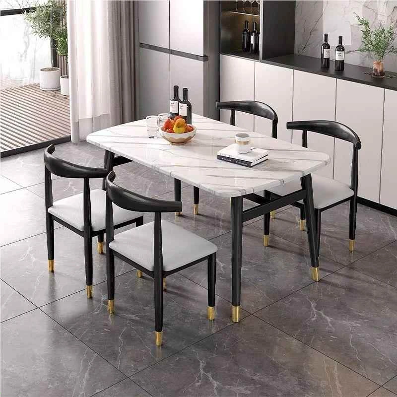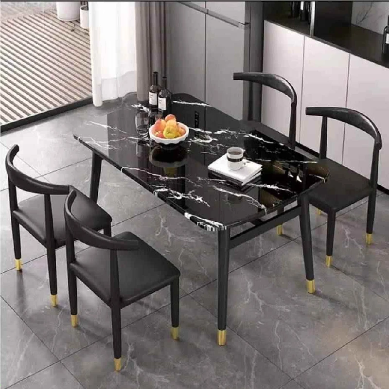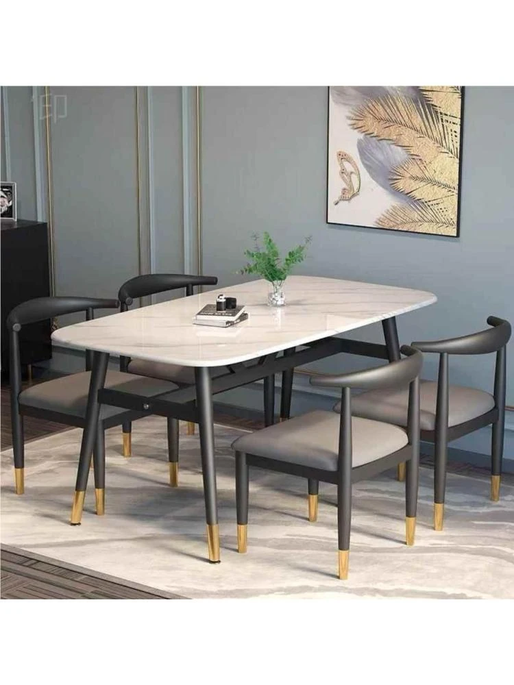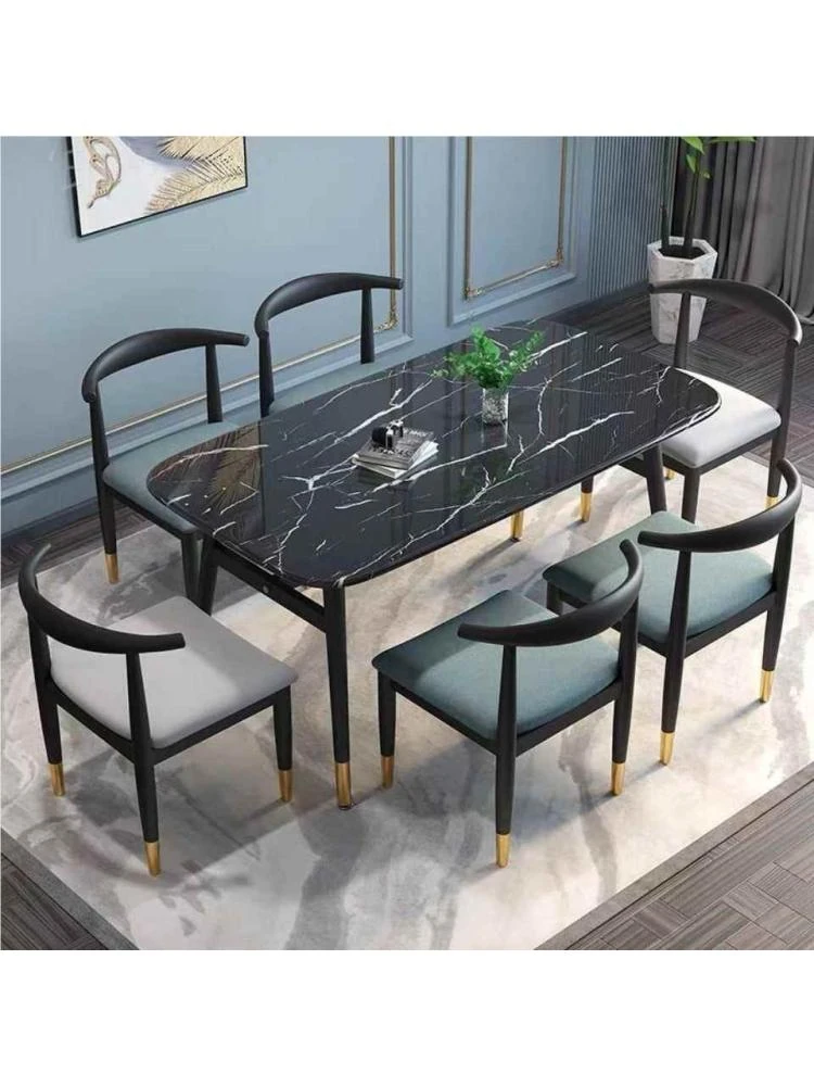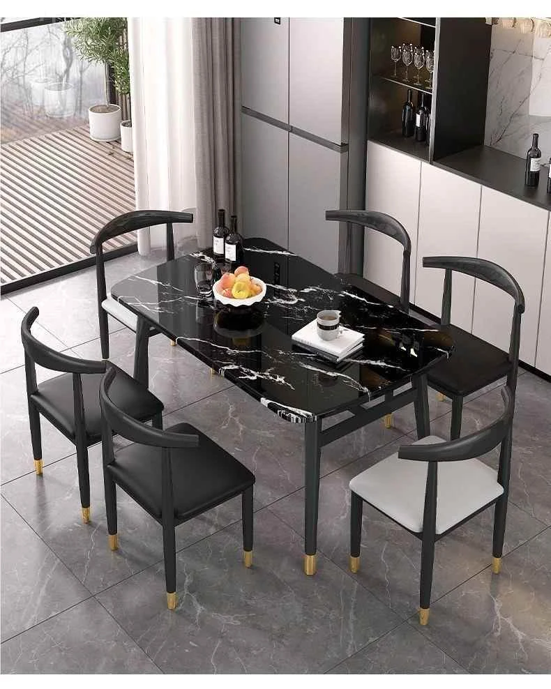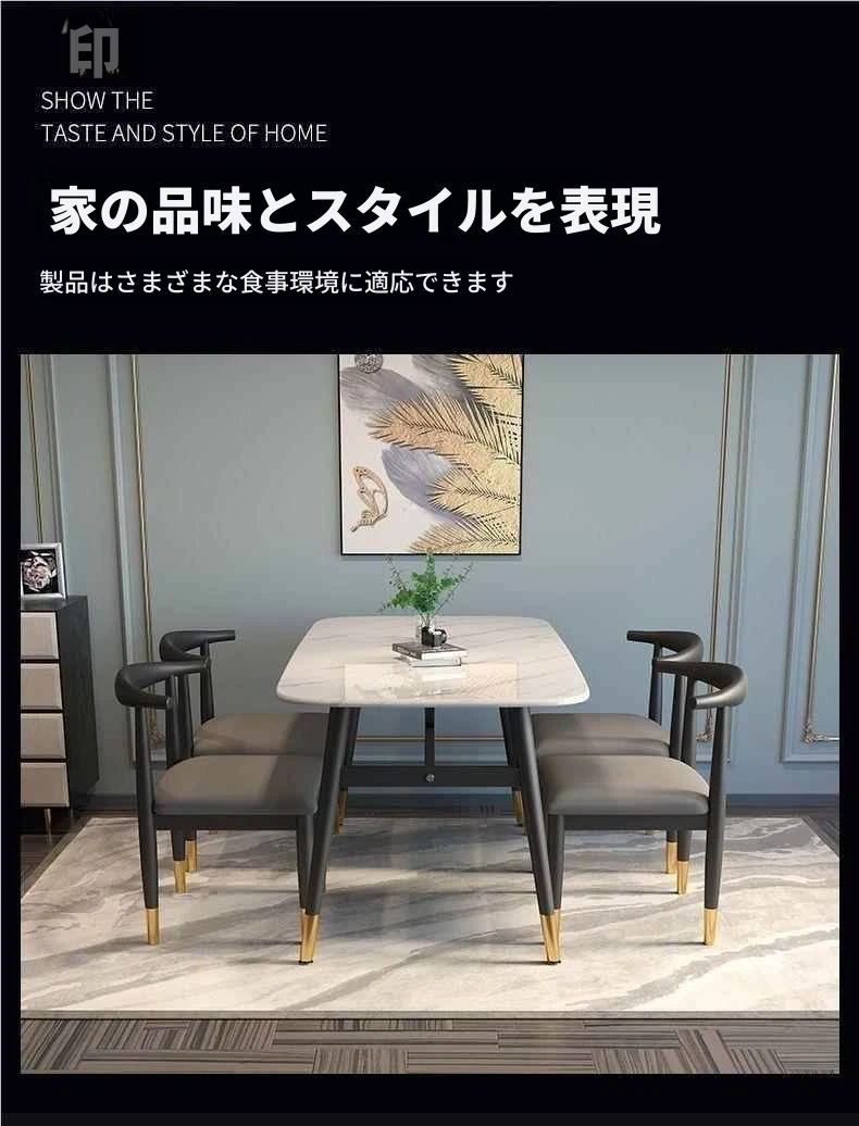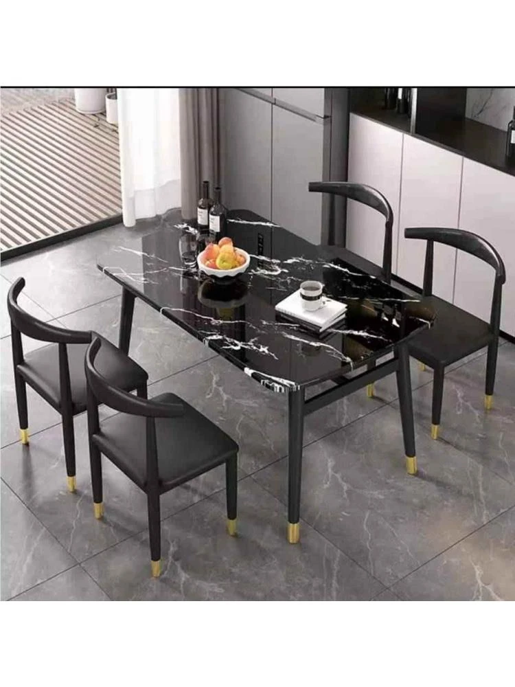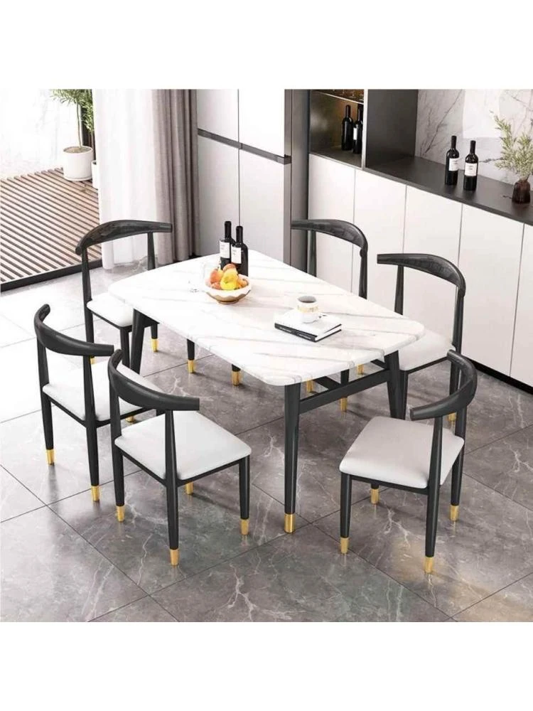 モダンでシンプルな軽奢ダイニングテーブルセット - 厚手の大理石風デザイン、家庭用に最適!新作のテーブルと椅子のコンビネーションで、スタイリッシュな食卓を演出します。