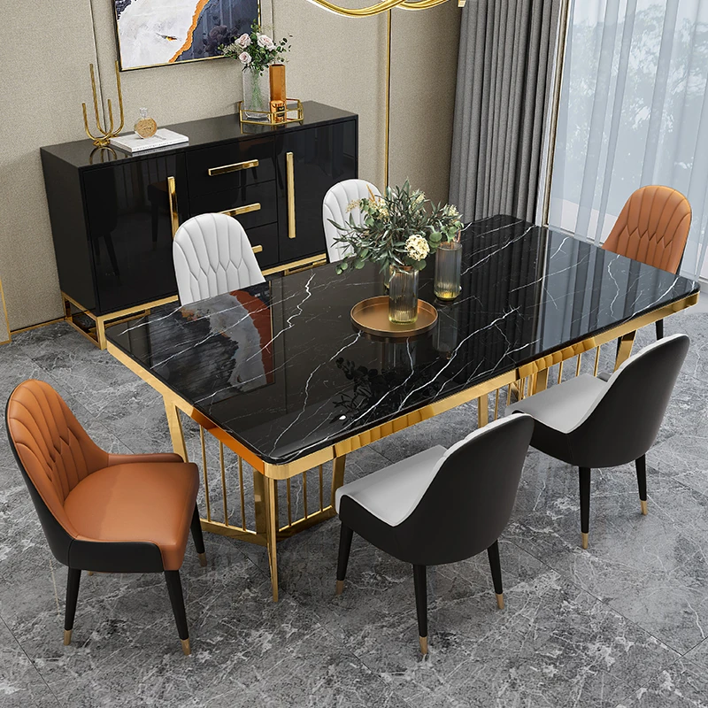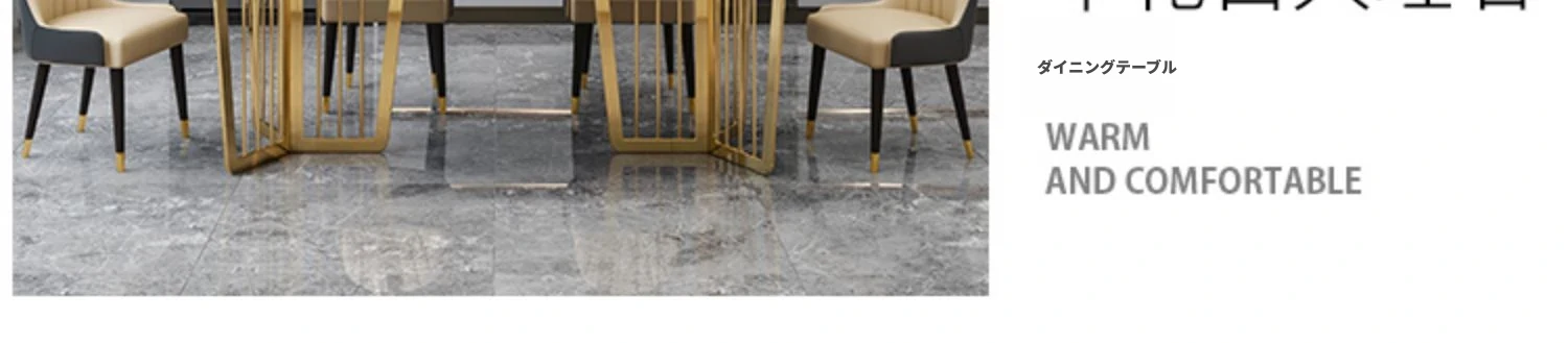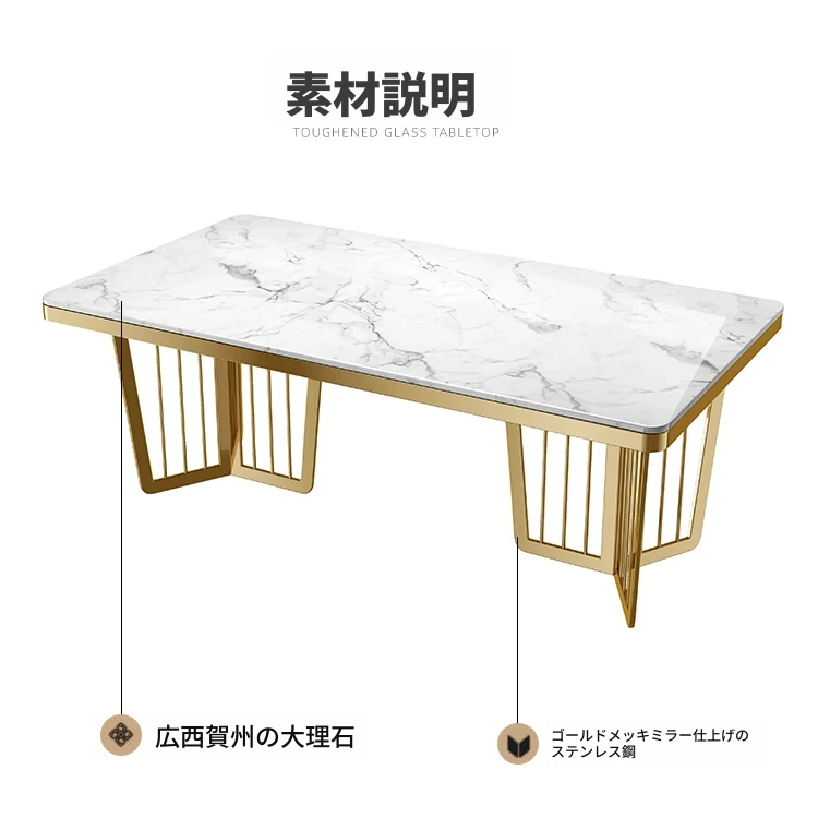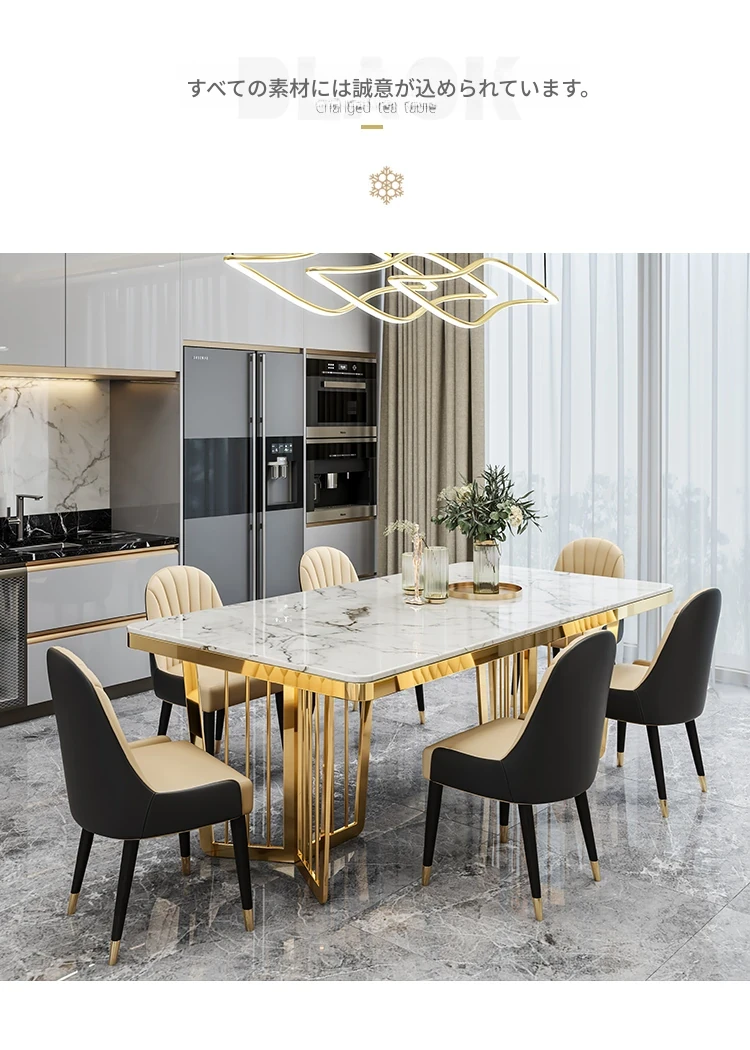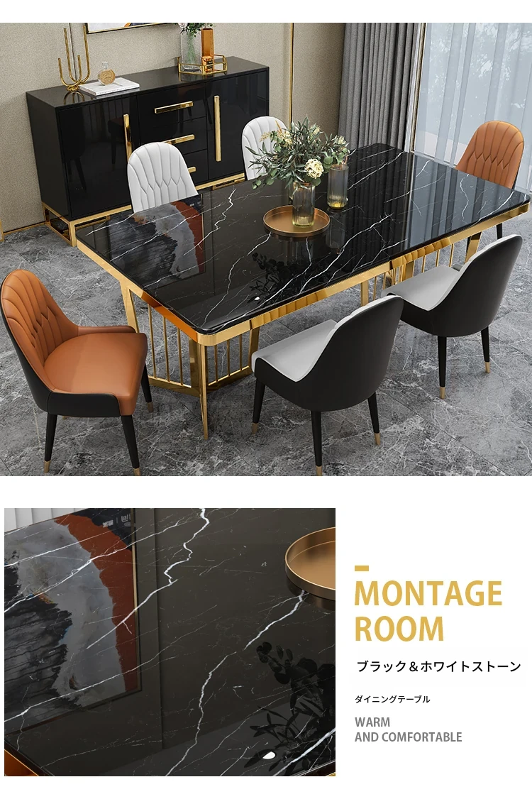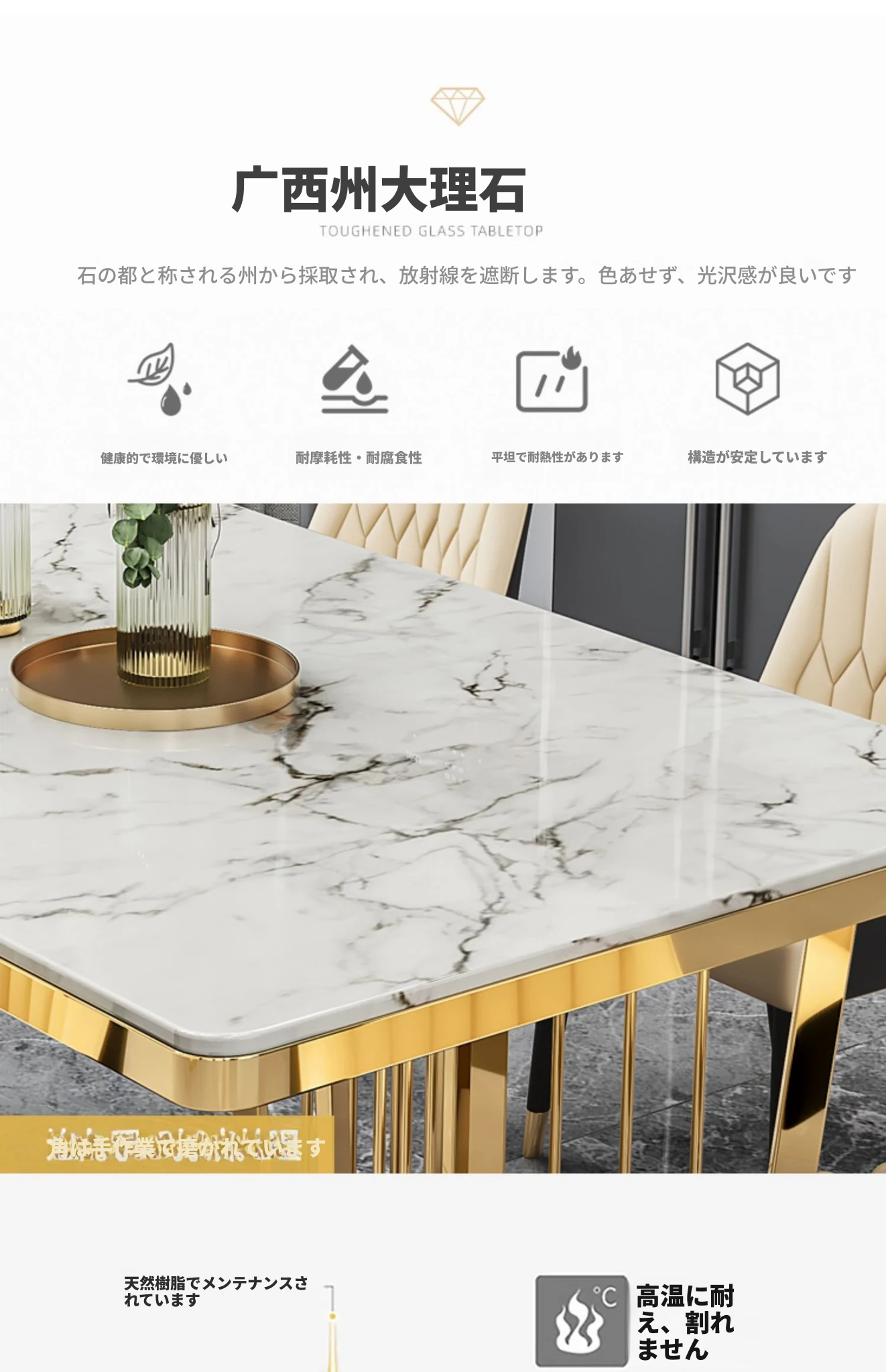 軽やかで贅沢な大理石製ダイニングテーブル&チェアセット!モダンでシンプルな長方形デザイン、北欧スタイルの小型住居にもぴったり。家族や友人との食事を特別なひとときに演出します。