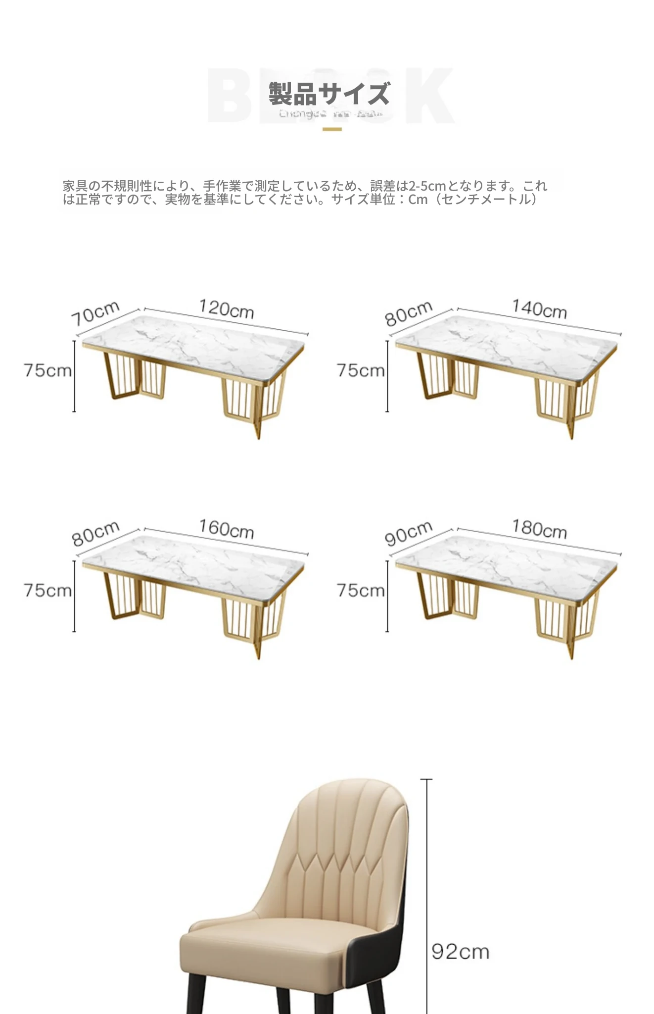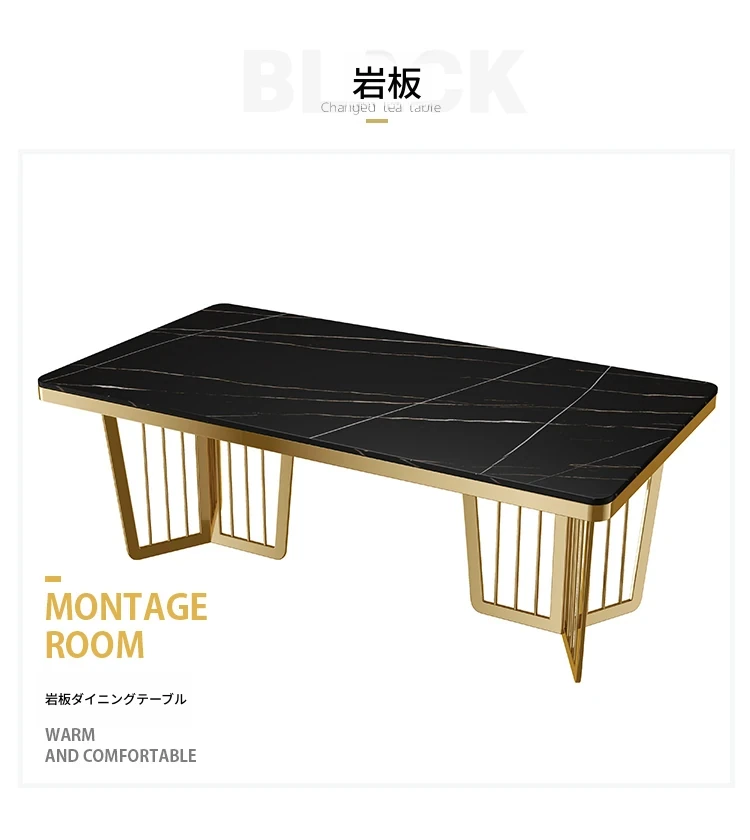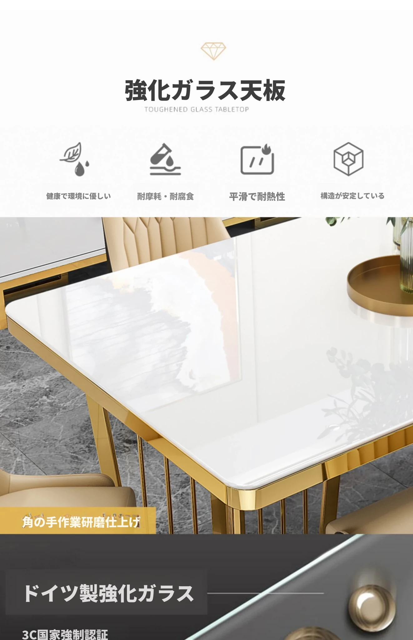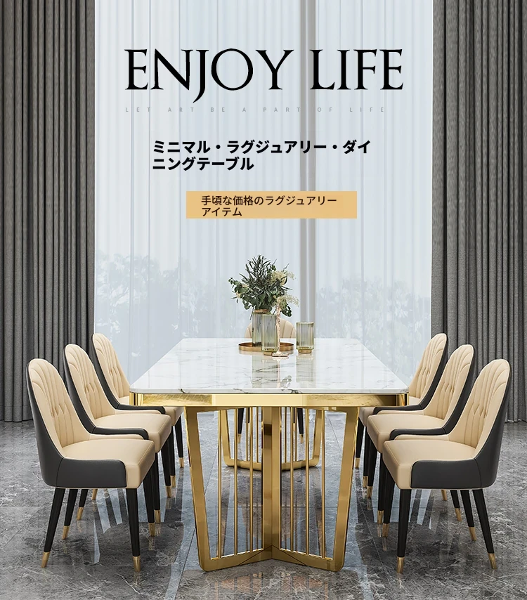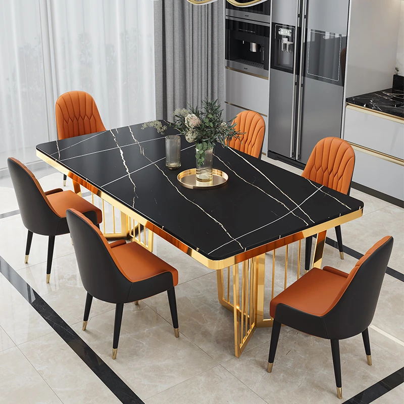軽やかで贅沢な大理石製ダイニングテーブル&チェアセット!モダンでシンプルな長方形デザイン、北欧スタイルの小型住居にもぴったり。家族や友人との食事を特別なひとときに演出します。