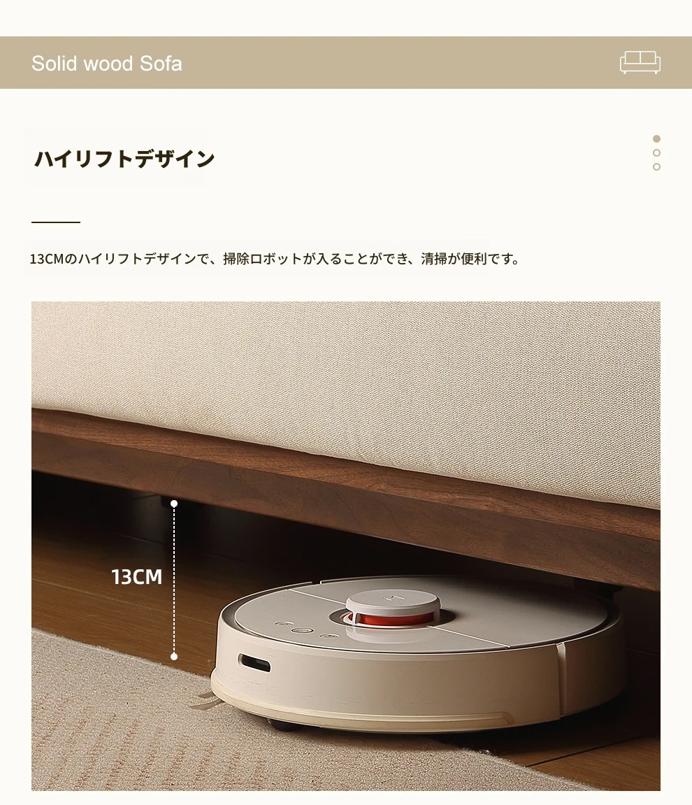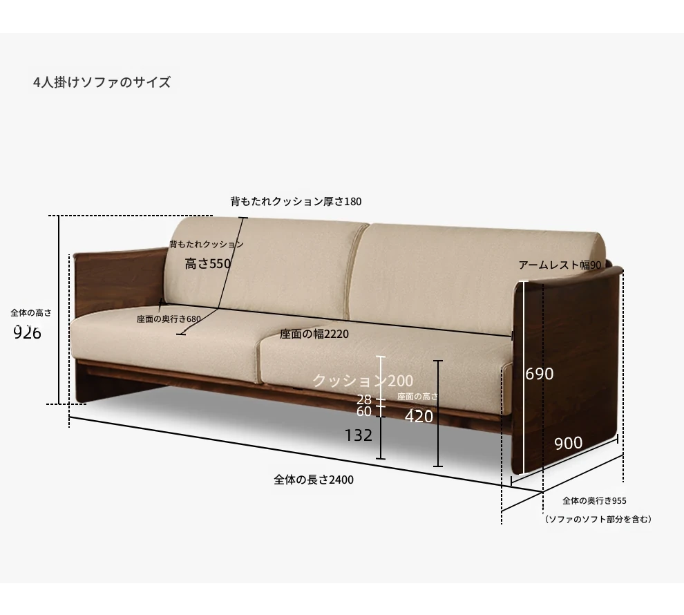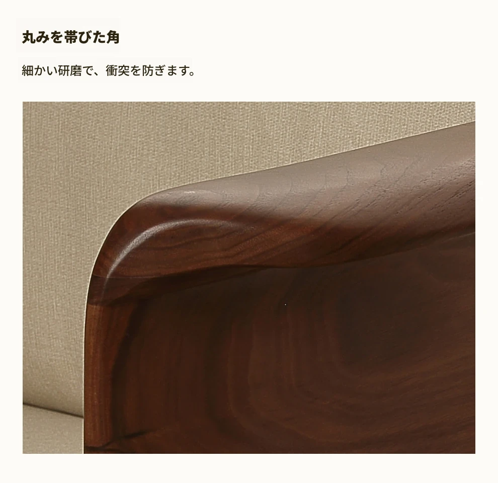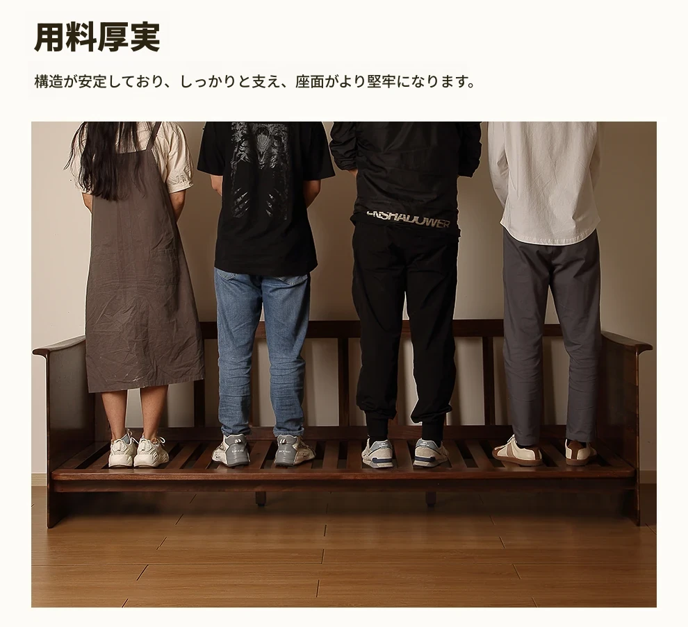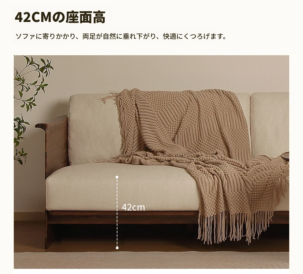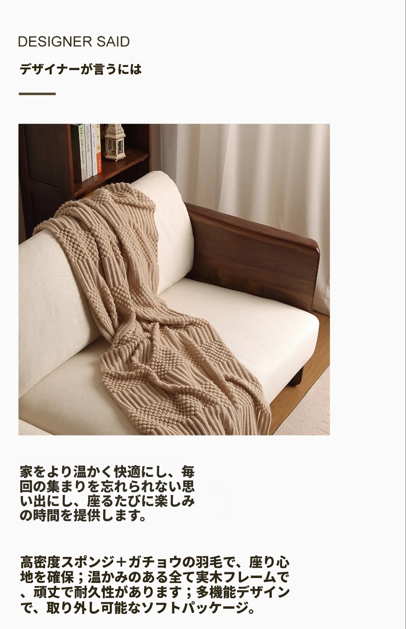 北米産ブラックウォールナットのシンプルなリビングソファ - 天然木の風合いを活かしたモダンデザイン、全実木構造で耐久性抜群!布地の柔らかさが心地よい、スタイリッシュな空間を演出します。
