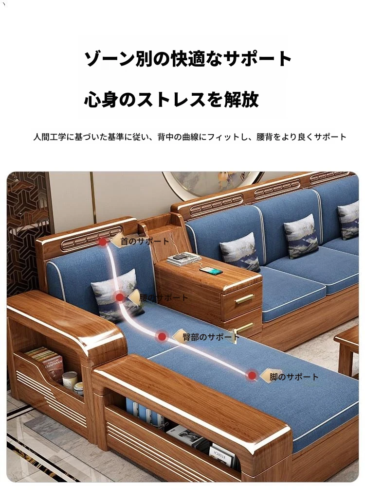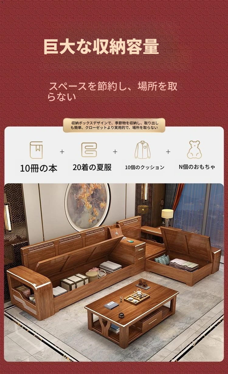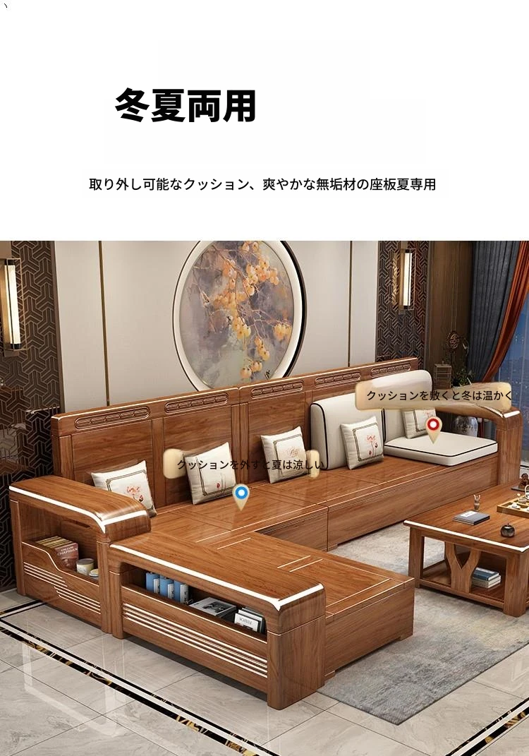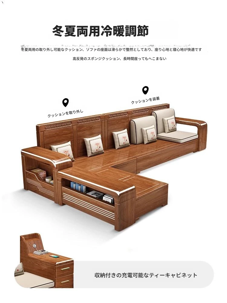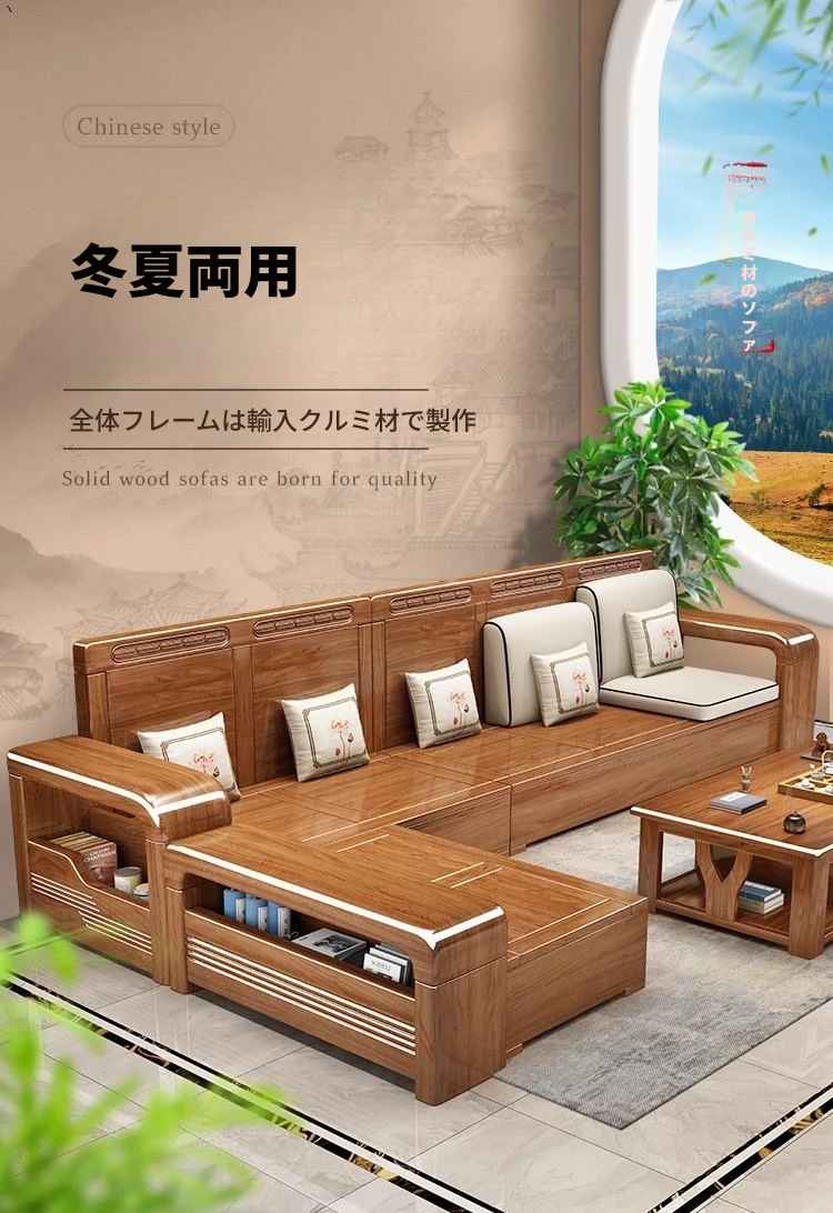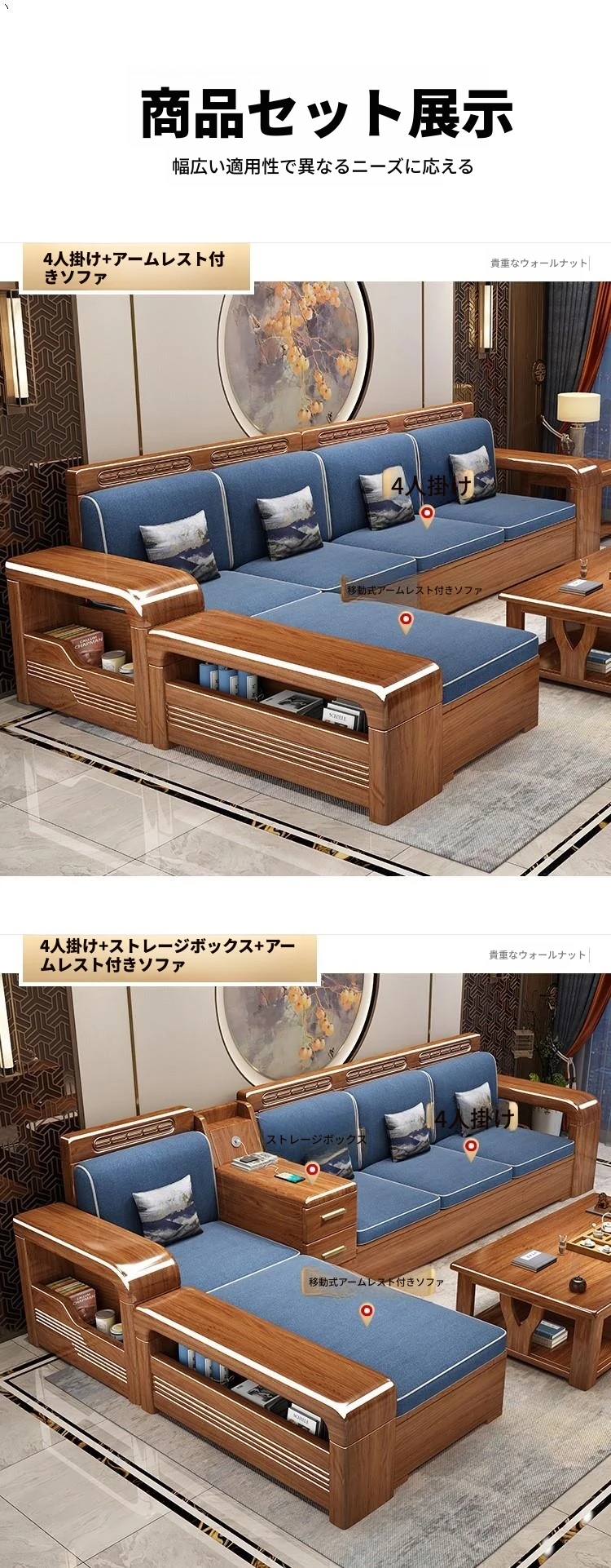 【ウォールナット】4人掛け+貴妃ソファ+中箱