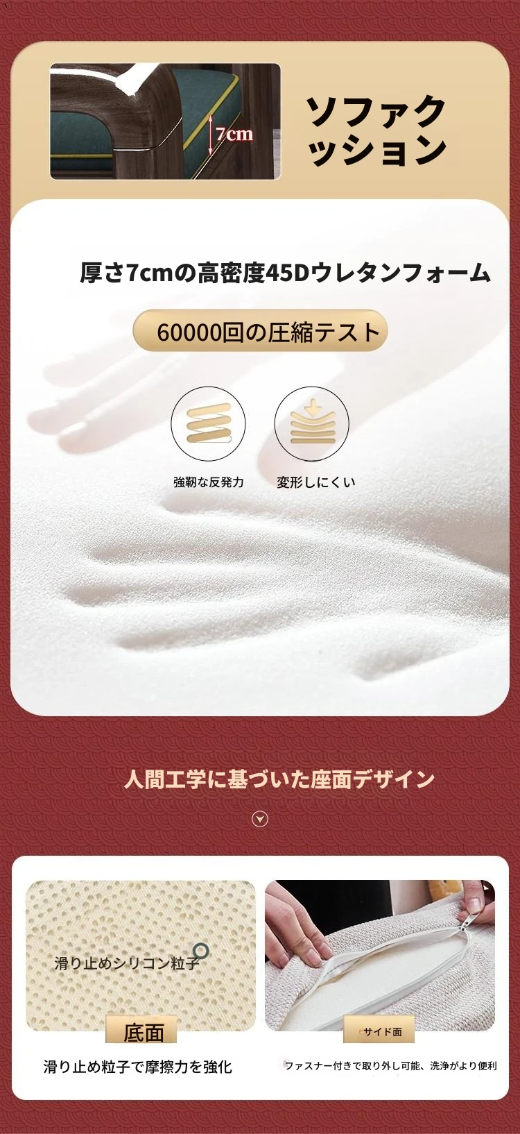 【ウォールナット】直排3人掛け(2.22メートル)+コーヒーテーブル
