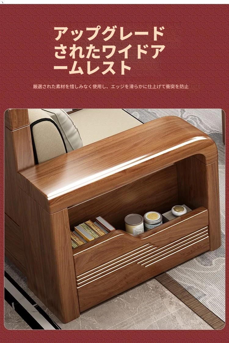 【ウォールナット】3人掛け+貴妃ソファ+中箱