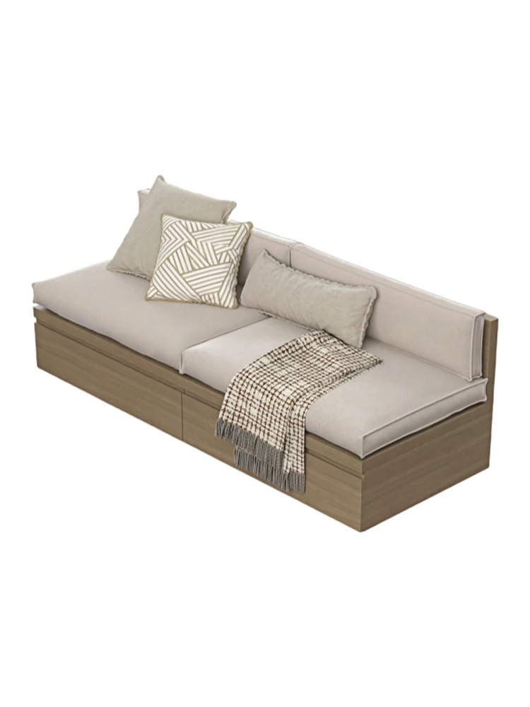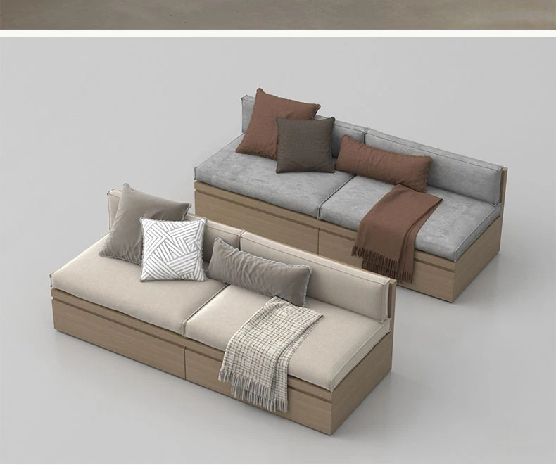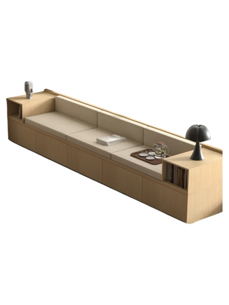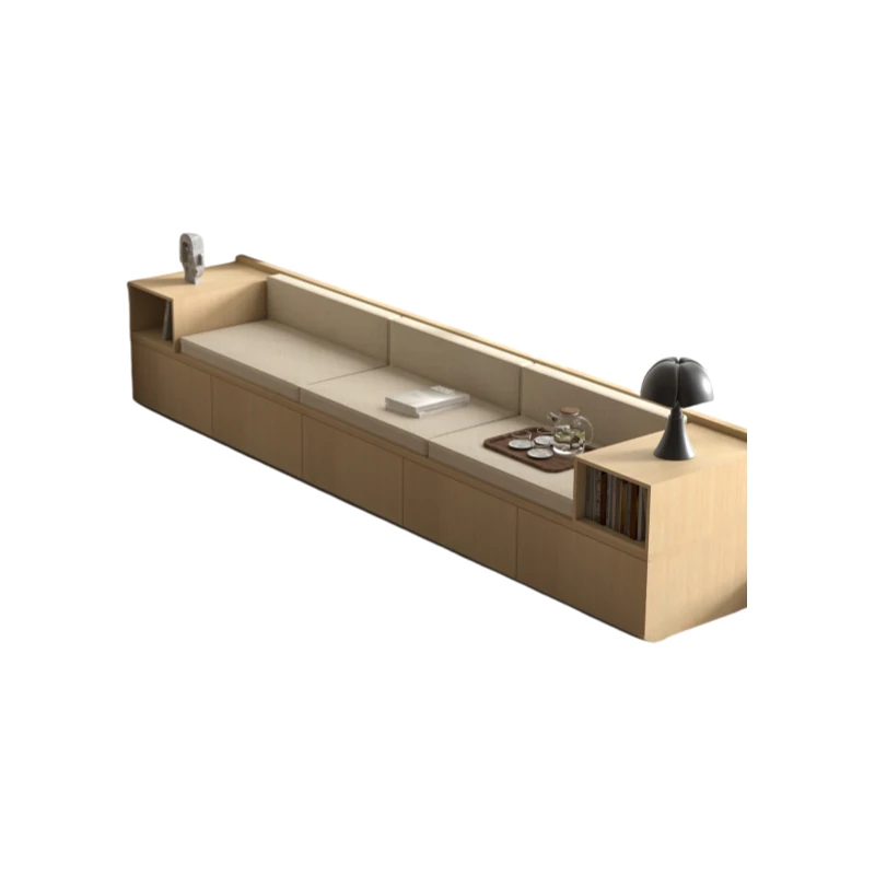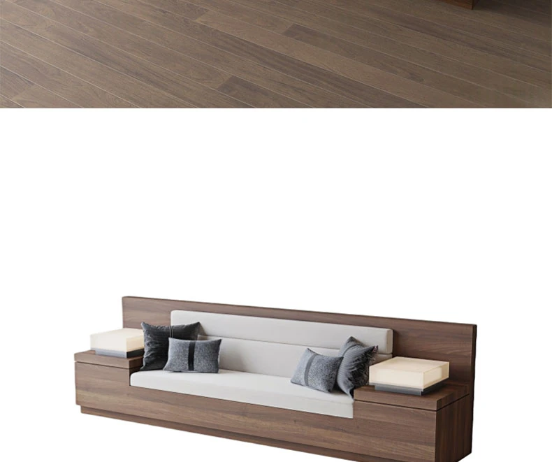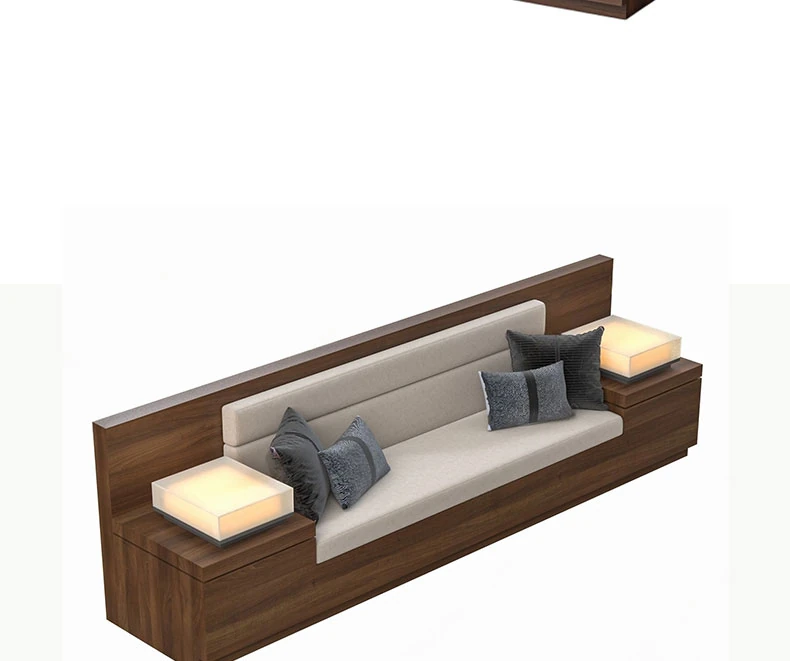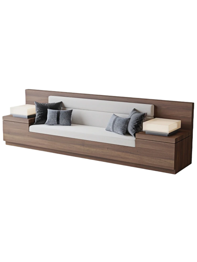 新中式デザインの無垢材製ストレートソファー - モダンでシンプルな別荘リビングルーム向けのモデルルームや販売所に最適。快適な座り心地と洗練されたスタイルで、上質な空間を演出します。