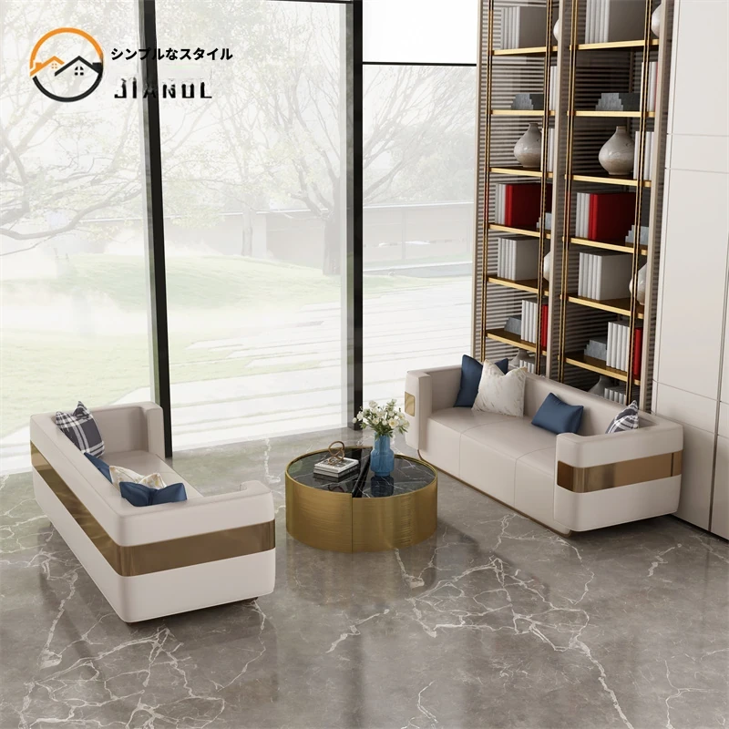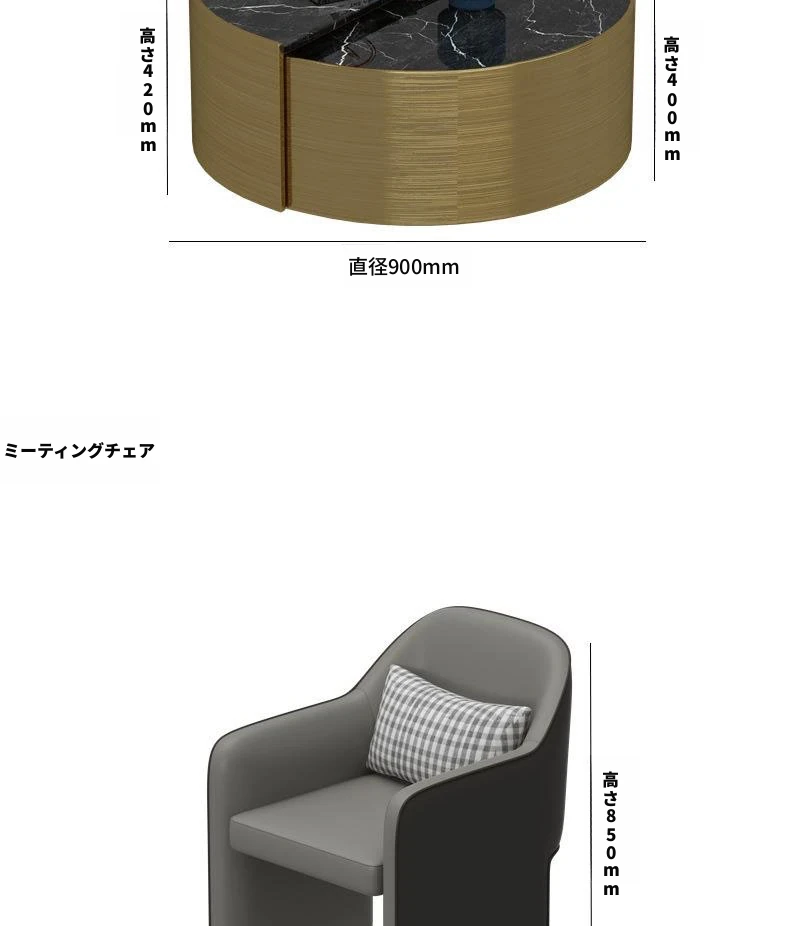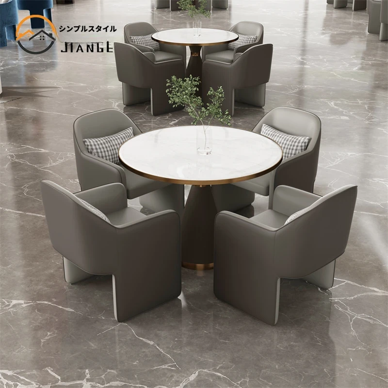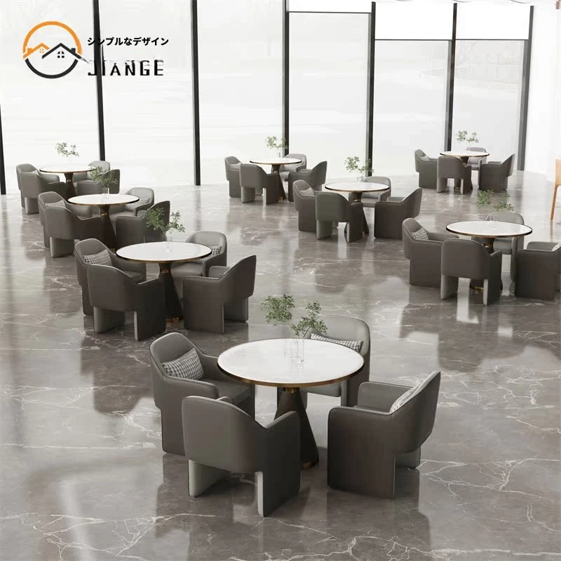現代的なホテルの受付にぴったり!アートな美容院やモデルルームにも最適な、スタイリッシュなソファセット。快適な商談スペースを提供する、洗練されたデザインのテーブルと椅子のコンビネーション。