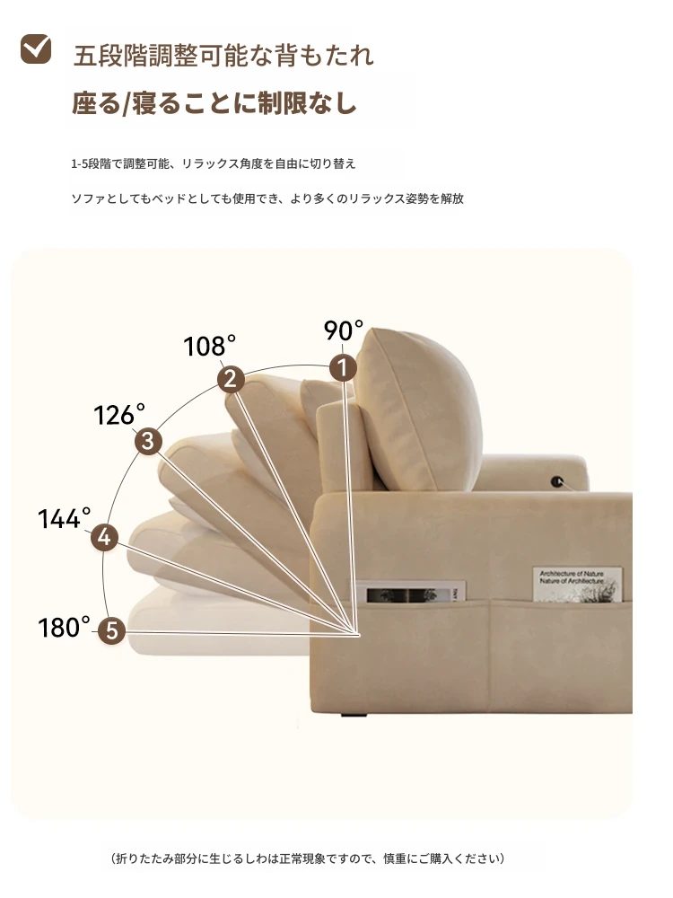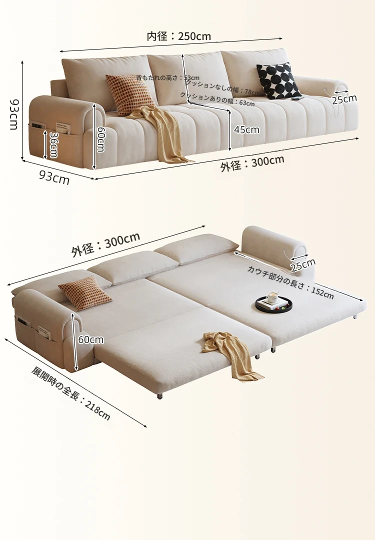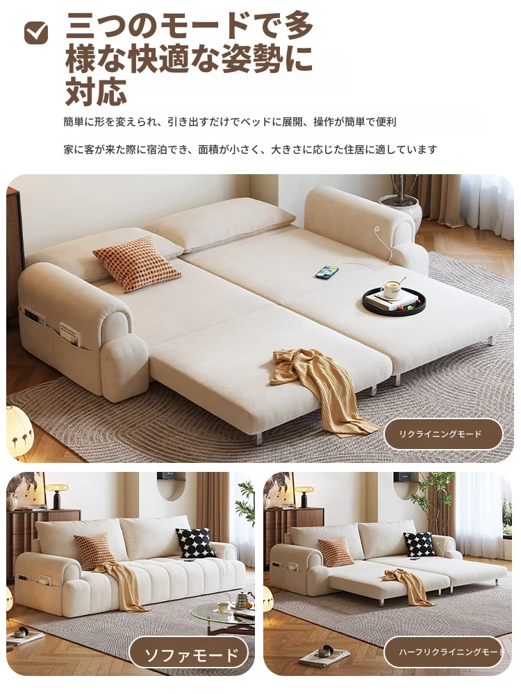 ふわふわ雲のソファベッド|折りたたみ式リビング用|原木デザインのコンパクト2人用|和風スタイルの小型木製ソファベッド|スペースを有効活用!快適な眠りとくつろぎを両立!