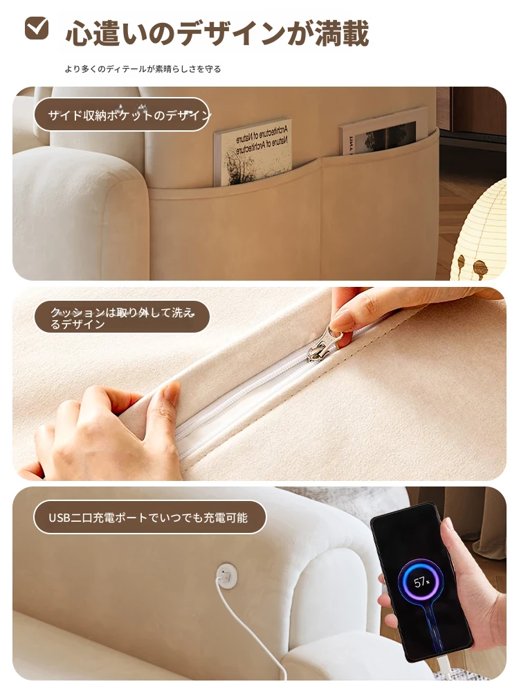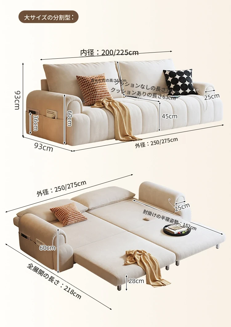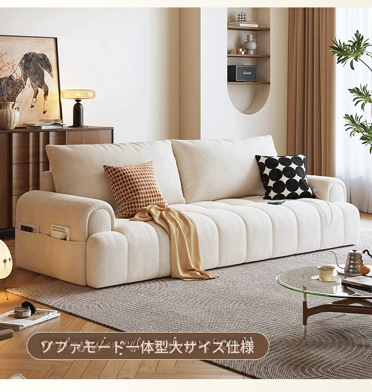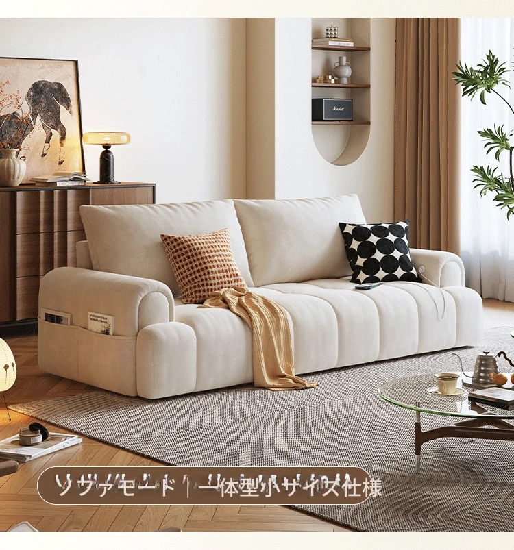 木宮工房のクリームシューソファー - リビングに最適なコンパクトサイズ、伸縮可能で折りたたみ式の2WAYデザイン。2025年新作、快適さとスタイルを両立したおしゃれなソファベッド!
