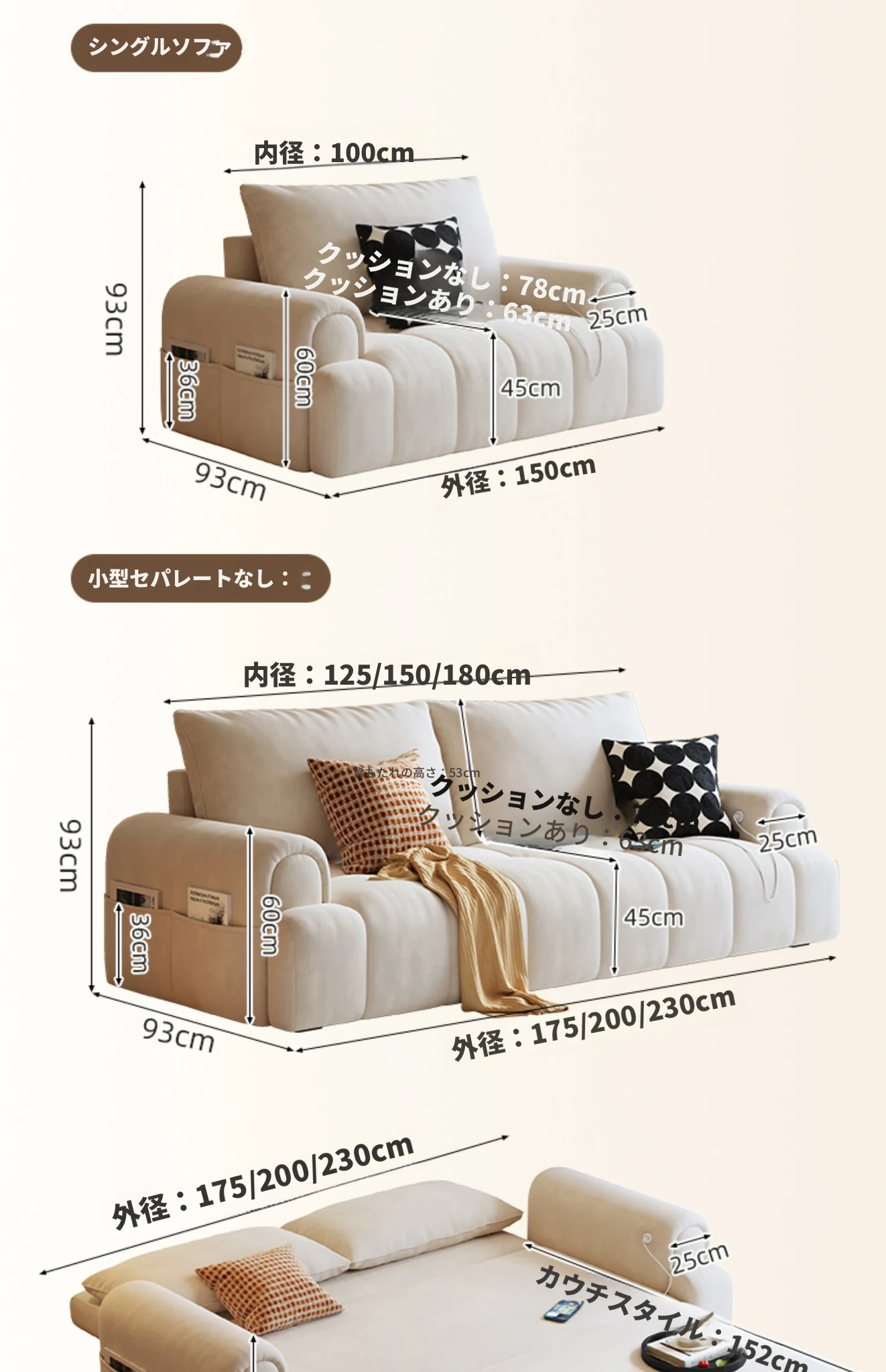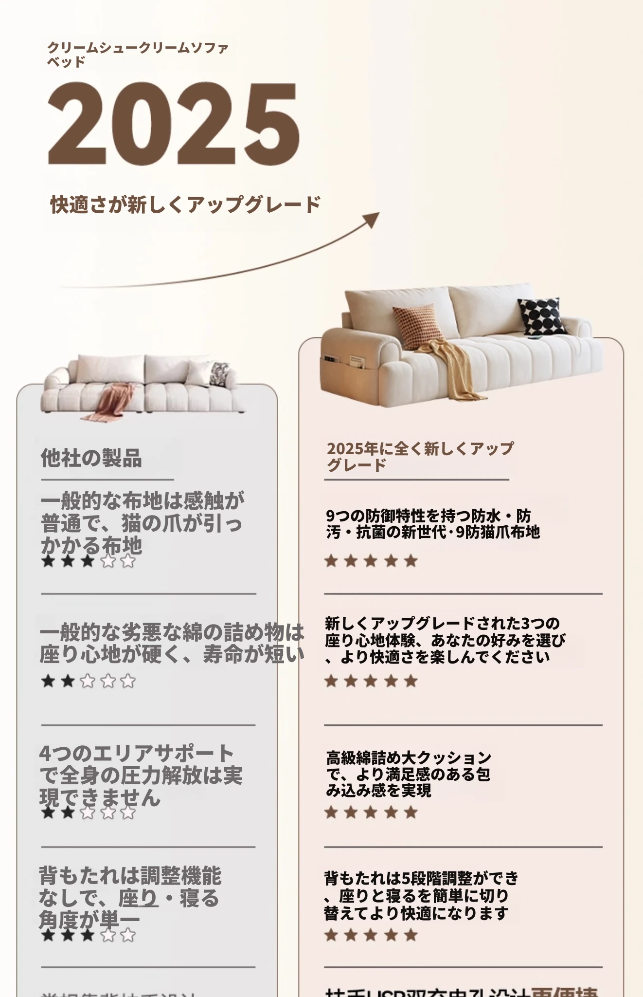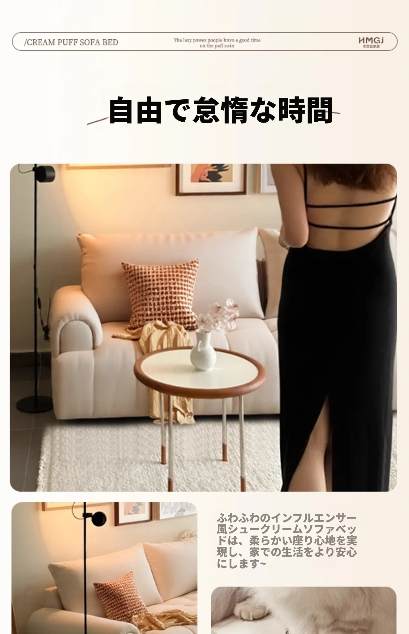 木宮工房のクリームシューソファー - リビングに最適なコンパクトサイズ、伸縮可能で折りたたみ式の2WAYデザイン。2025年新作、快適さとスタイルを両立したおしゃれなソファベッド!