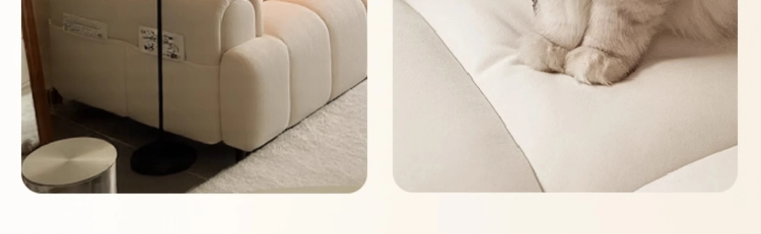 政府補助付き!琦涵のクリーミーな風合いのキャットクッションパフソファ。リビングやホテル、民宿に最適な、くつろぎのためのラウンジソファ!猫も喜ぶ、柔らかさとデザインが魅力。