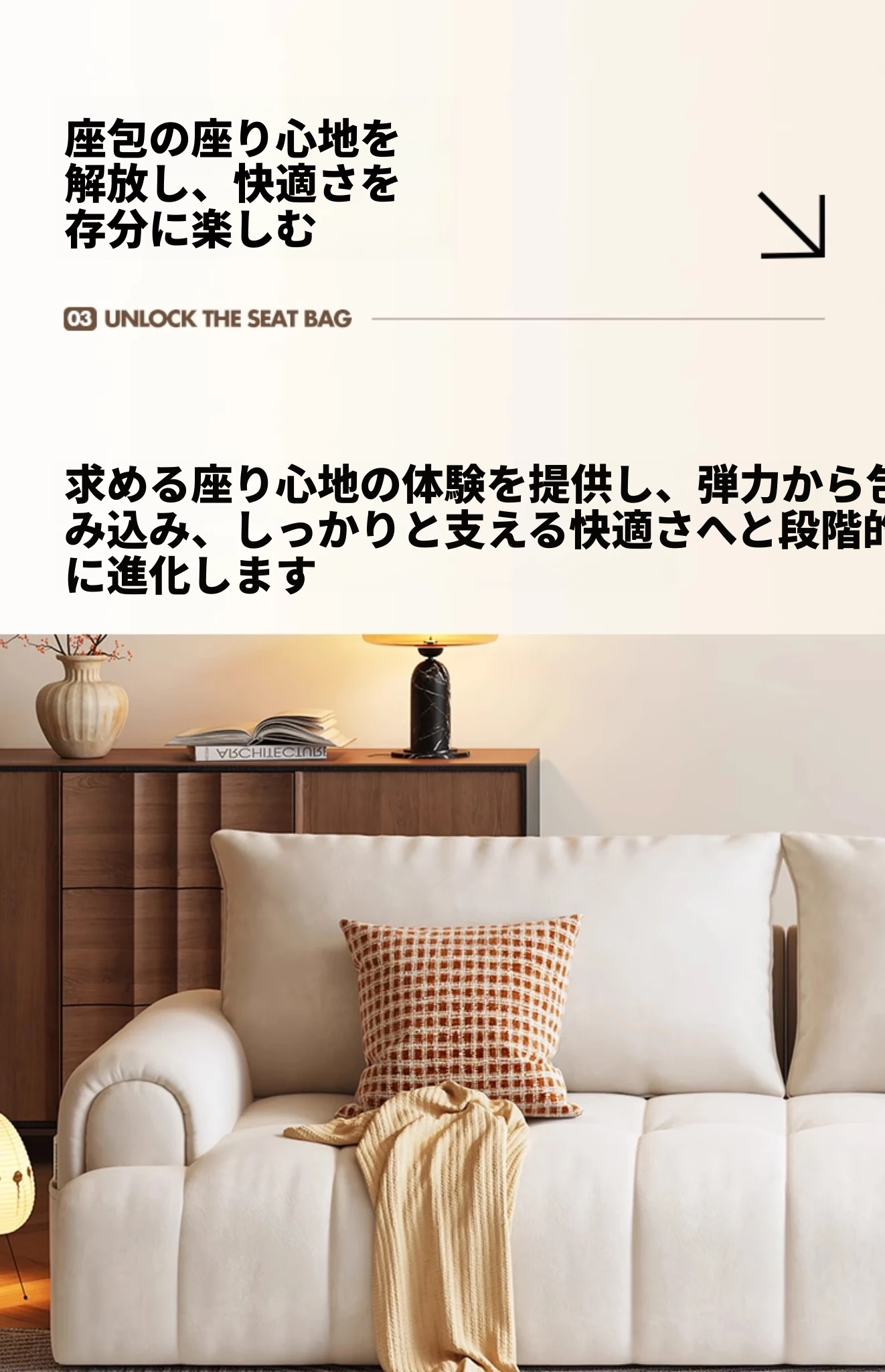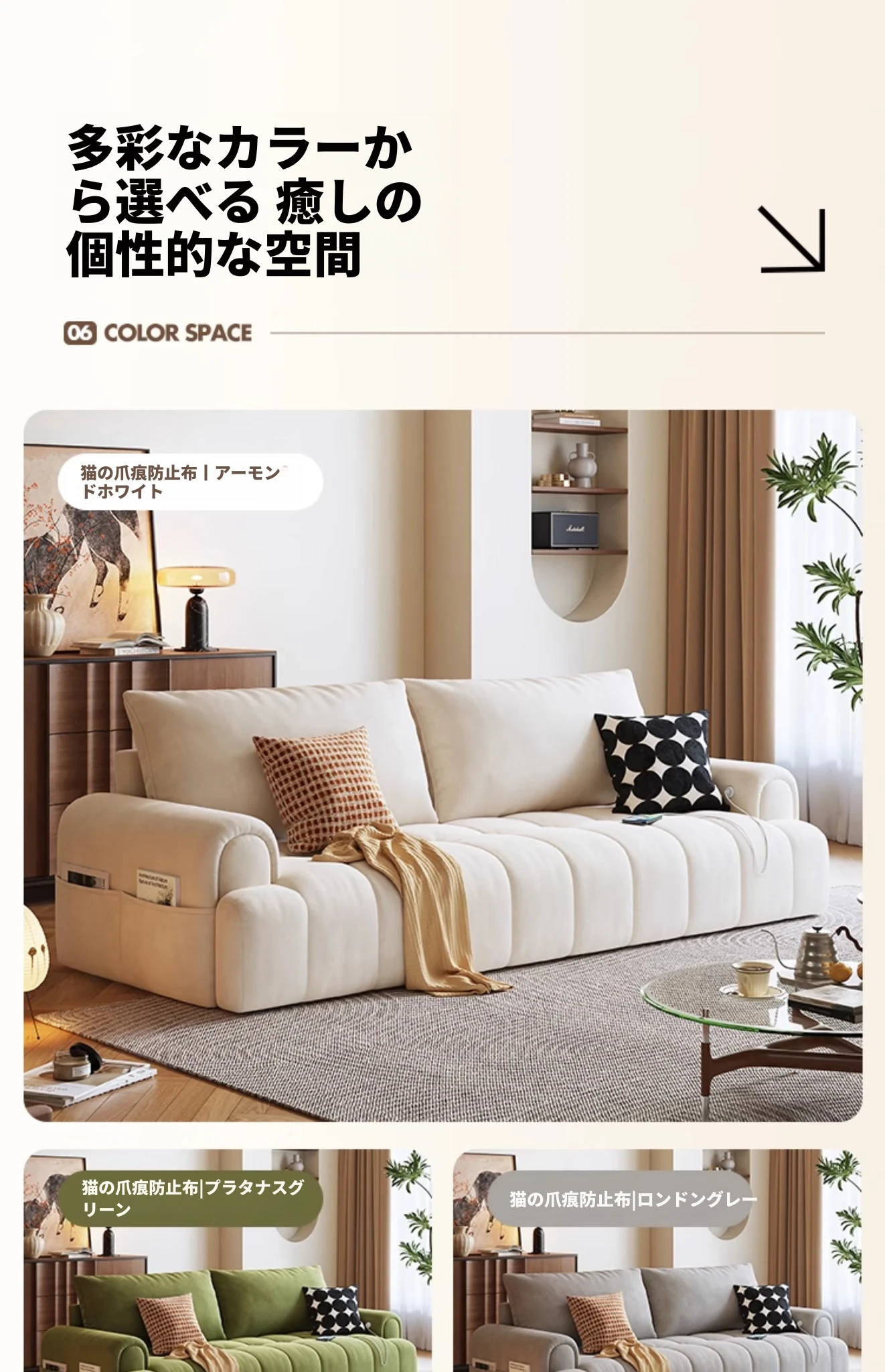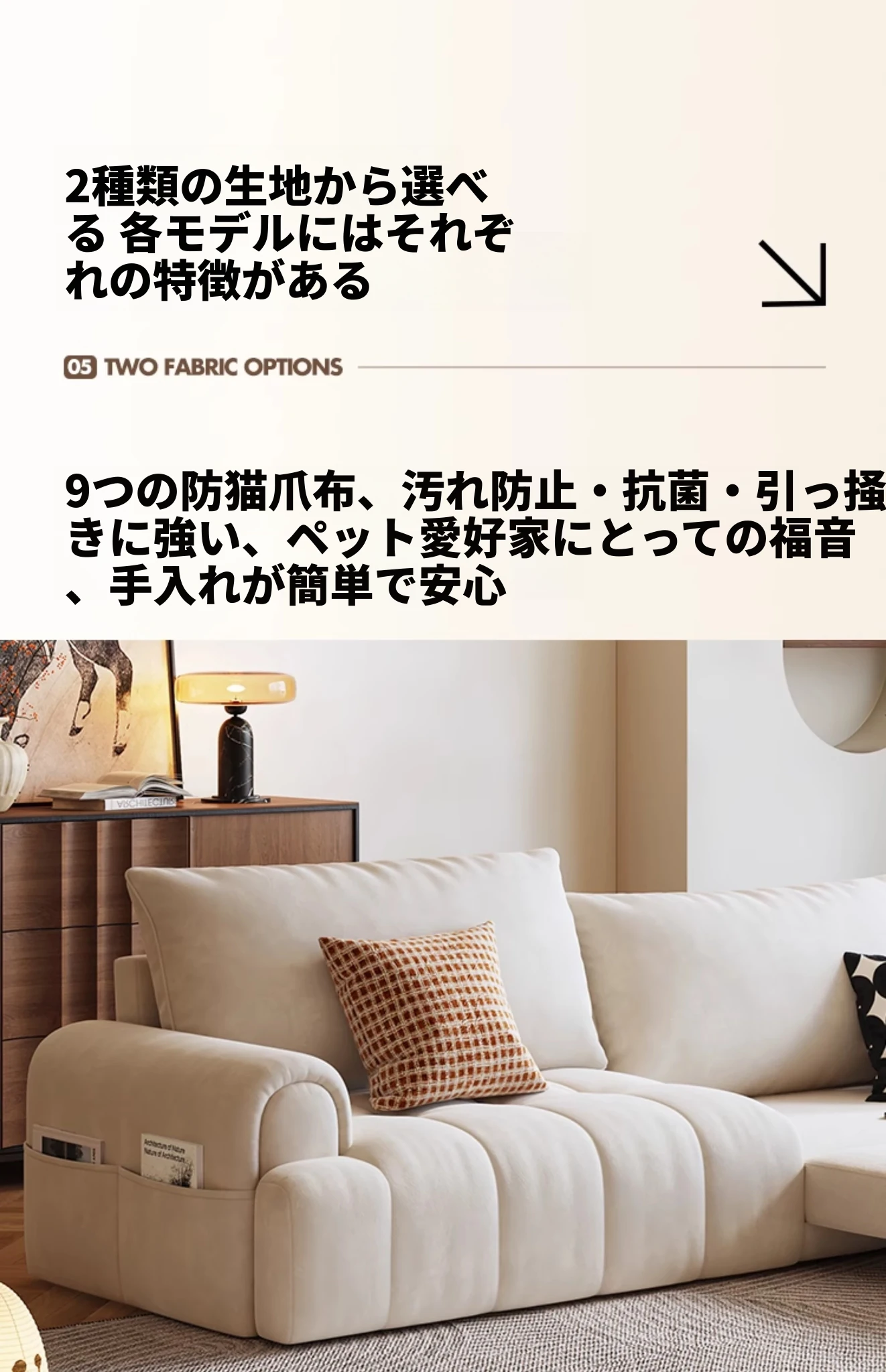【香港送料無料】イタリアンラグジュアリー風 カラーブロックソファ 大きな象耳デザイン クラシッククリーム色 テクノロジーファブリック使用 モダンで洗練されたスタイル