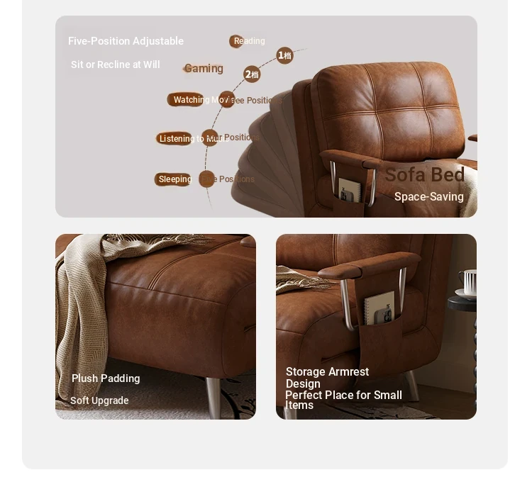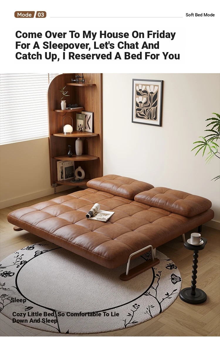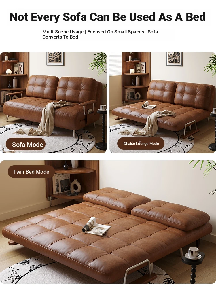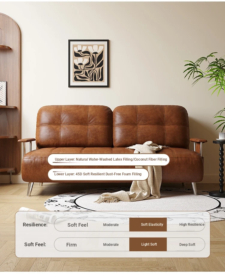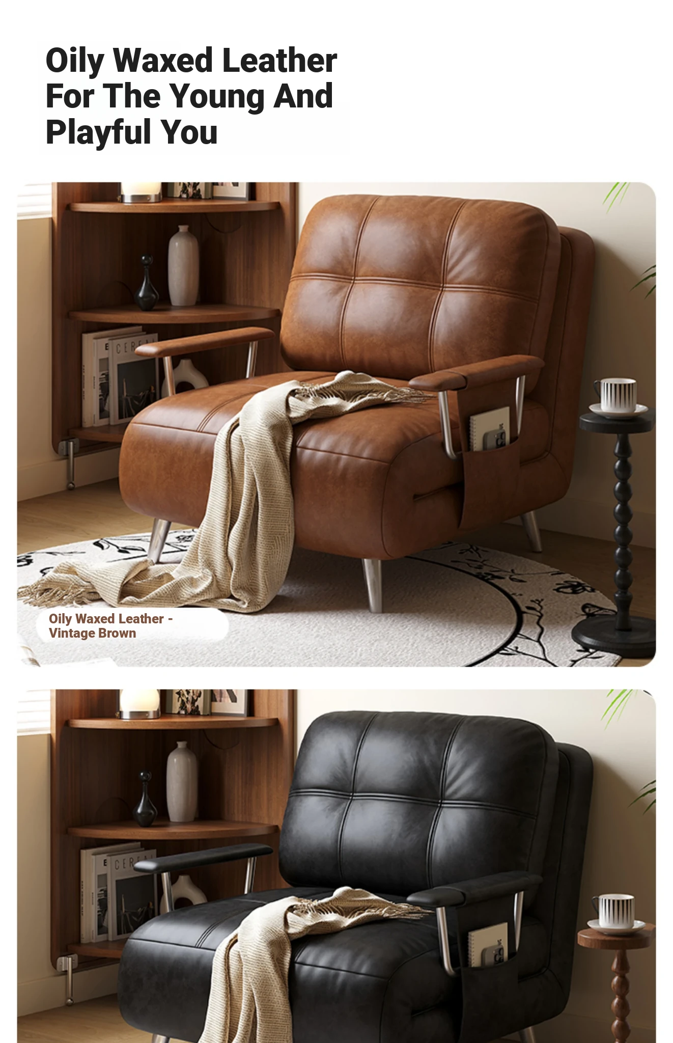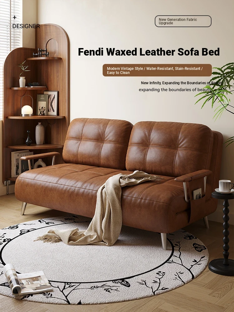 [Retro oil wax skin, natural latex] 38.58in sofa bed((In Stock Flash))