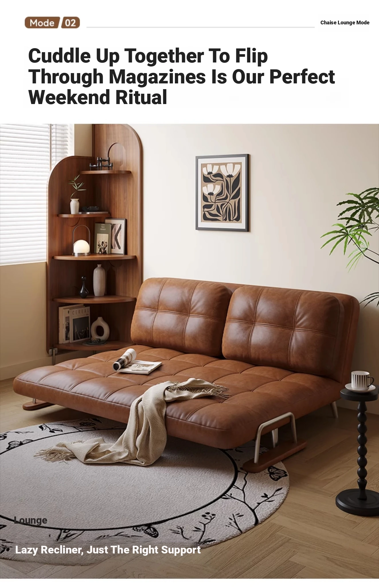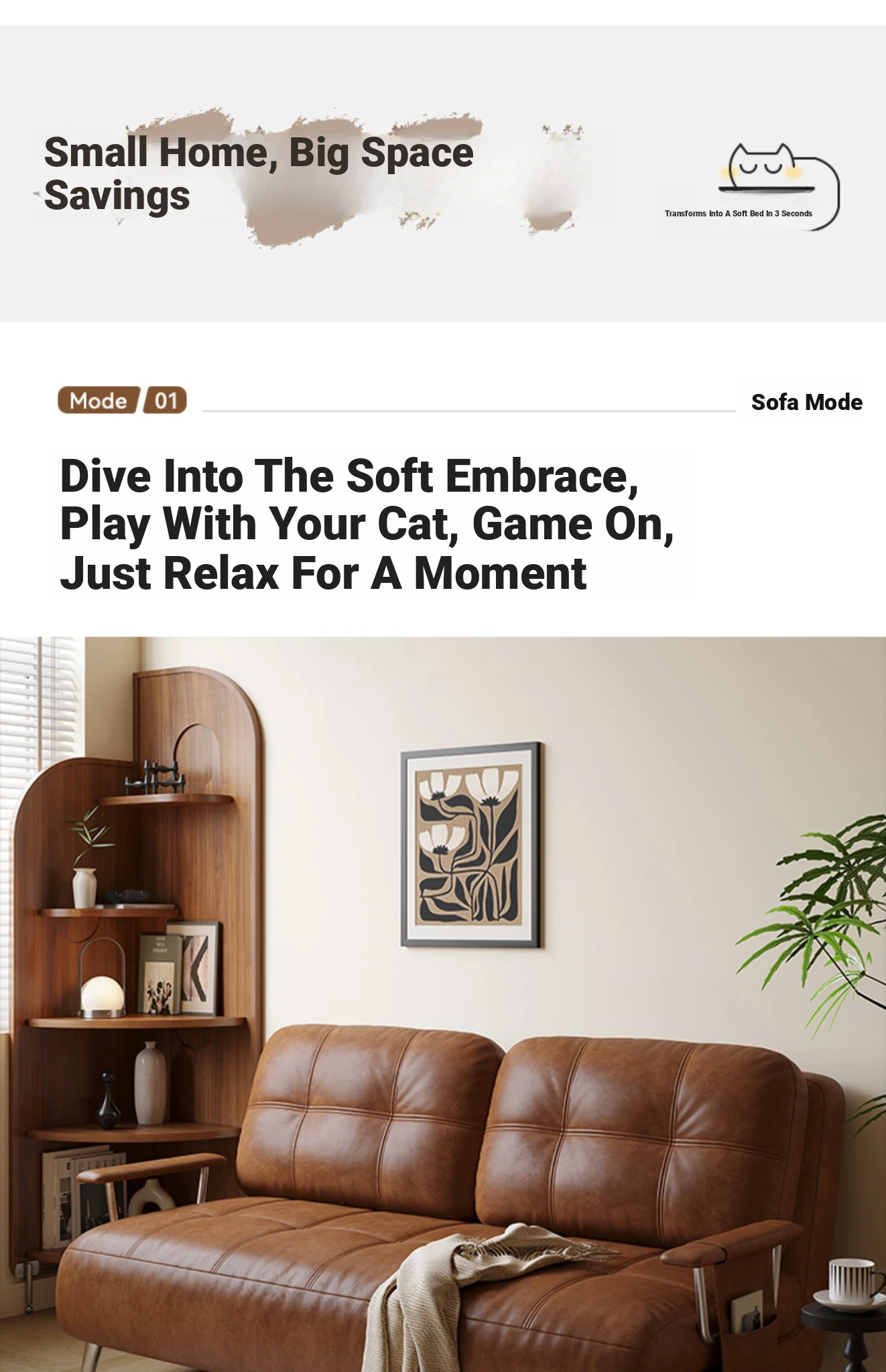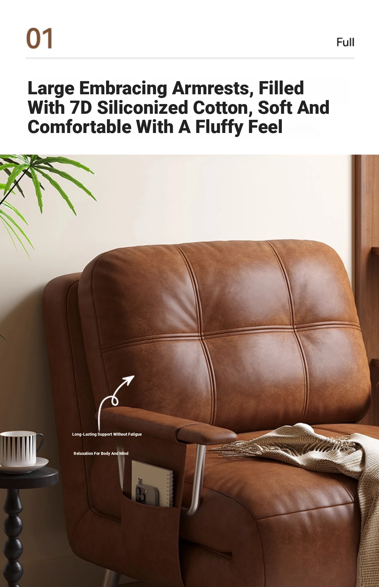 [Retro oil wax skin, powder-free sponge] 50.39in sofa bed((In Stock Flash))