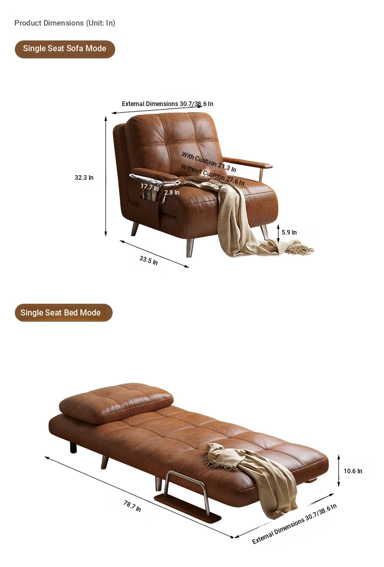 [Retro oil wax skin, natural latex] 30.71in sofa bed((In Stock Flash))