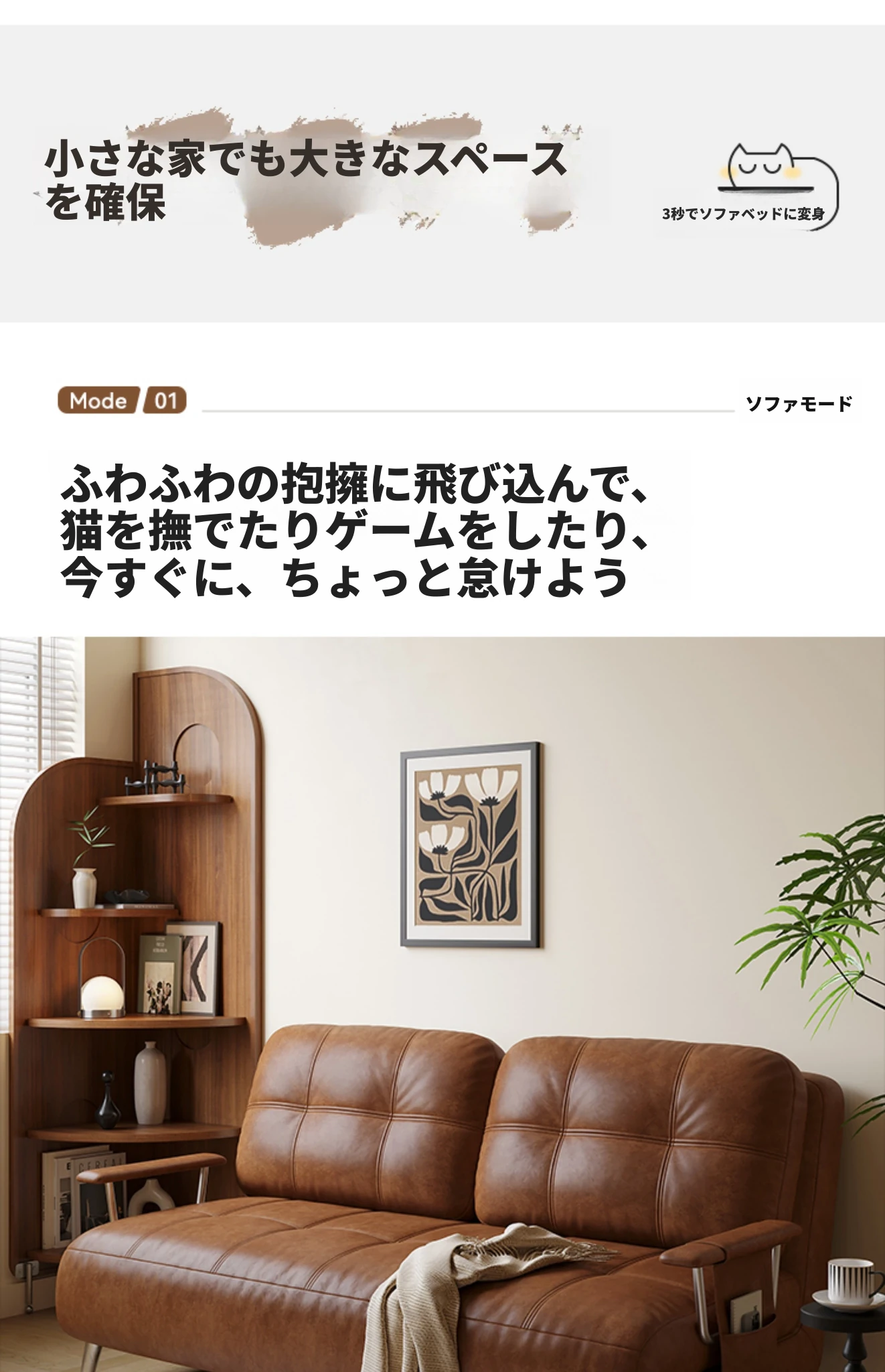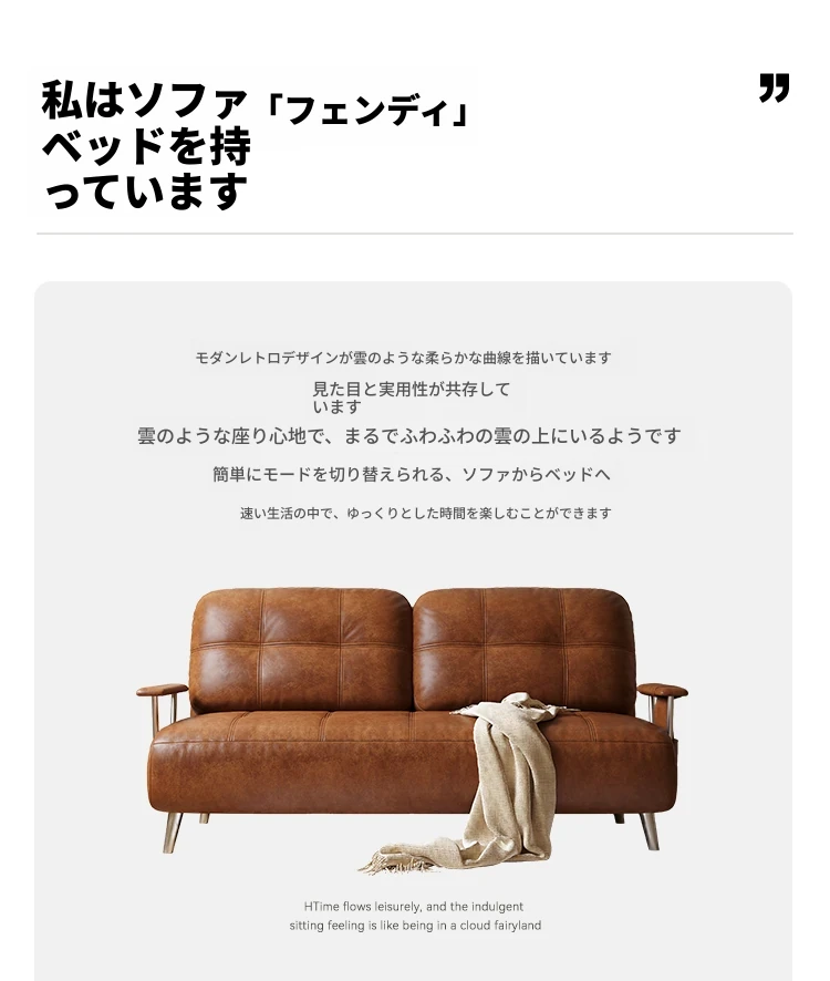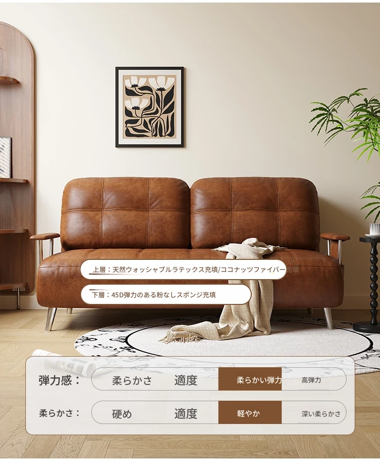 【ヴィンテージオイルワックスレザー丨環境保護ココナッツ繊維】0.78mソファベッド (在庫あり即発送)