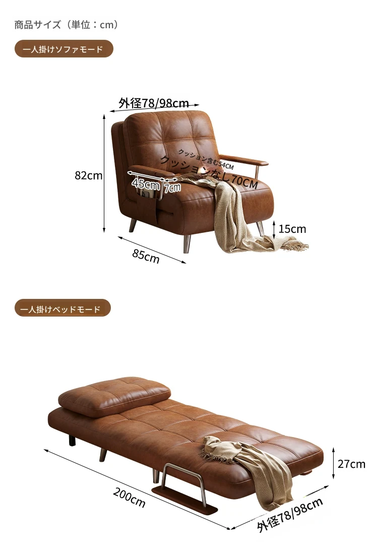 【ヴィンテージオイルワックスレザー丨無粉スポンジ】0.78mソファベッド (在庫あり即発送)