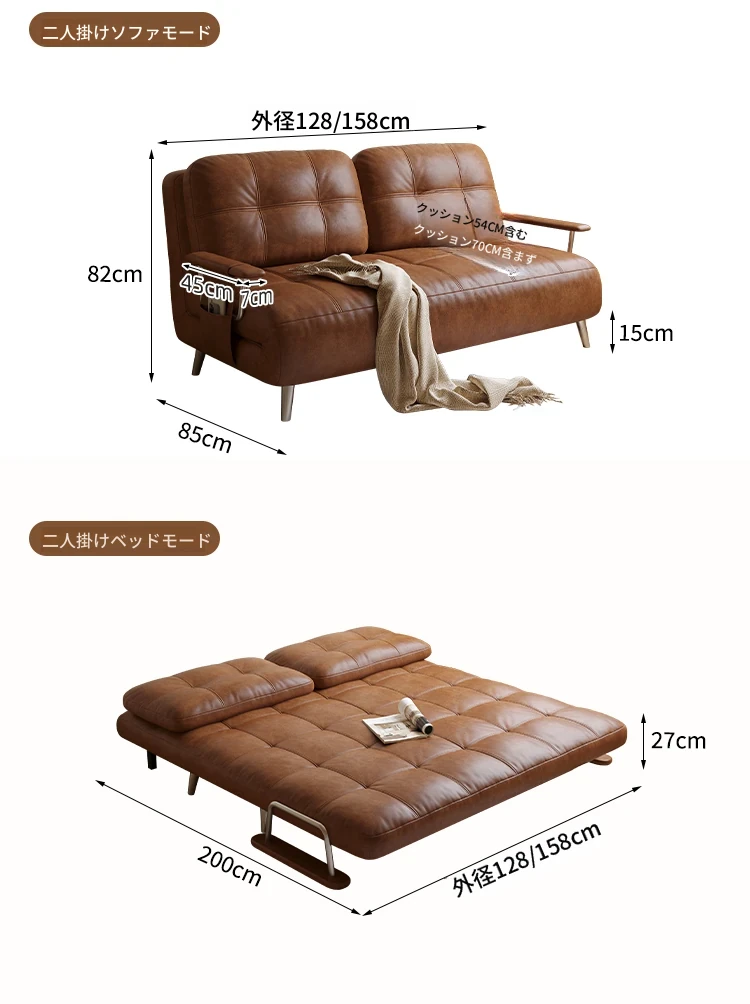 【ヴィンテージオイルワックスレザー丨無粉スポンジ】1.58mソファベッド (在庫あり即発送)