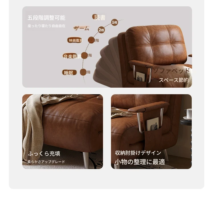 【ヴィンテージオイルワックスレザー丨環境保護ココナッツ繊維】0.98mソファベッド (在庫あり即発送)