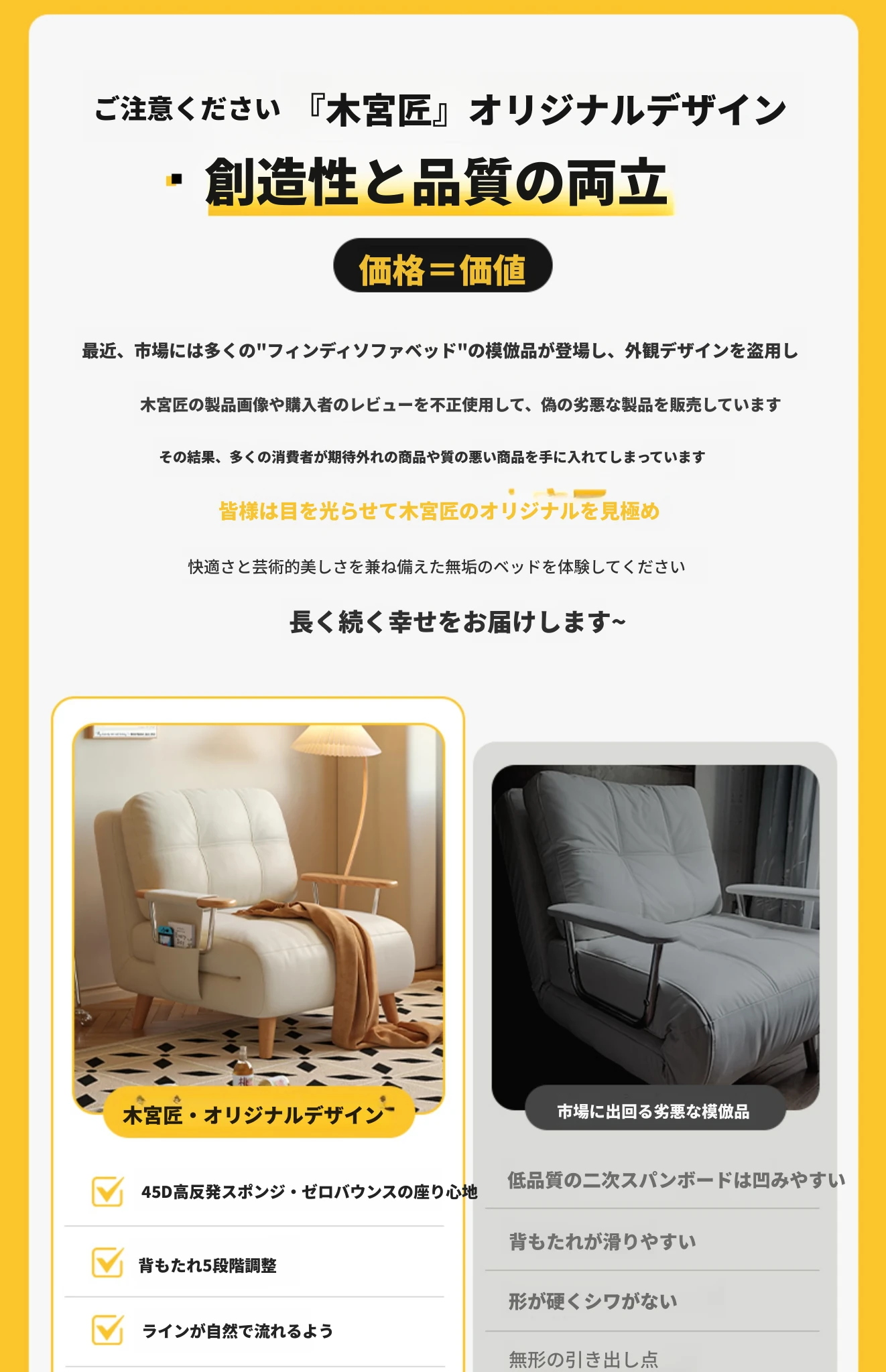 木宮匠フィンディ伸縮式折りたたみソファベッド - コンパクトでスペースを取らない!2025年新モデル、狭い空間にも最適な2WAYソファベッド。快適な睡眠とおしゃれなリビング空間を実現!