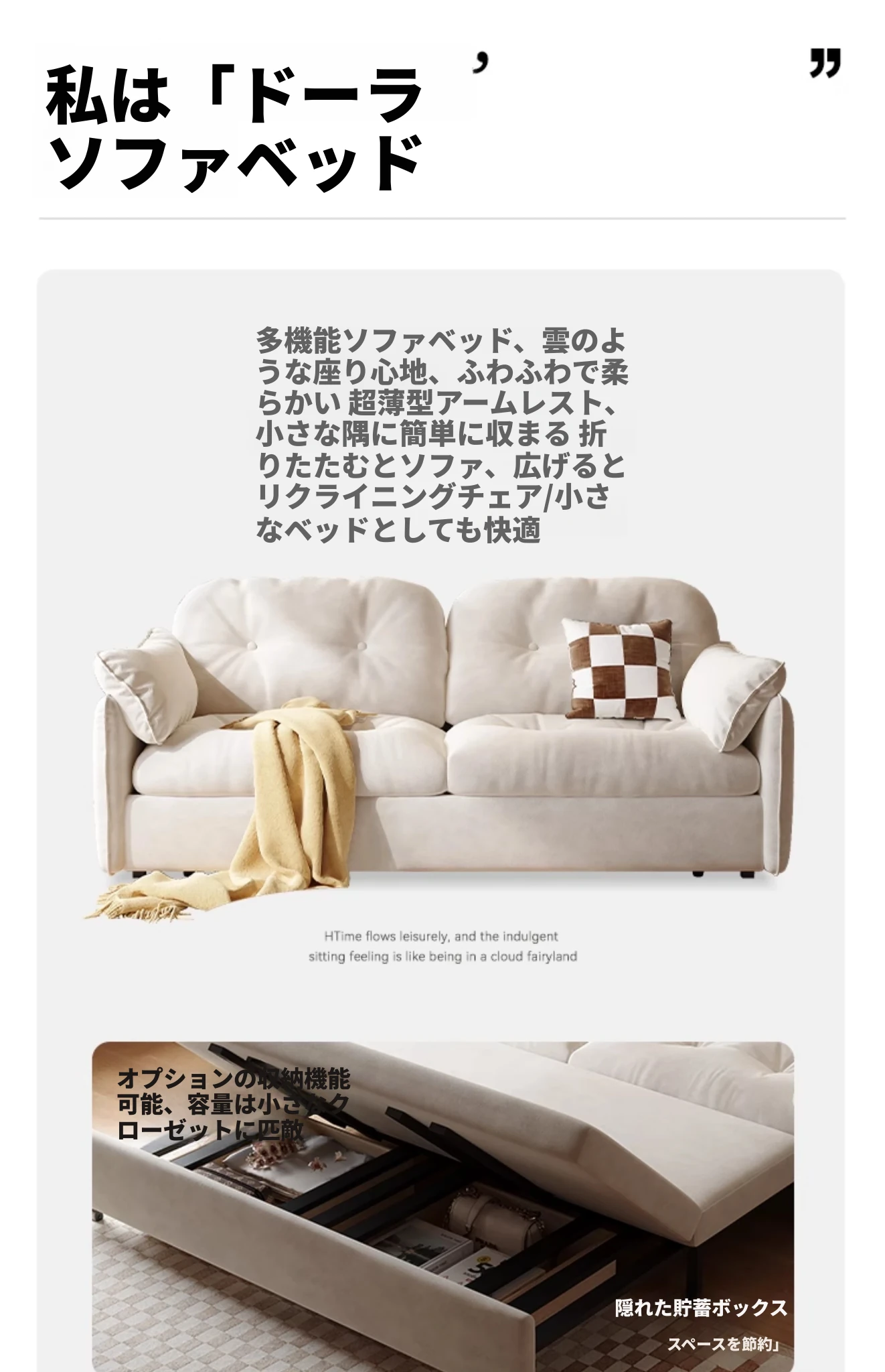 2.24mソファベッド【アップグレード収納タイプ丨無粉ウレタン】
