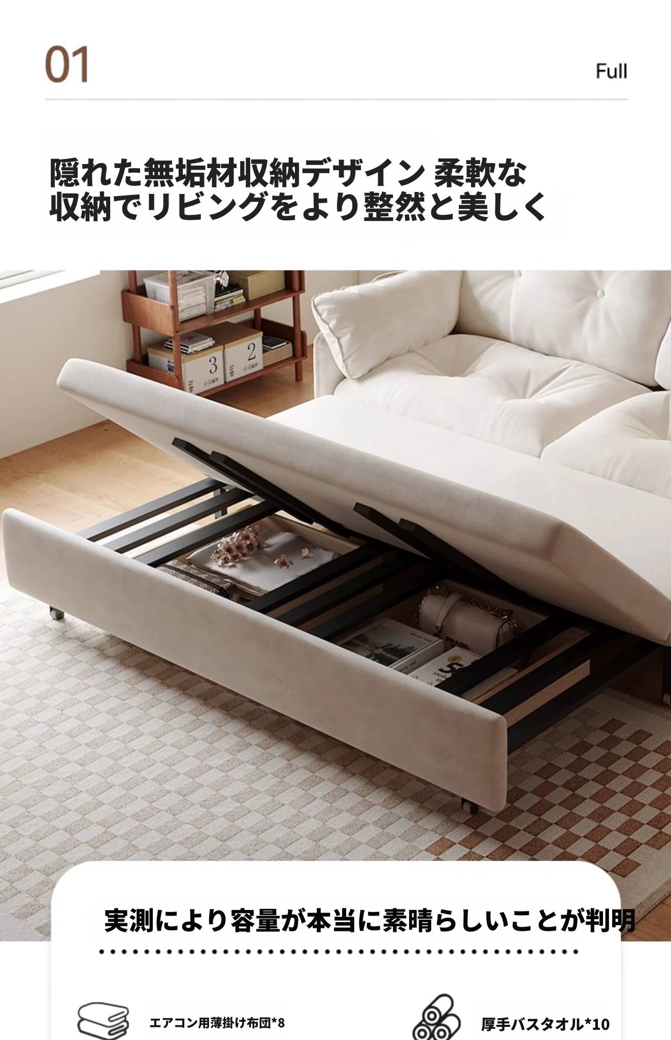 2.24mソファベッド【アップグレード収納タイプ丨洗えるラテックス】