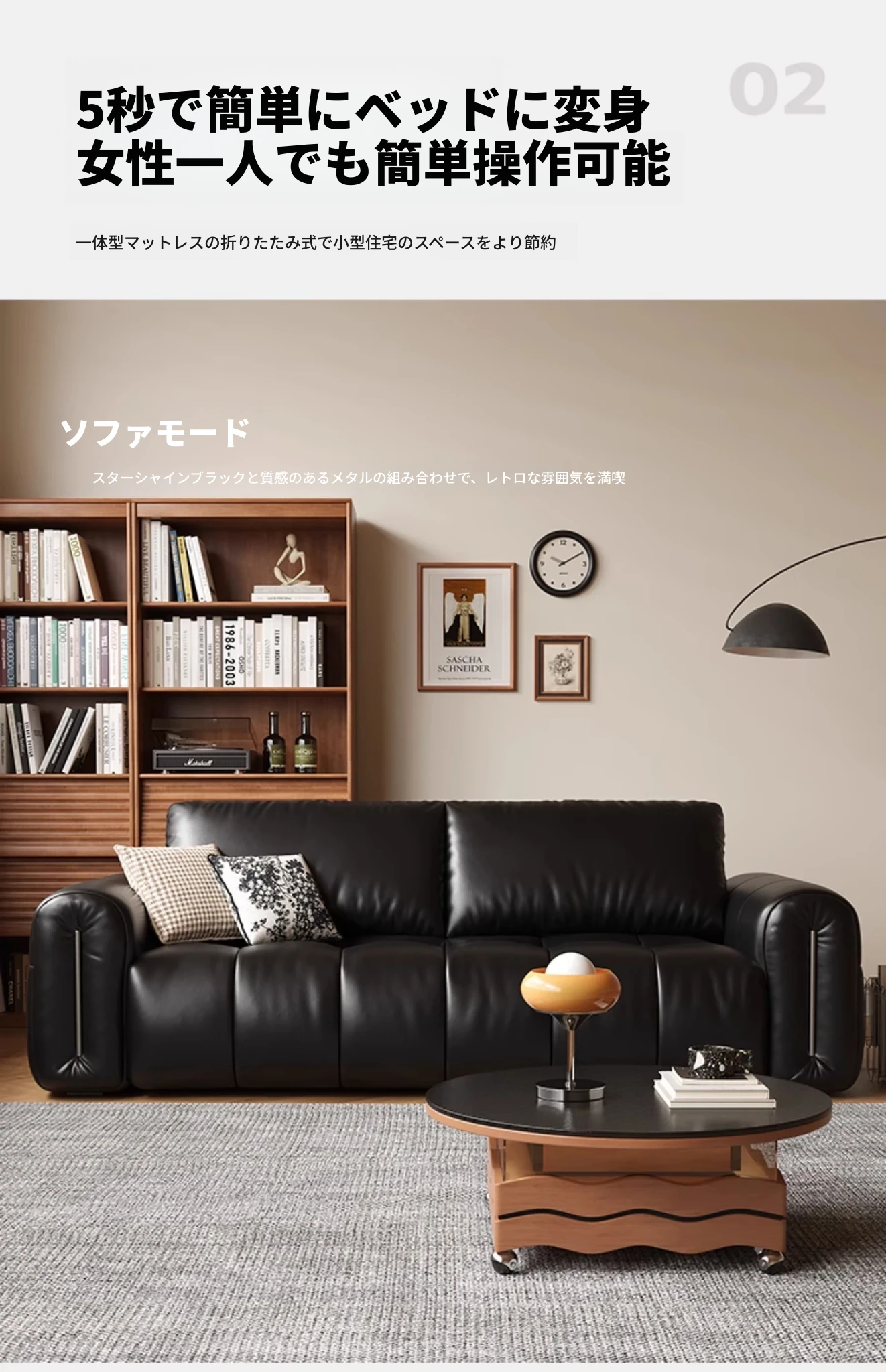 ふわふわ雲のソファベッド|折りたたみ式リビング用|原木デザインのコンパクト2人用|和風スタイルの小型木製ソファベッド|スペースを有効活用!快適な眠りとくつろぎを両立!