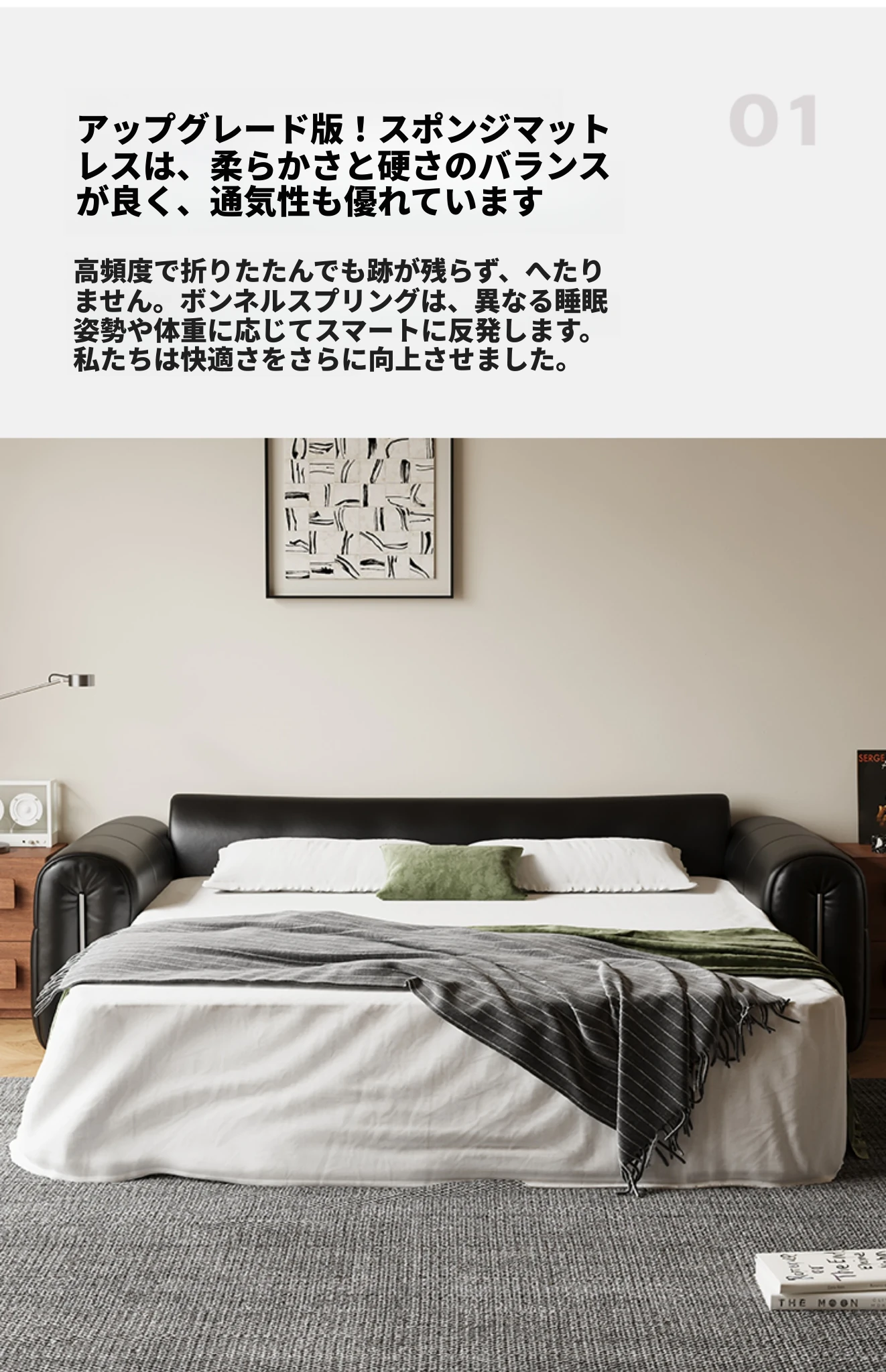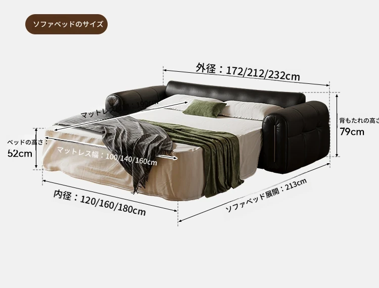 木宮工房のリビング用ソファベッド - マットレス付き!多機能折りたたみ式、小型スペースに最適な2025年新作ソファベッド!快適な眠りとスタイリッシュなデザインをお楽しみください。