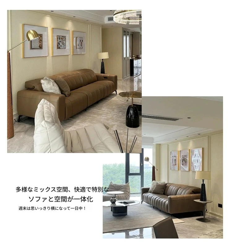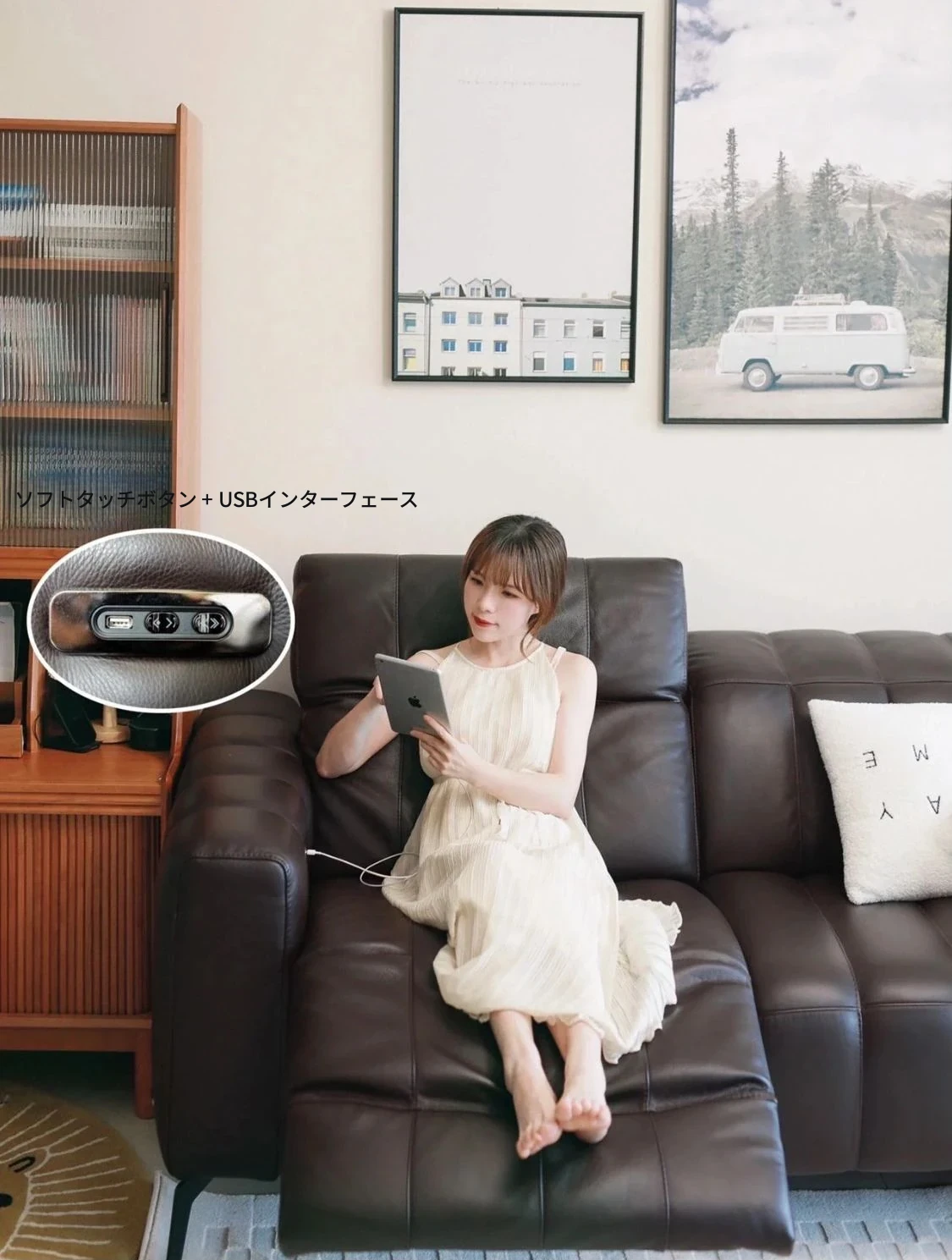ナトゥズC142小波浪ソファー - リビングに最適な本革製、ピアノキー電動調整機能付き!多機能で快適な意ディセンソファが、あなたの生活空間をスタイリッシュに変えます。