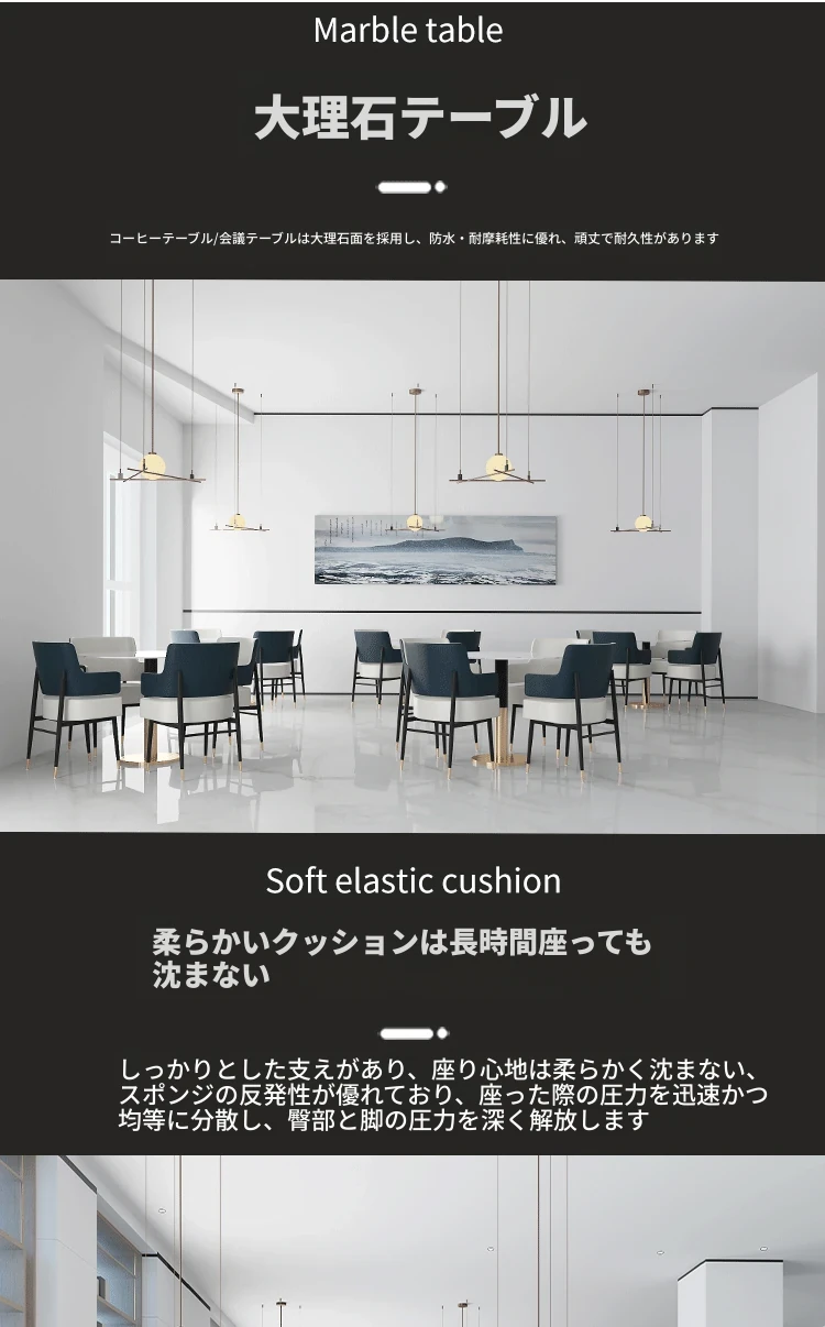 北欧スタイルのラグジュアリーソファチェア|モダンでシンプルな美容院や服飾店に最適|リラックスできる待機スペースと打ち合わせにぴったりなテーブルセット!