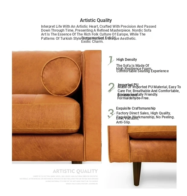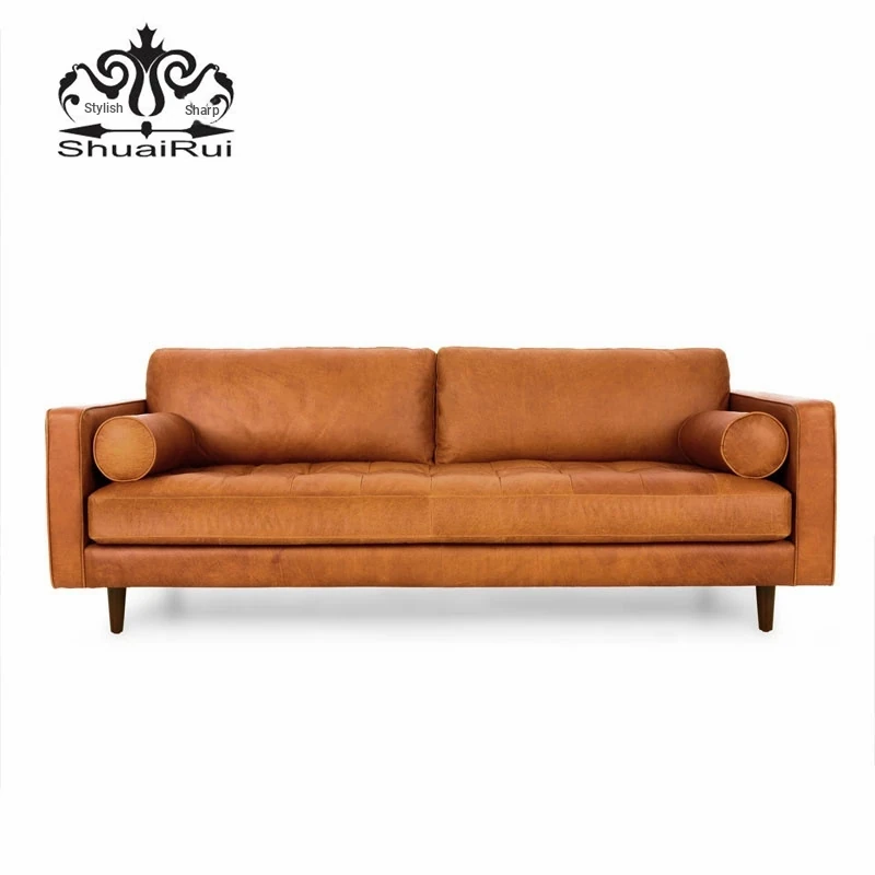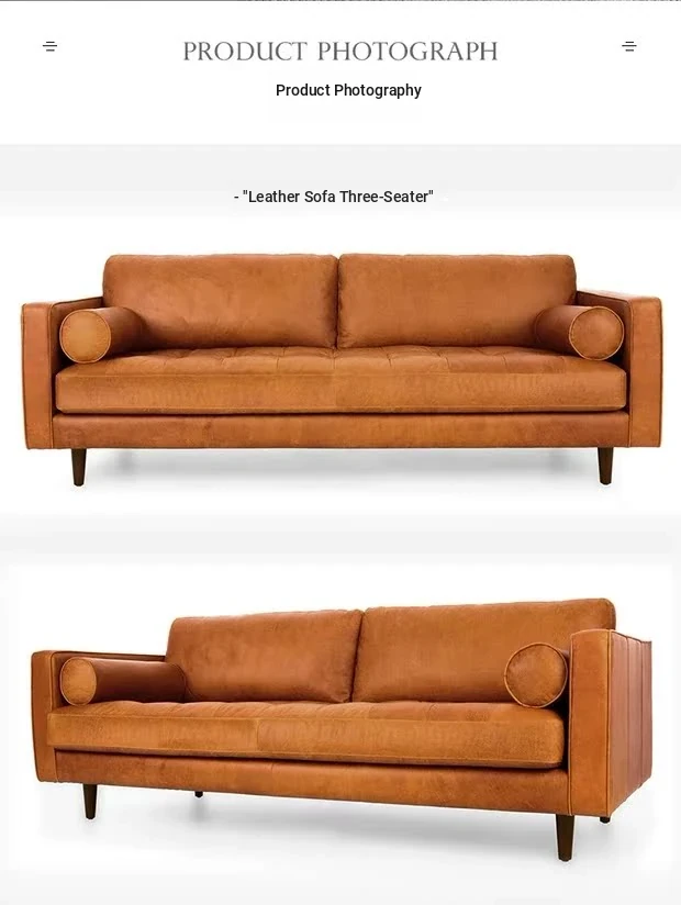 Nordic Minimalist Creative Retro Industrial Style Genuine Leather Three-Seat Sofa for Living Room - Designer Business Reception Combination Sofa