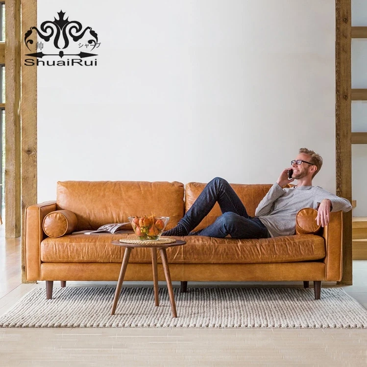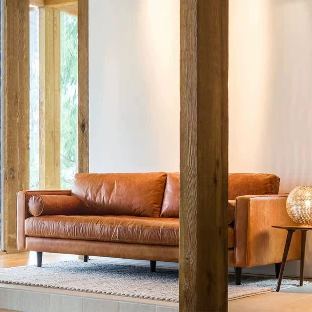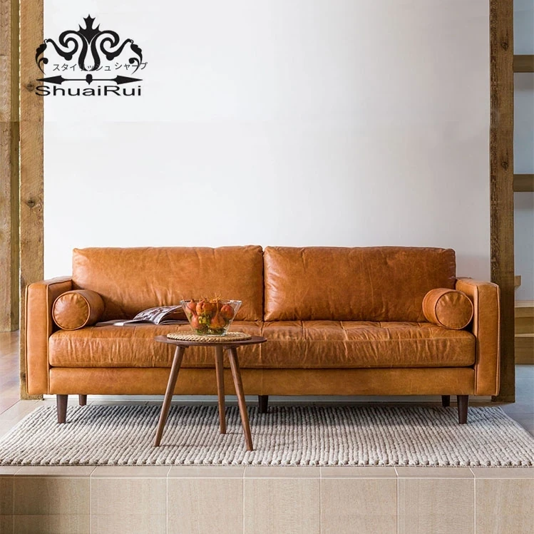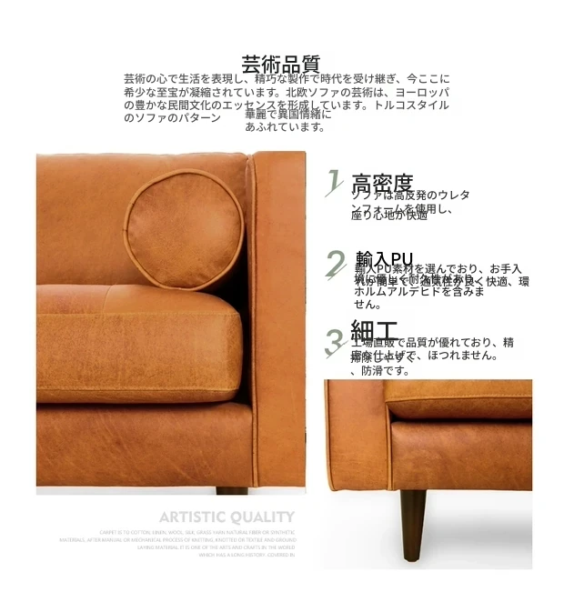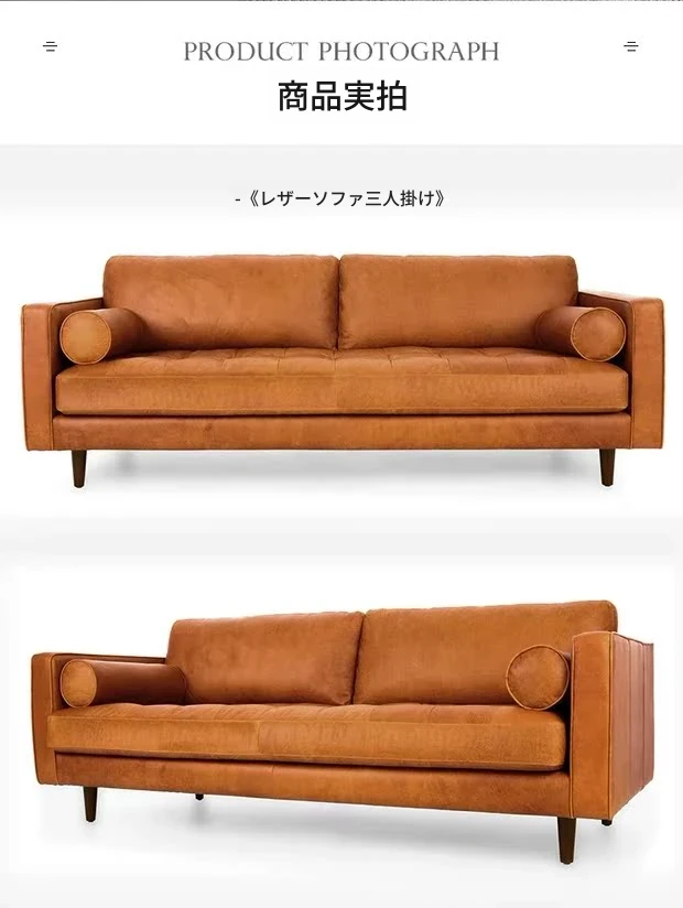 北欧風シンプルクリエイティブレトロ工業スタイル 本革3人掛けデザイナーソファ ビジネスオフィス接待にも最適なコンビネーションソファ