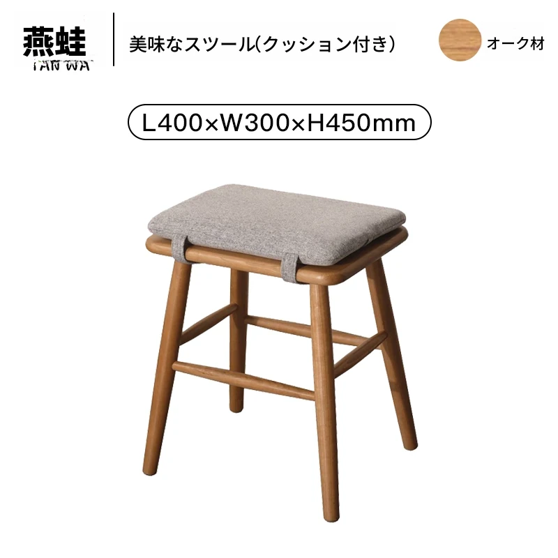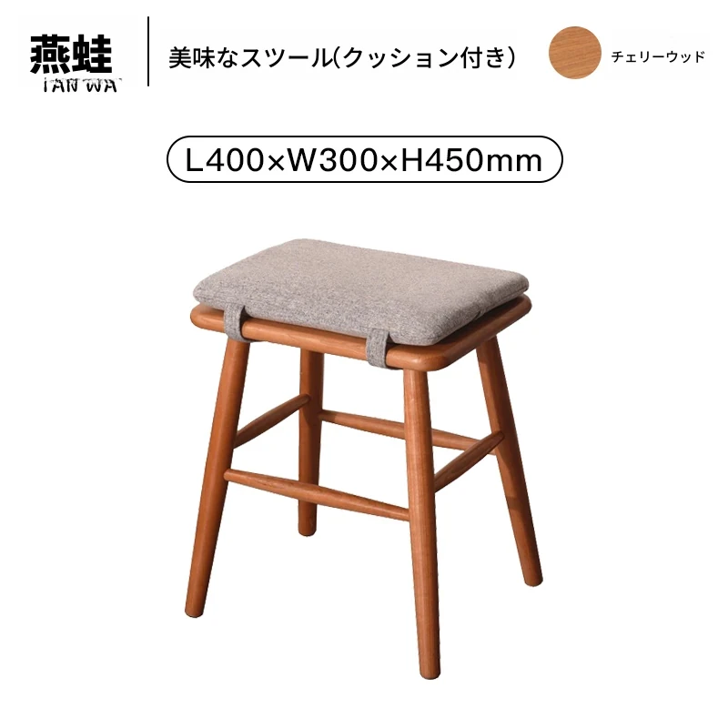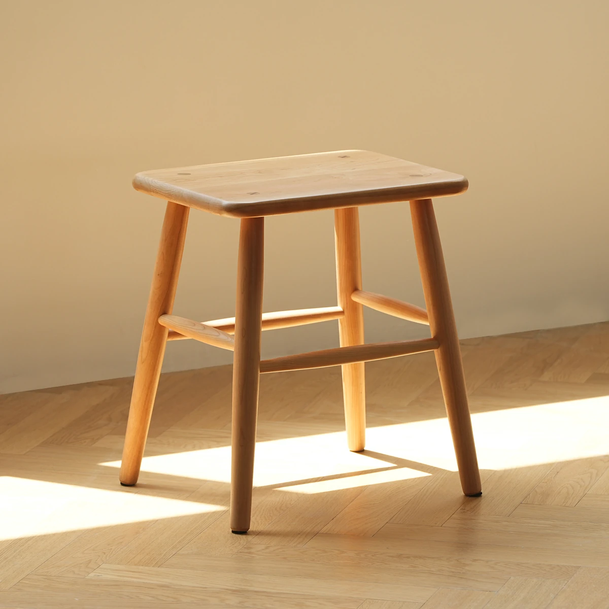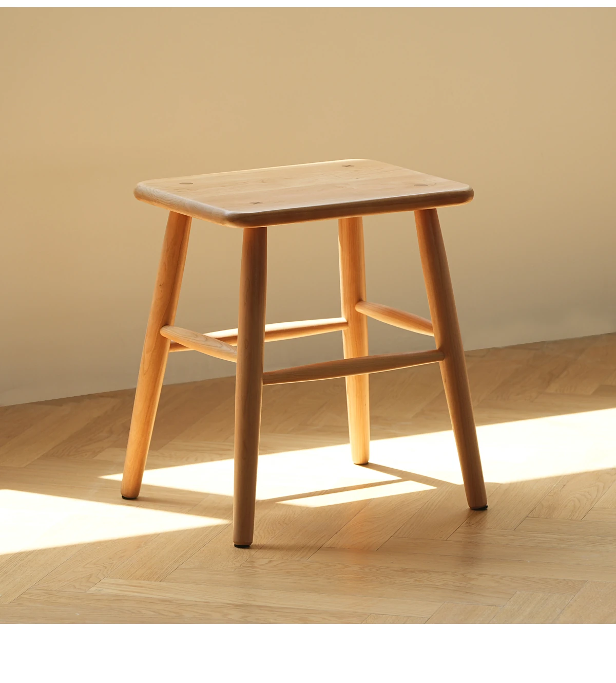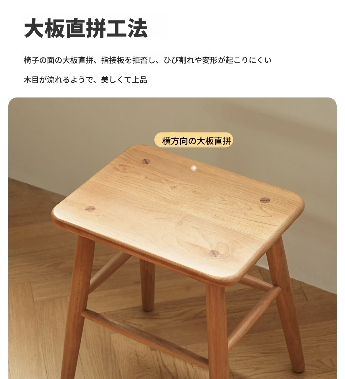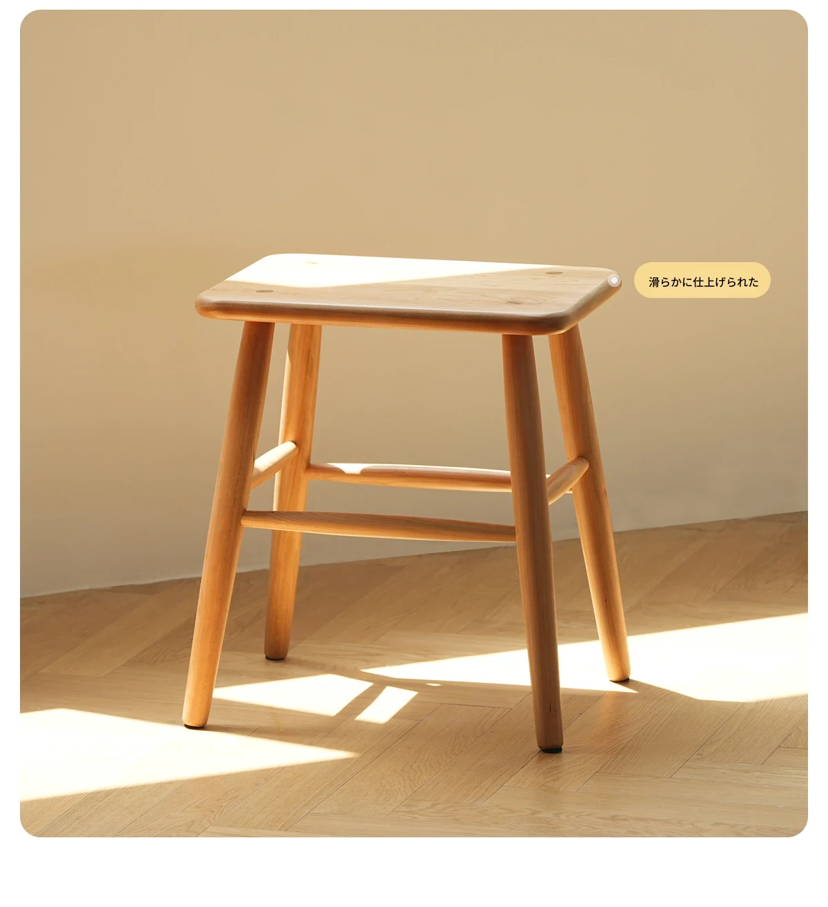 燕蛙家具の北欧スタイル、オークとチェリーの無垢材を使用したシンプルでエレガントなスクエアスツール。靴を脱ぐ時や化粧時にぴったりな、どんな空間にも馴染む多用途デザイン!