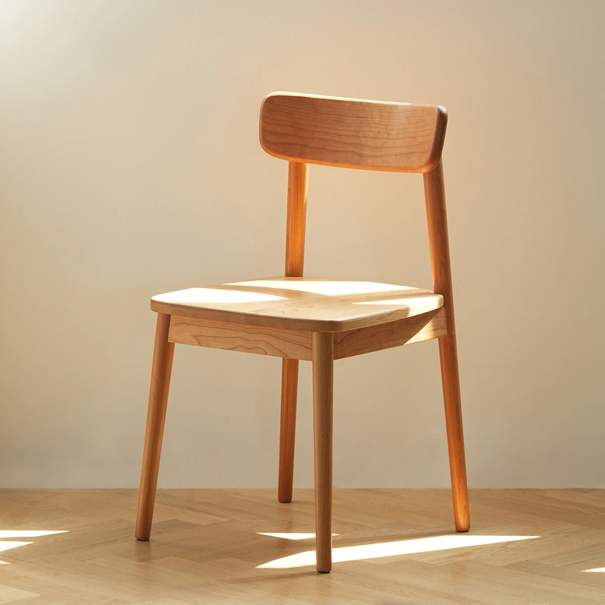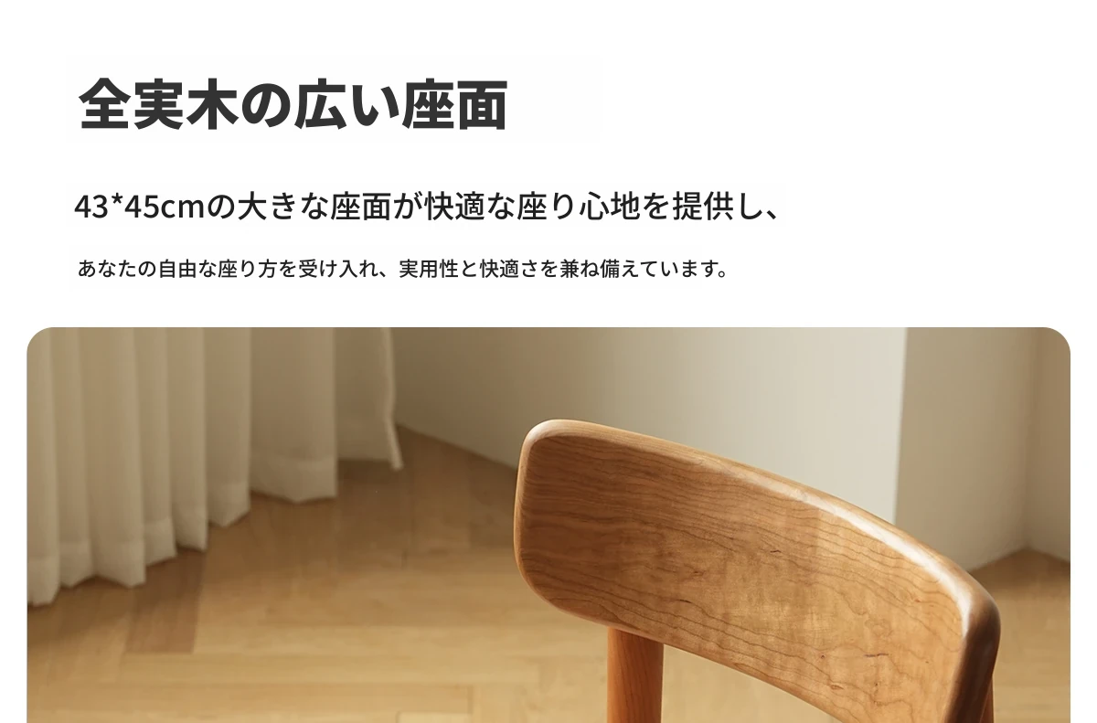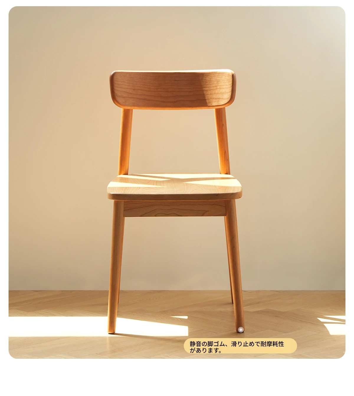 北欧スタイルの無垢材ダイニングチェア - サクラとホワイトオークの優雅なデザイン、シンプルで快適なリビング・ダイニングにぴったり!家庭用や書斎にも最適なくつろぎの一脚。