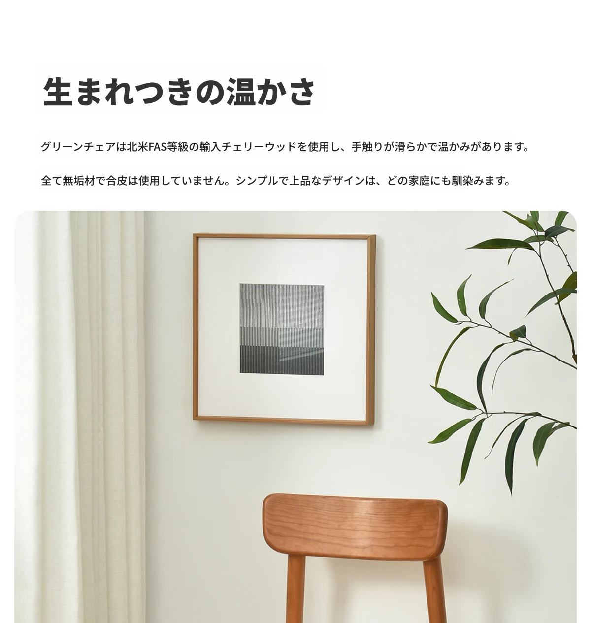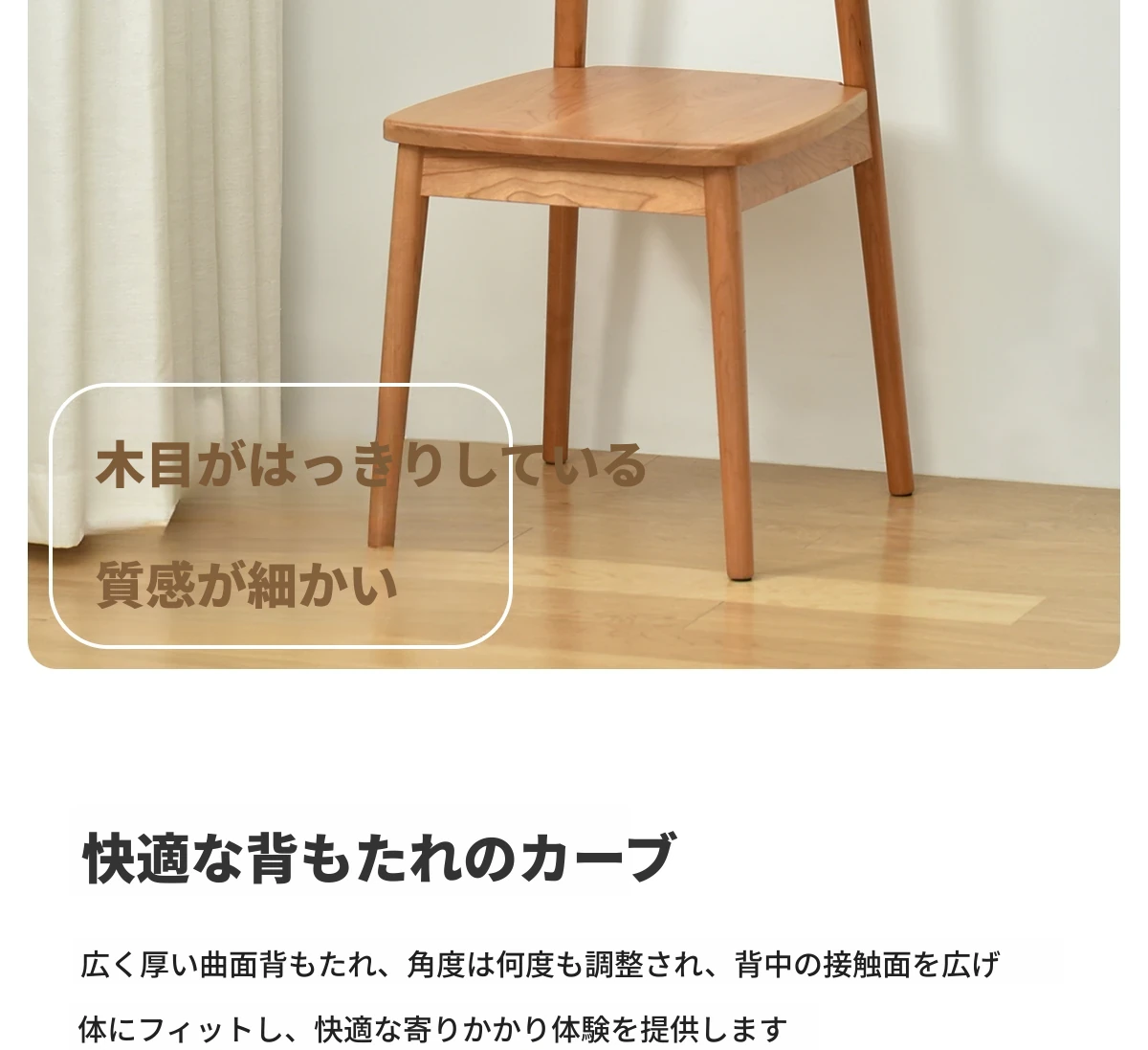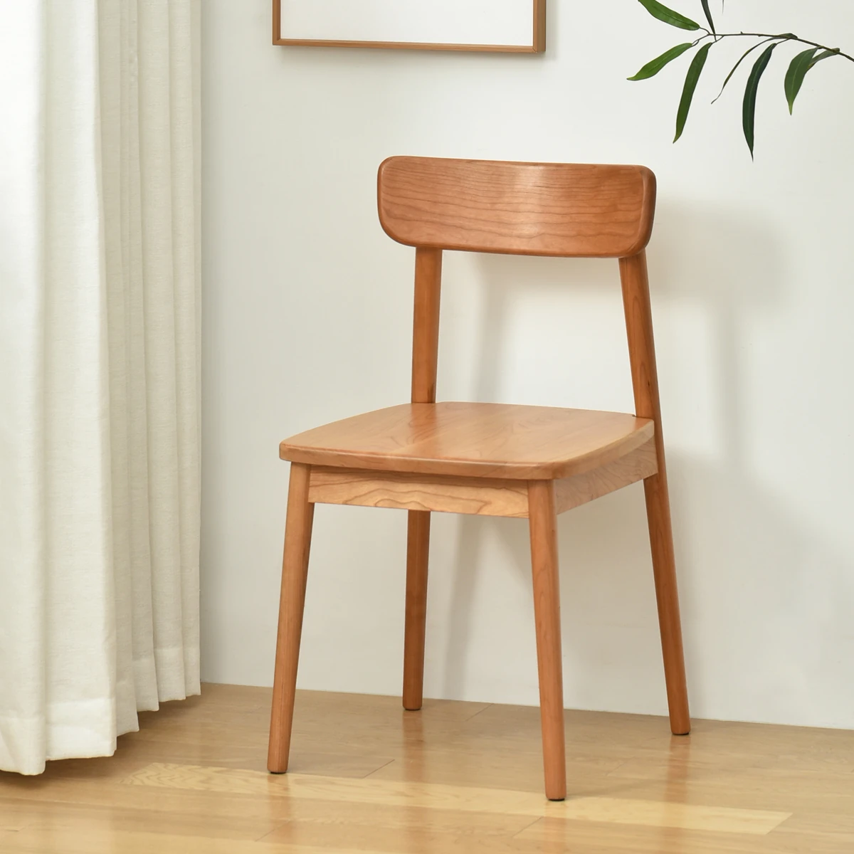 北欧スタイルの無垢材ダイニングチェア - サクラとホワイトオークの優雅なデザイン、シンプルで快適なリビング・ダイニングにぴったり!家庭用や書斎にも最適なくつろぎの一脚。