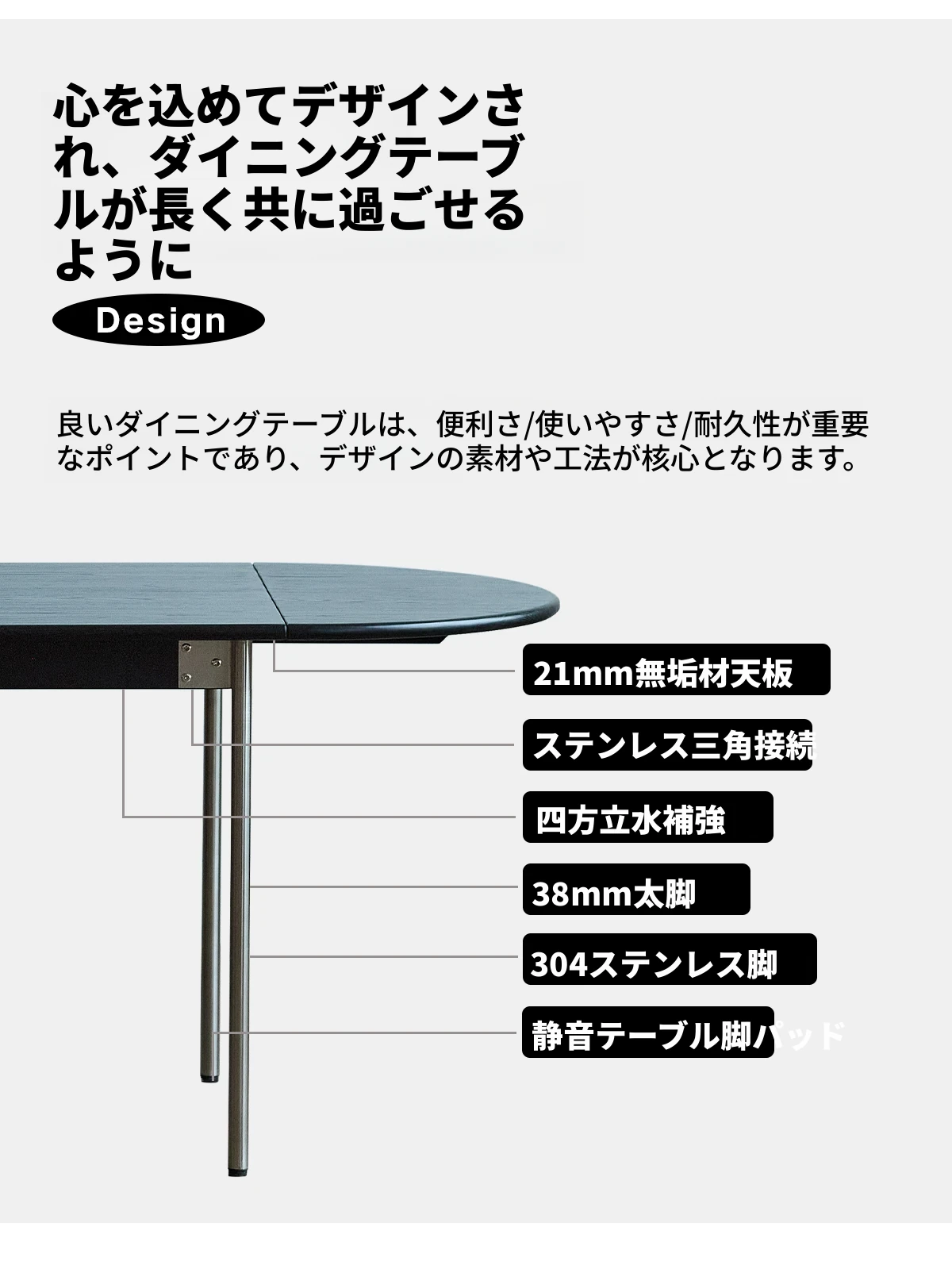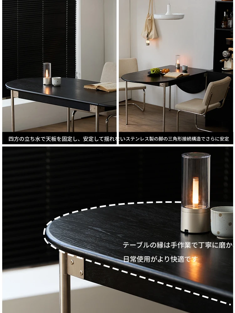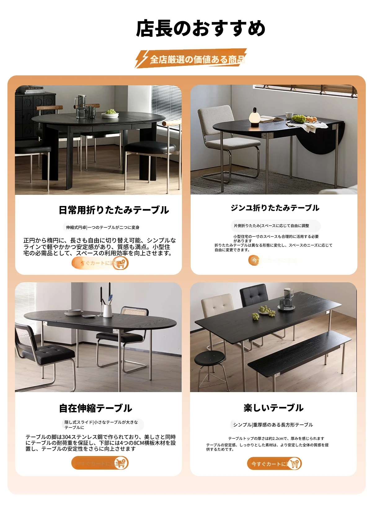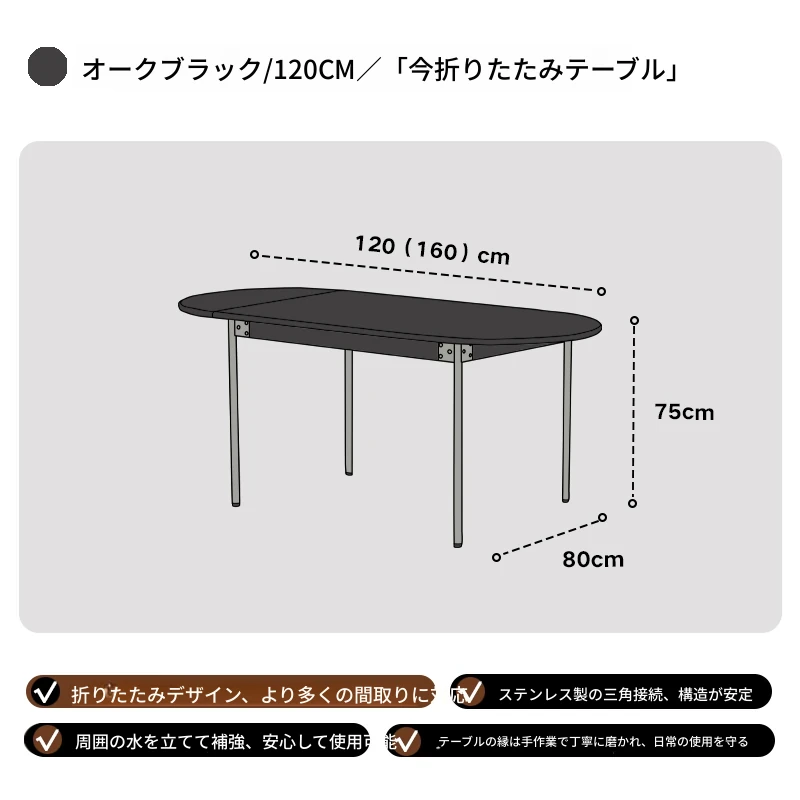 北欧風全木製エレガントな楕円形・半円形折りたたみテーブル - オーク材使用、小スペースに最適な伸縮式ダイニングテーブル&チェアセット!シンプルなデザインでおしゃれな食卓を演出。