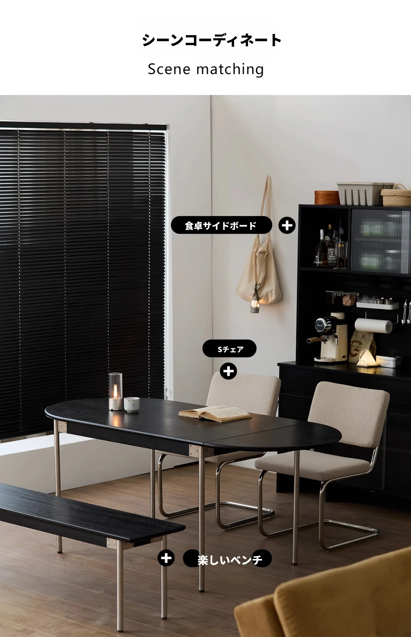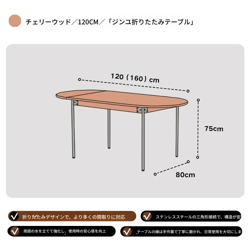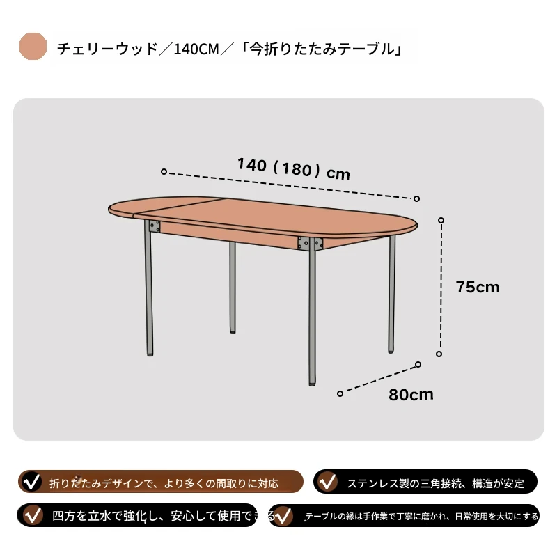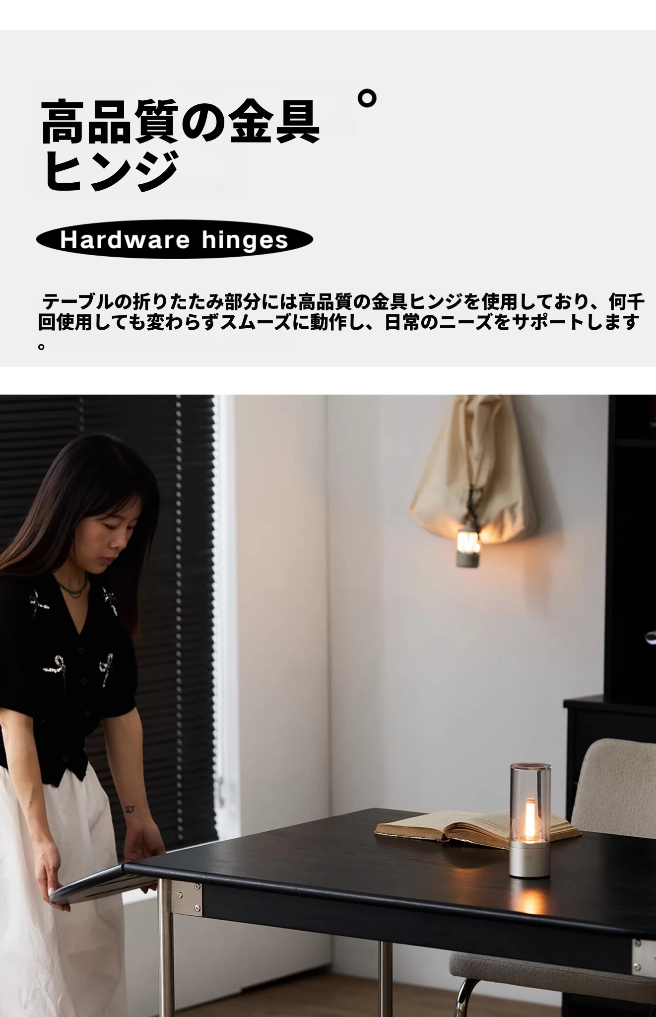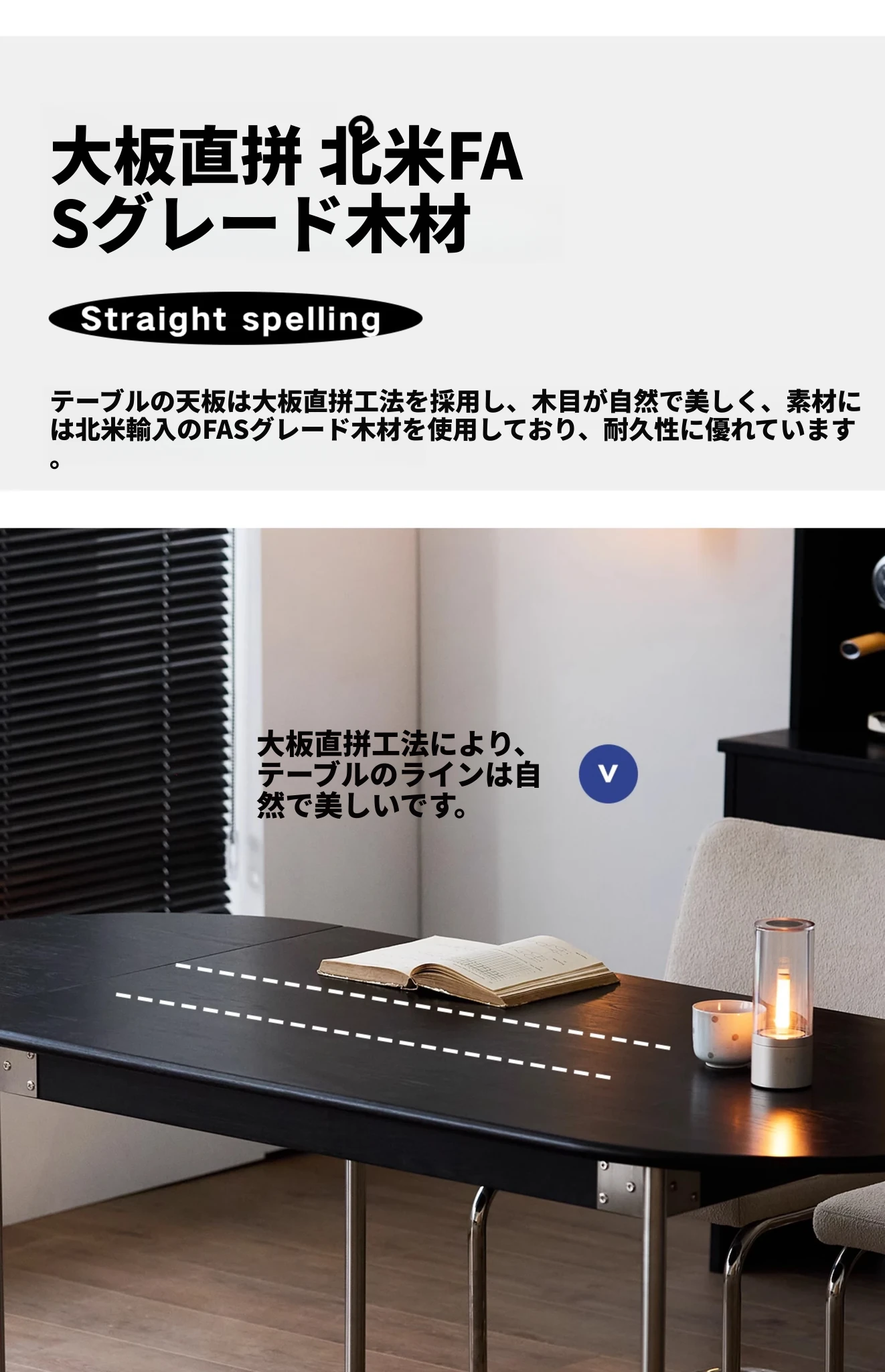 北欧風全木製エレガントな楕円形・半円形折りたたみテーブル - オーク材使用、小スペースに最適な伸縮式ダイニングテーブル&チェアセット!シンプルなデザインでおしゃれな食卓を演出。