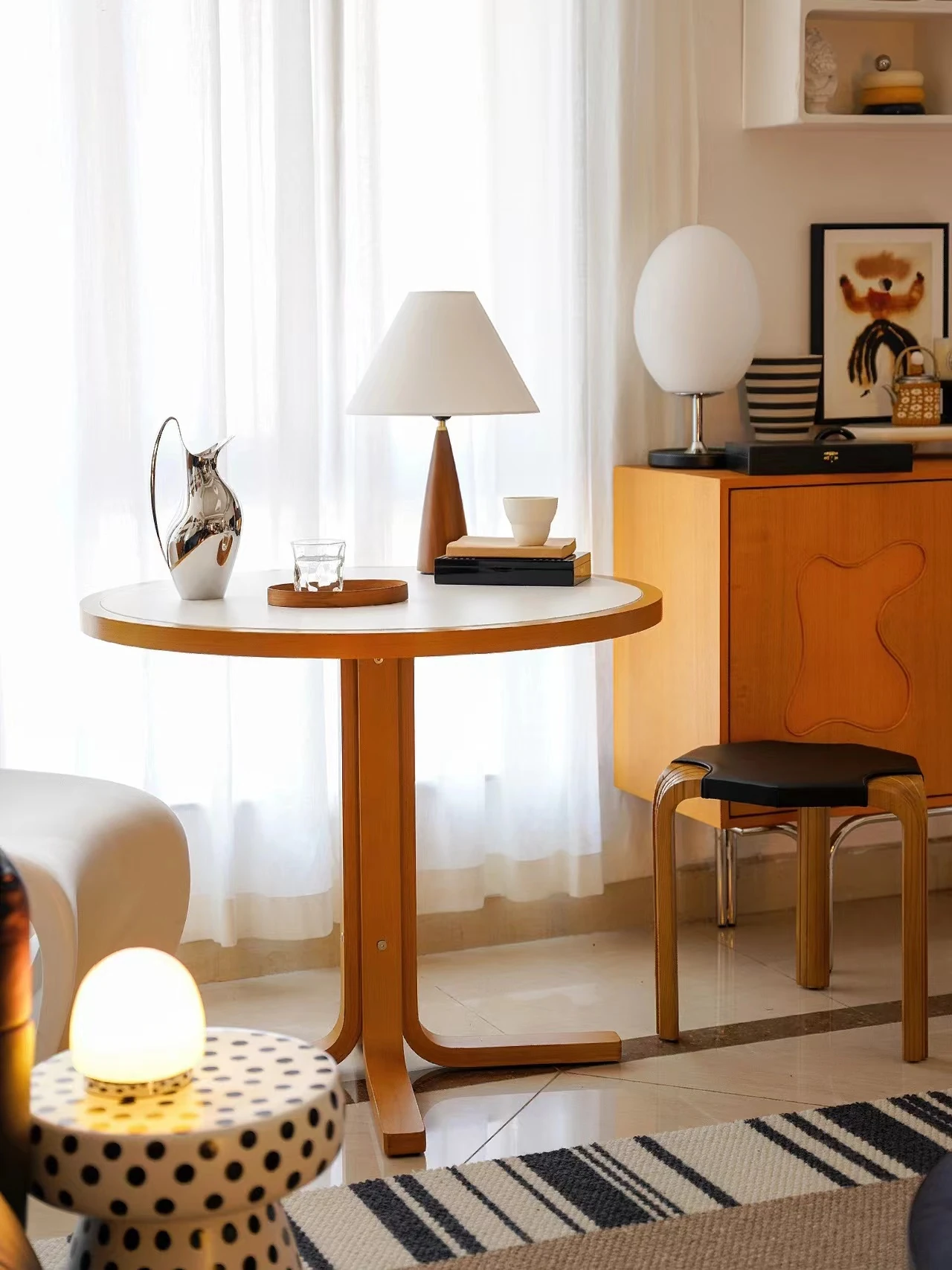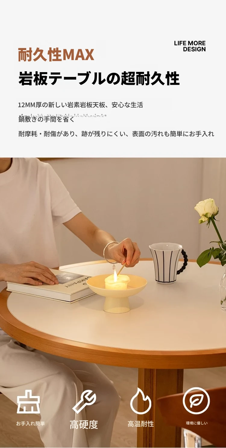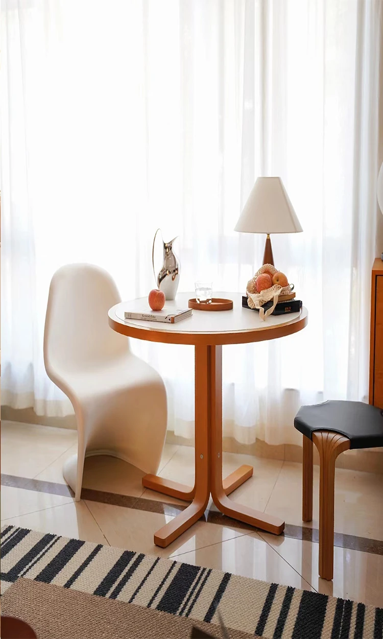 北欧風ヴィンテージ無垢材ロックテーブル!小型住宅にぴったりな丸型ダイニングテーブル。フレンチシックなデザインの椅子とのセットで、創造的な食卓を演出します。