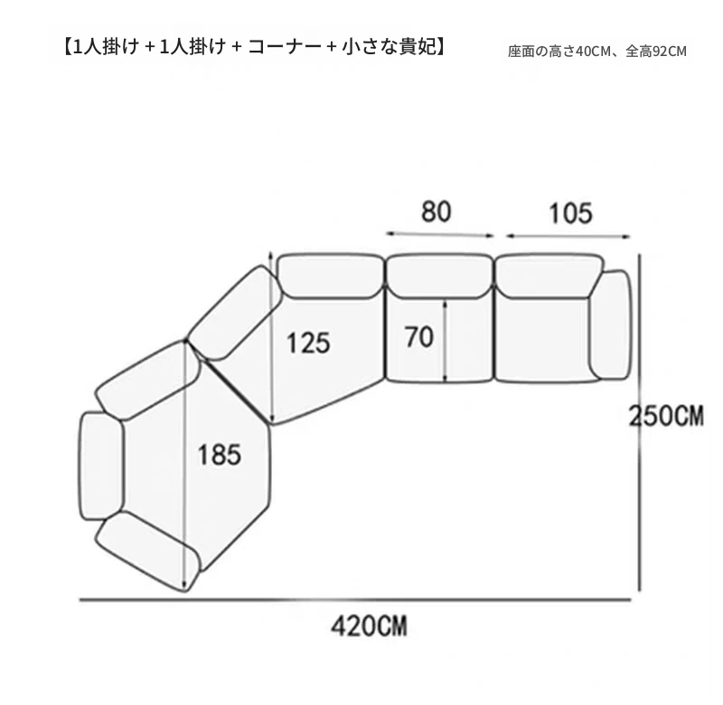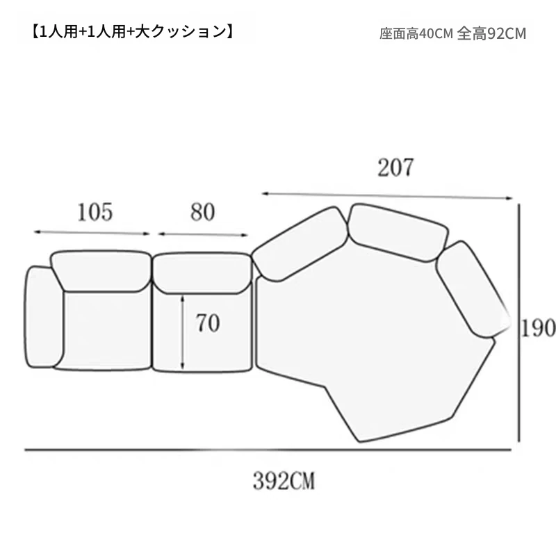1人用+アームレス1人用+コーナー+小オットマン