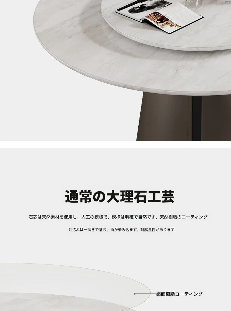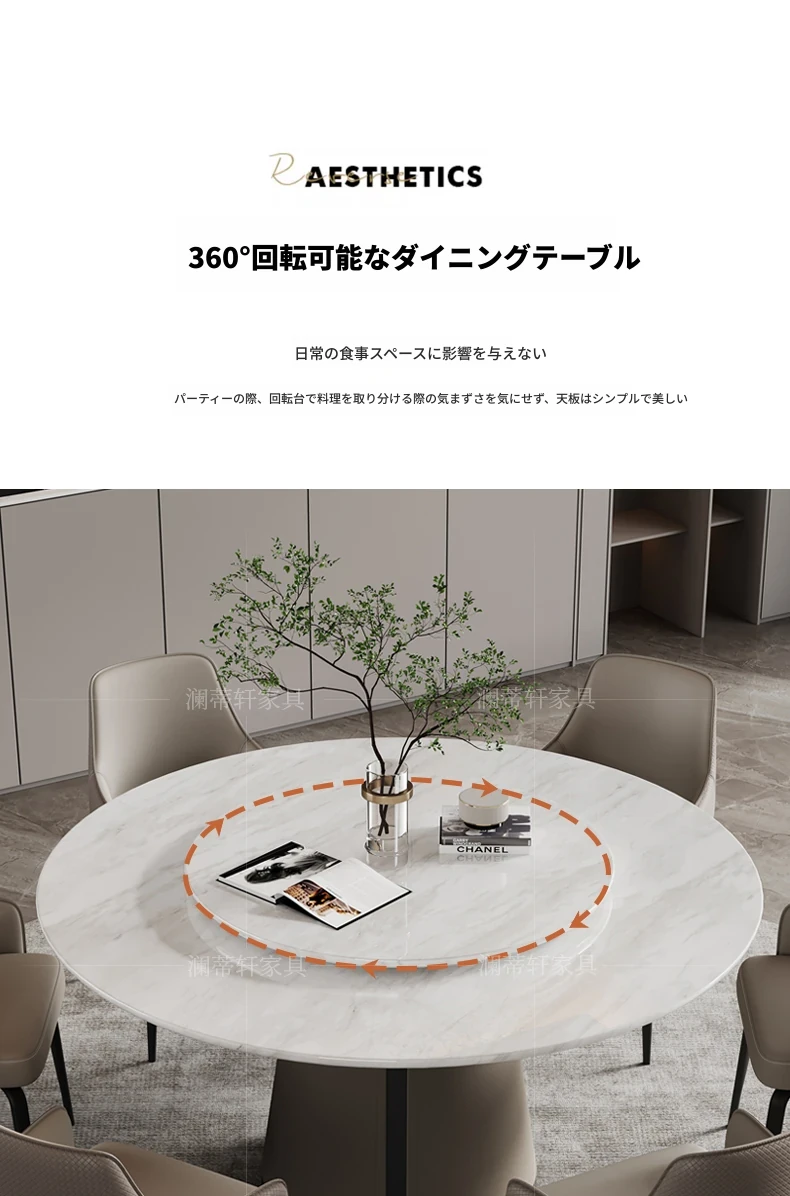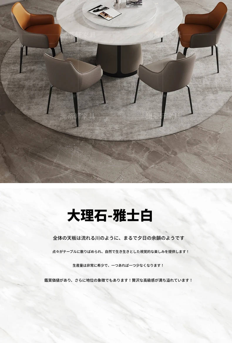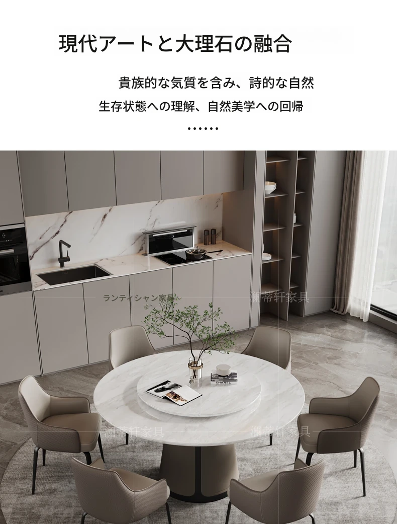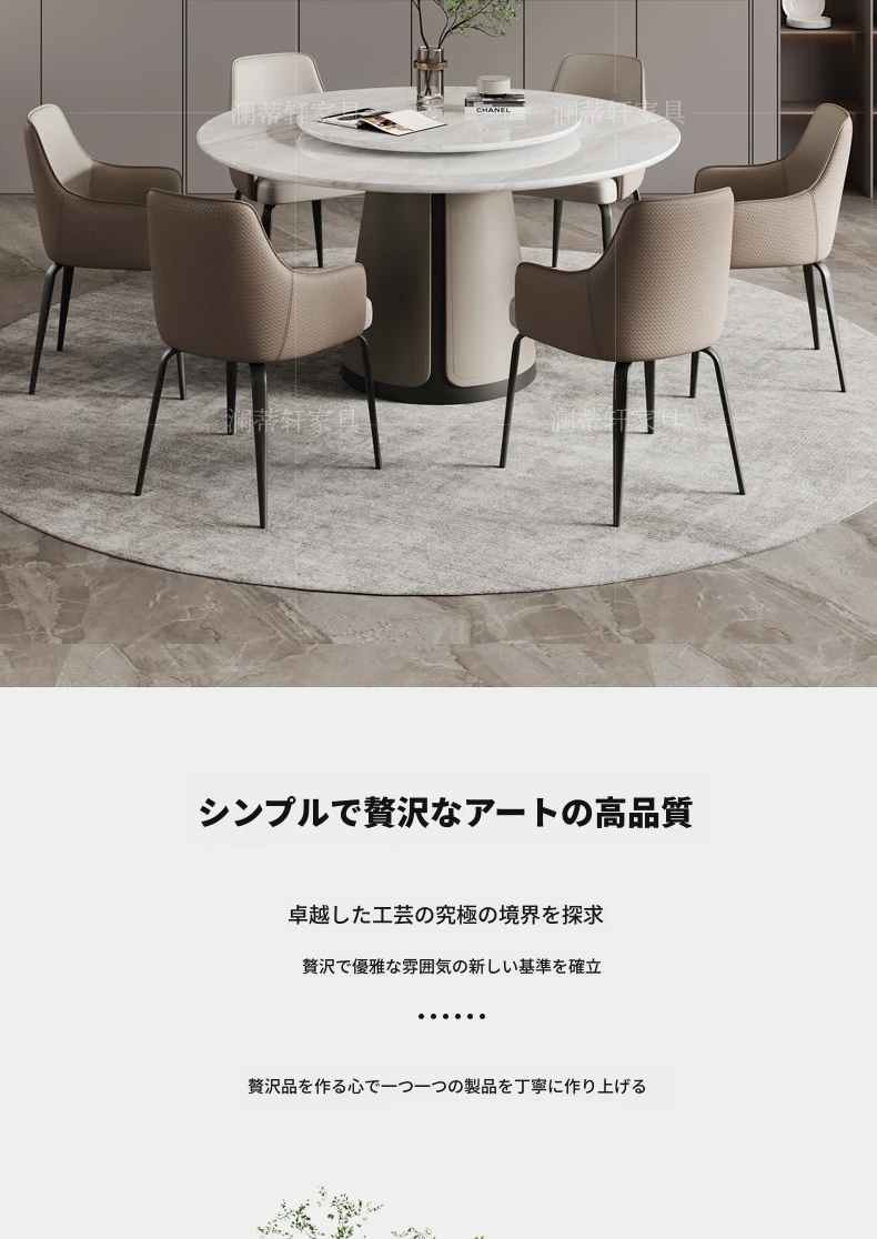 高級イタリアンスタイルの天然大理石ラウンドダイニングテーブル - コンパクトな家庭用、小型スペースにも最適!回転トレイ付きで便利さとスタイルを両立。