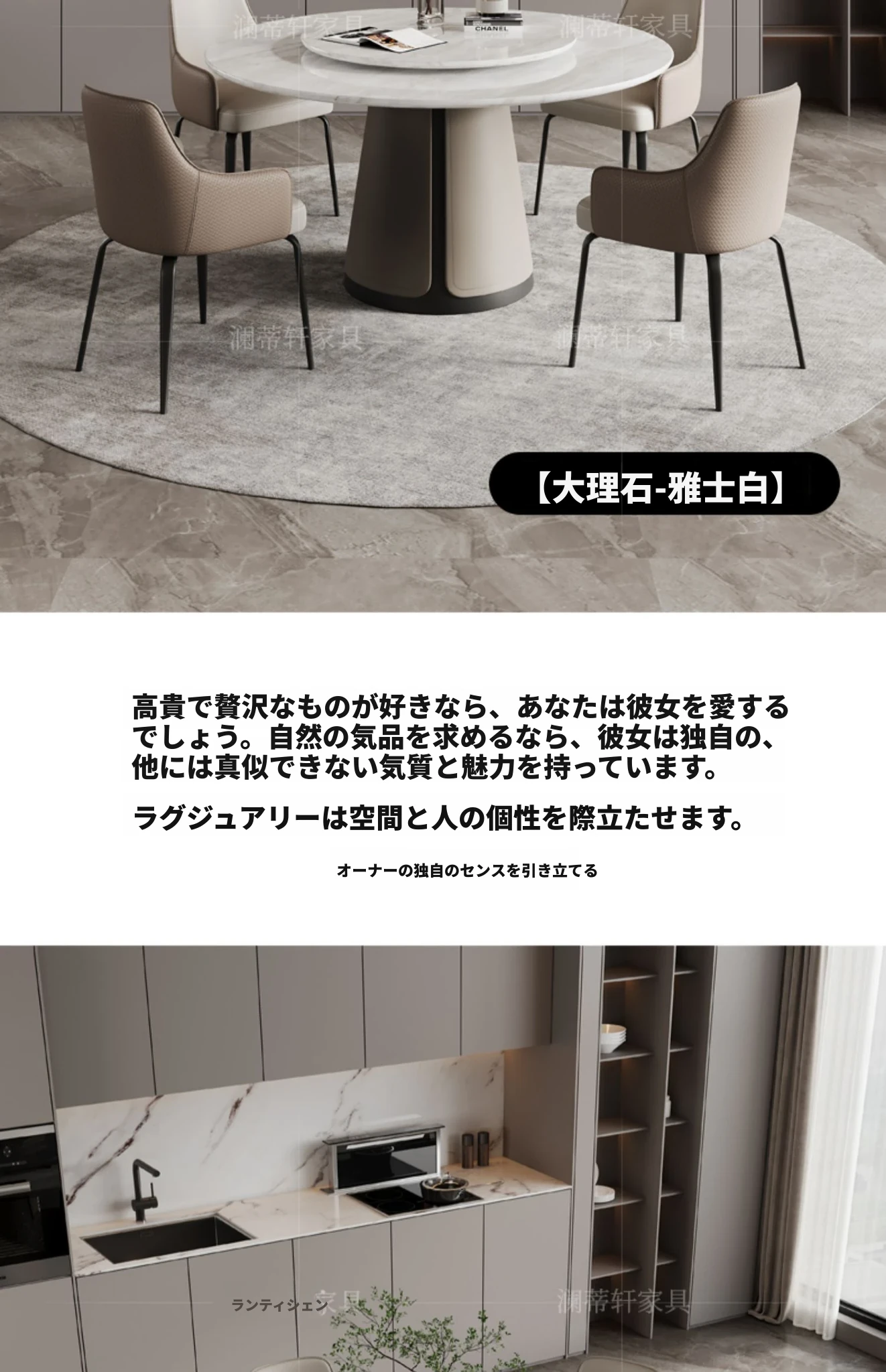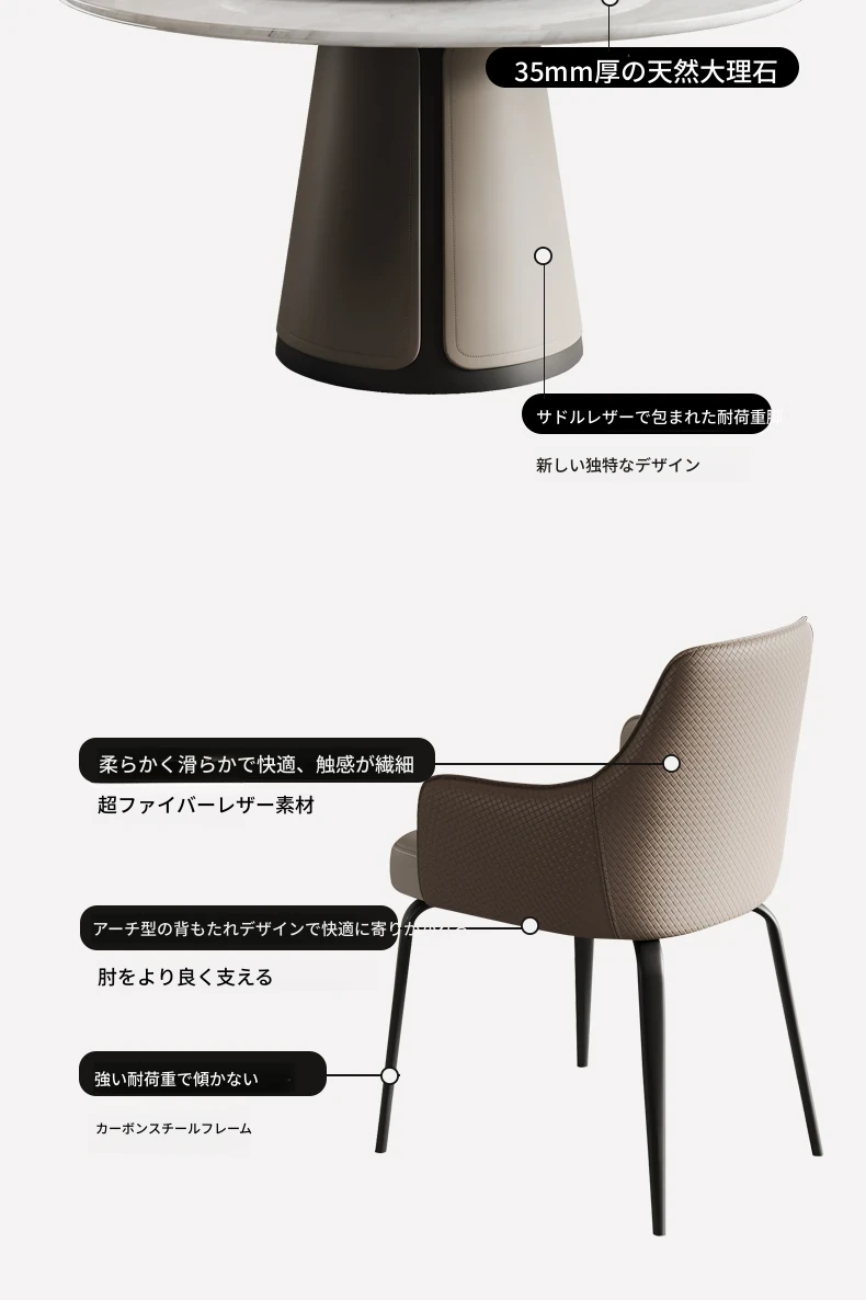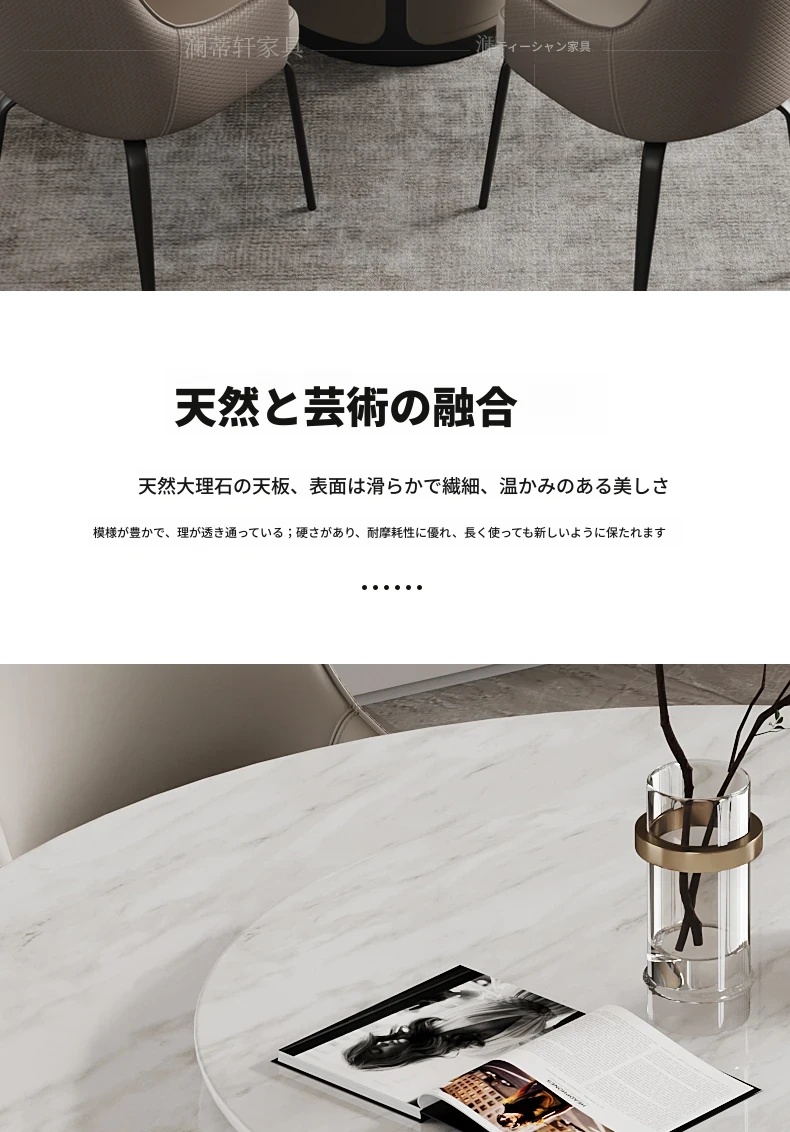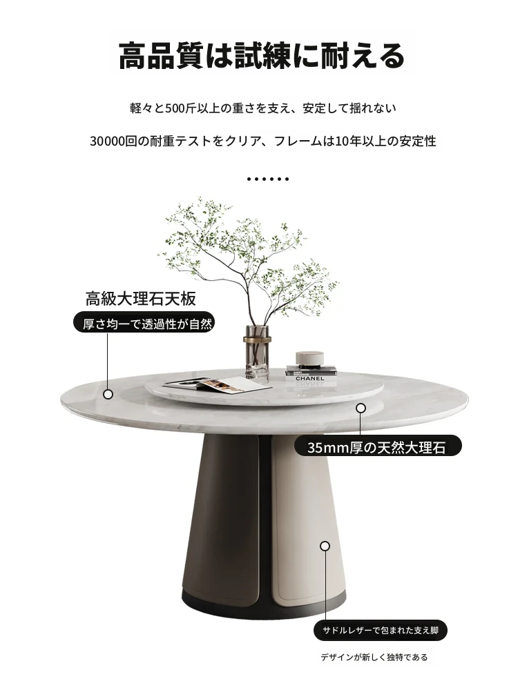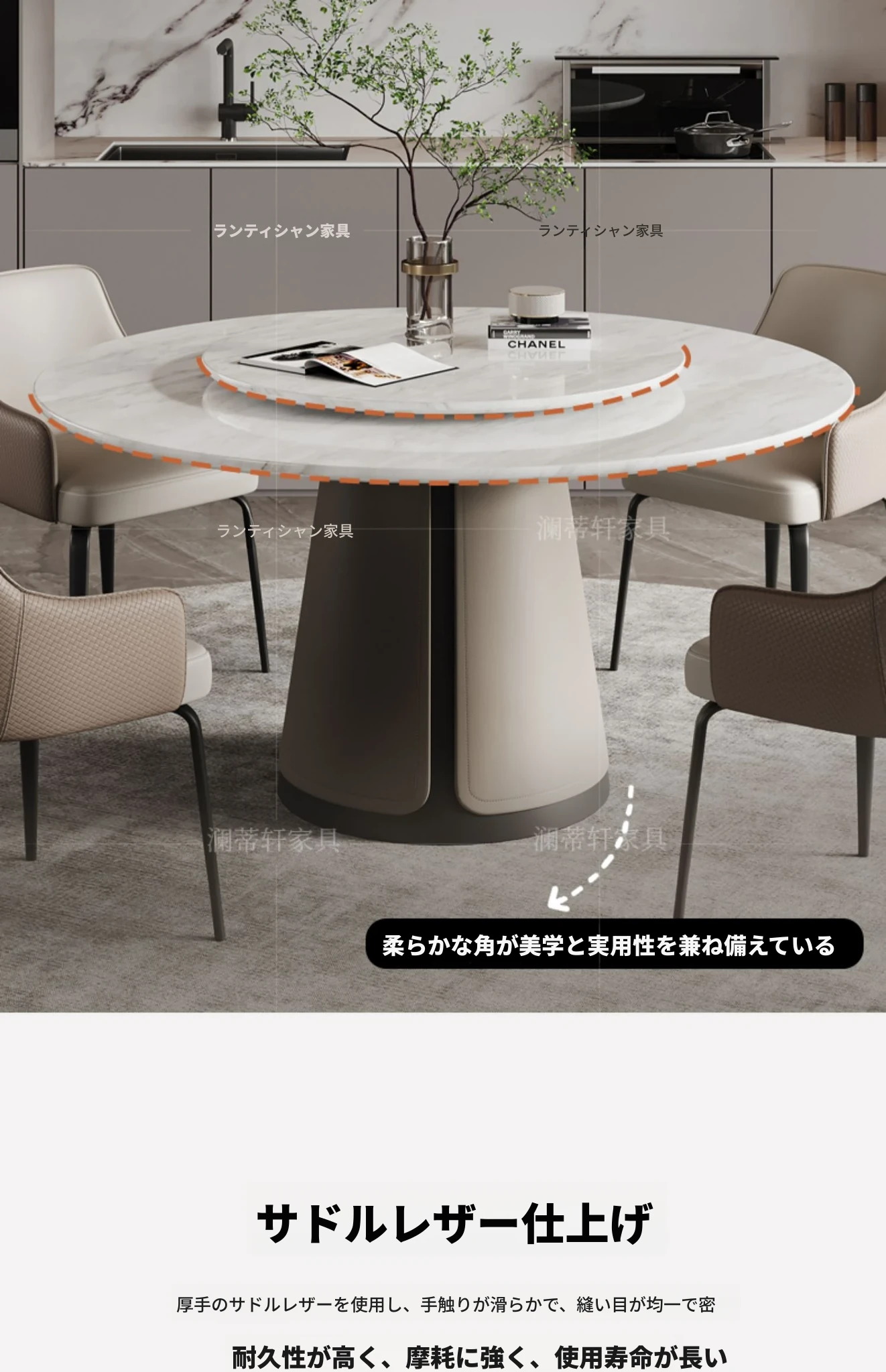高級イタリアンスタイルの天然大理石ラウンドダイニングテーブル - コンパクトな家庭用、小型スペースにも最適!回転トレイ付きで便利さとスタイルを両立。