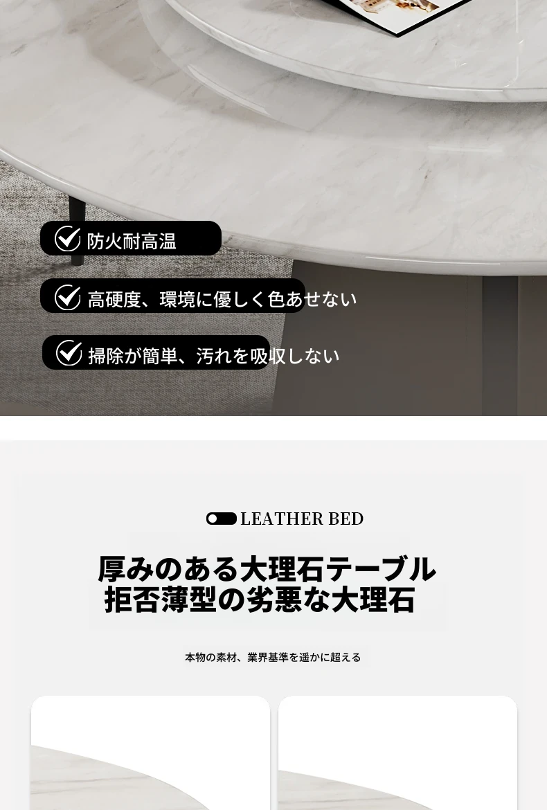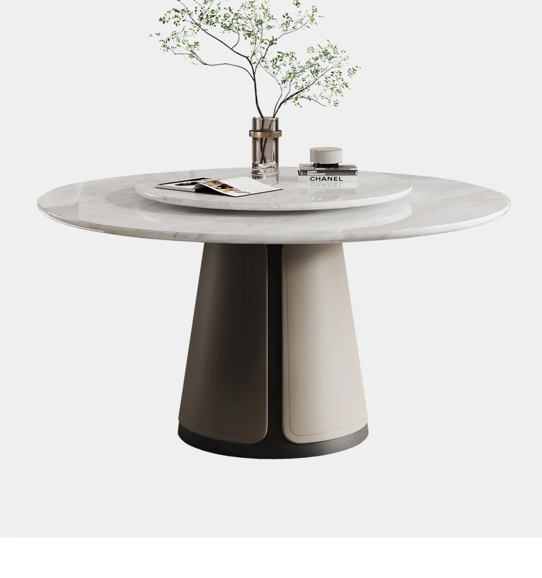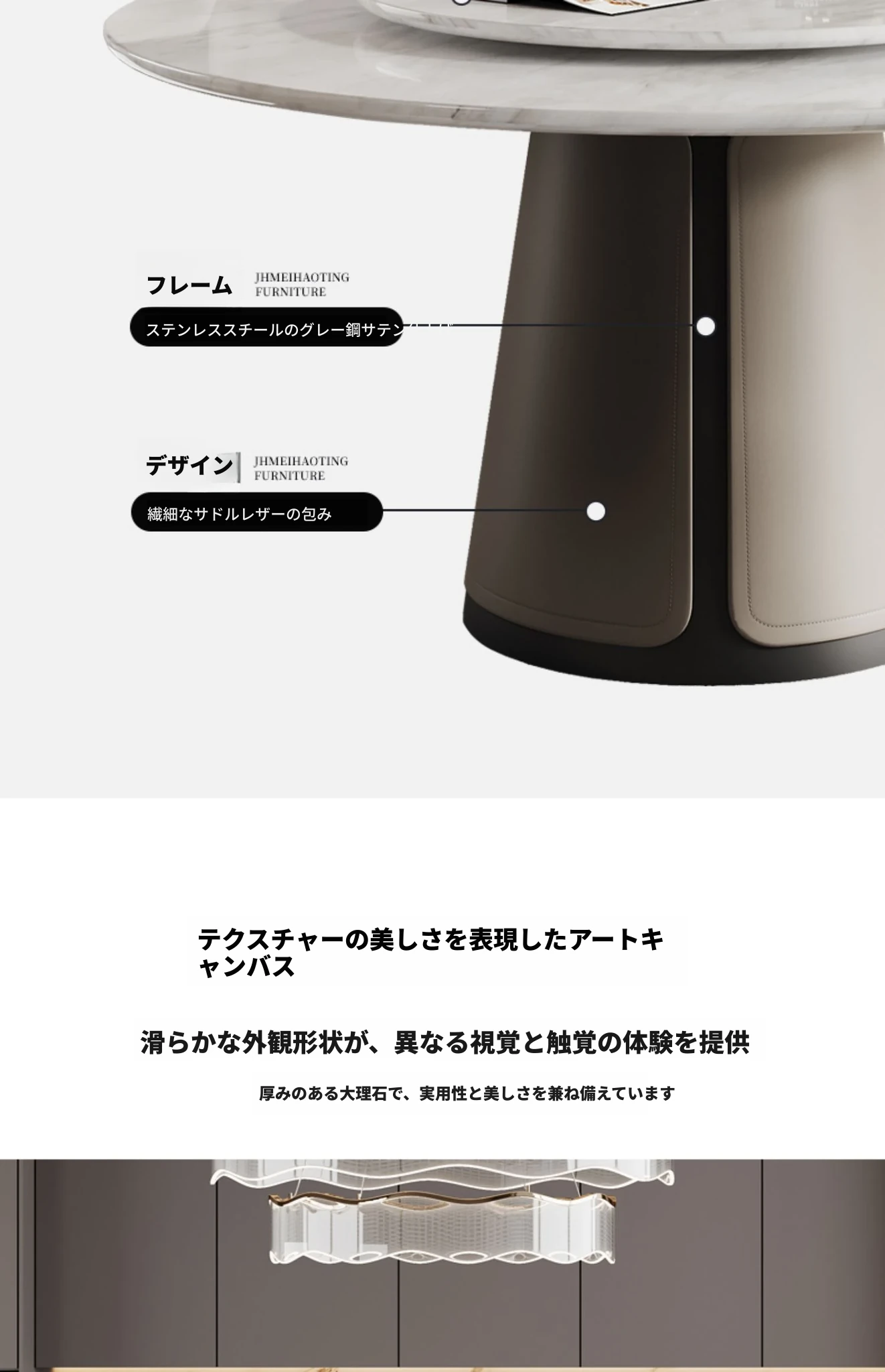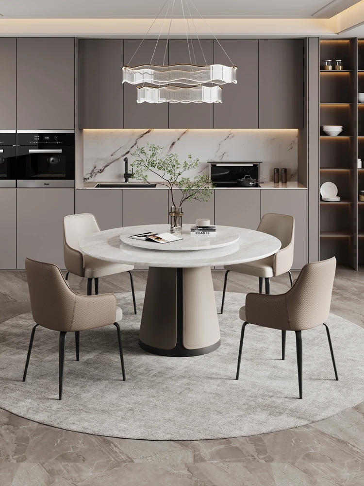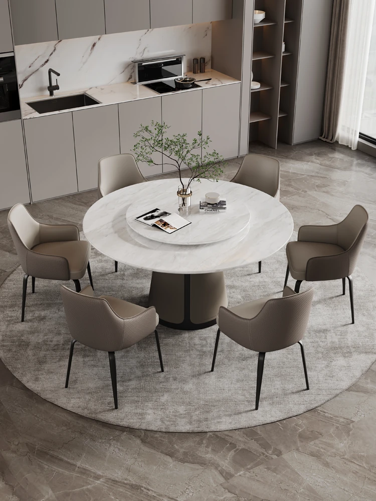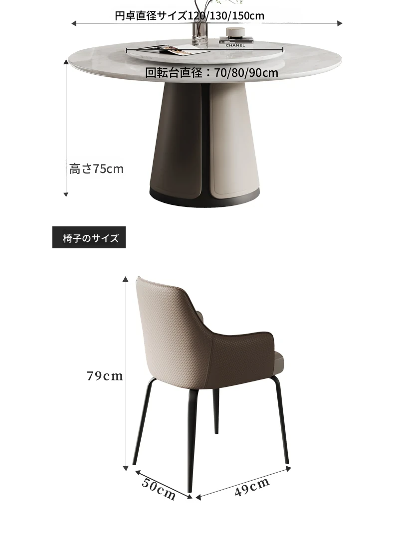 高級イタリアンスタイルの天然大理石ラウンドダイニングテーブル - コンパクトな家庭用、小型スペースにも最適!回転トレイ付きで便利さとスタイルを両立。