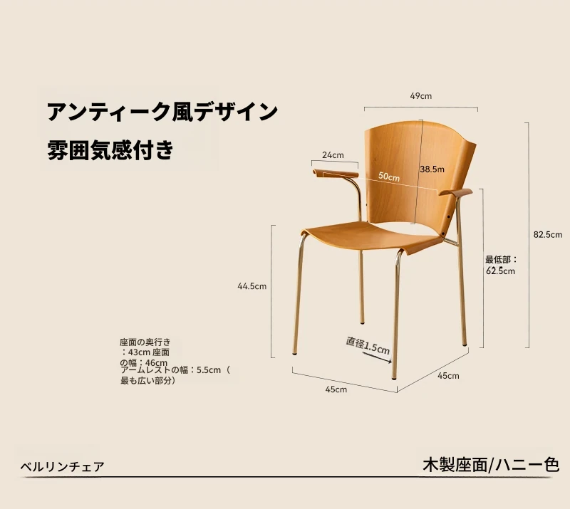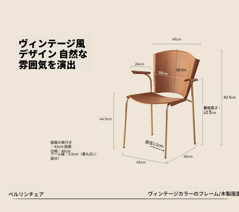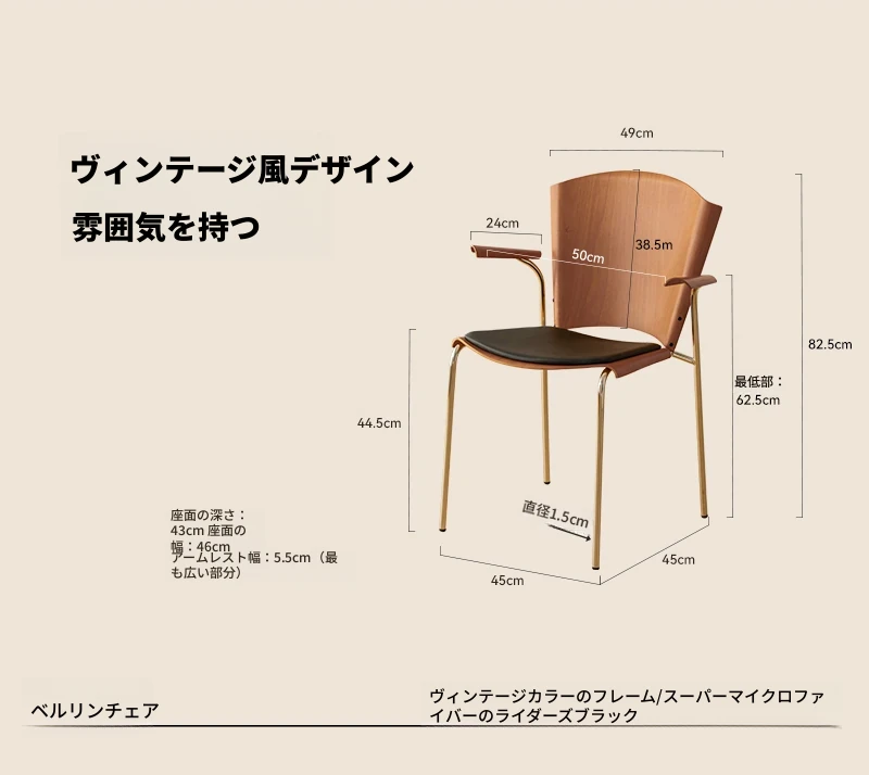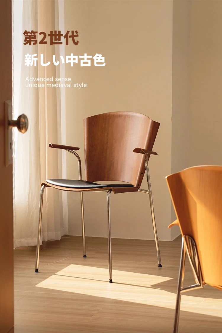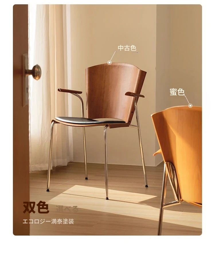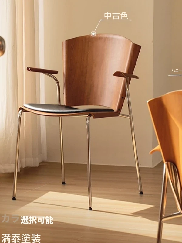 レトロデザインのデザイナーチェア|家庭用アームレスト付き背もたれチェア|ステンレス製の食卓椅子|アンティーク風のクリエイティブチェアでおしゃれなリビングを演出!