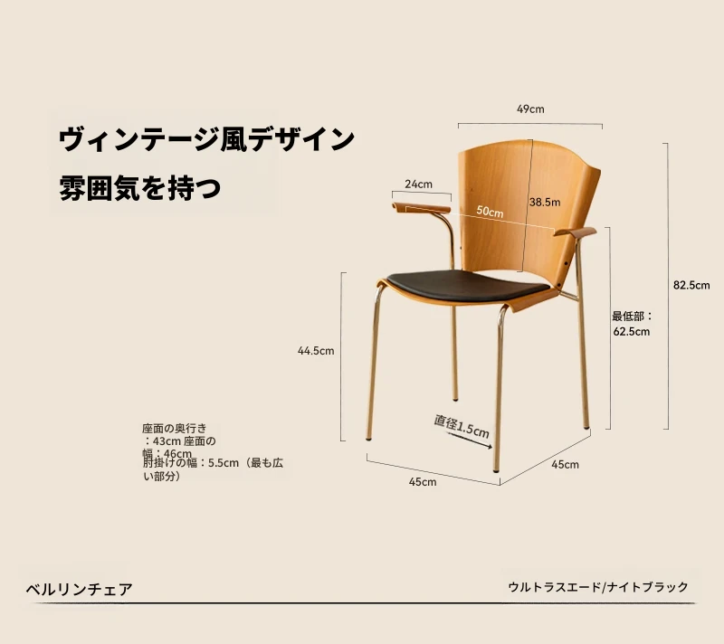 マイグ古典的なダイニングチェア|洗練されたデザインの背もたれ付き椅子|カフェや商談に最適|おしゃれな軽奢コスメチェア|自宅用の中古デザイナー椅子