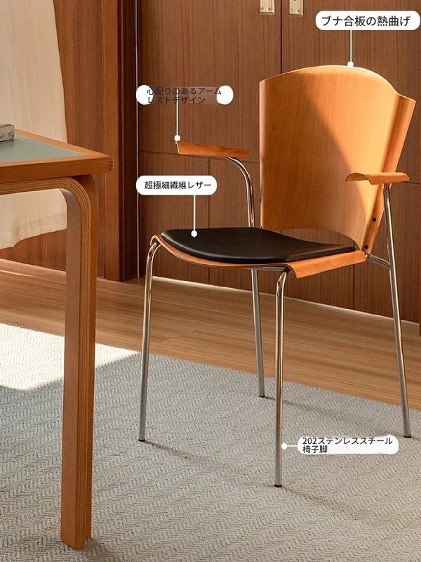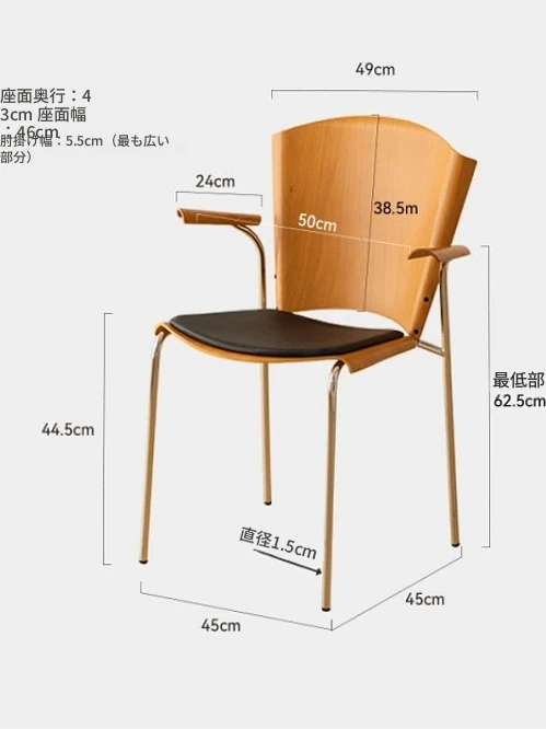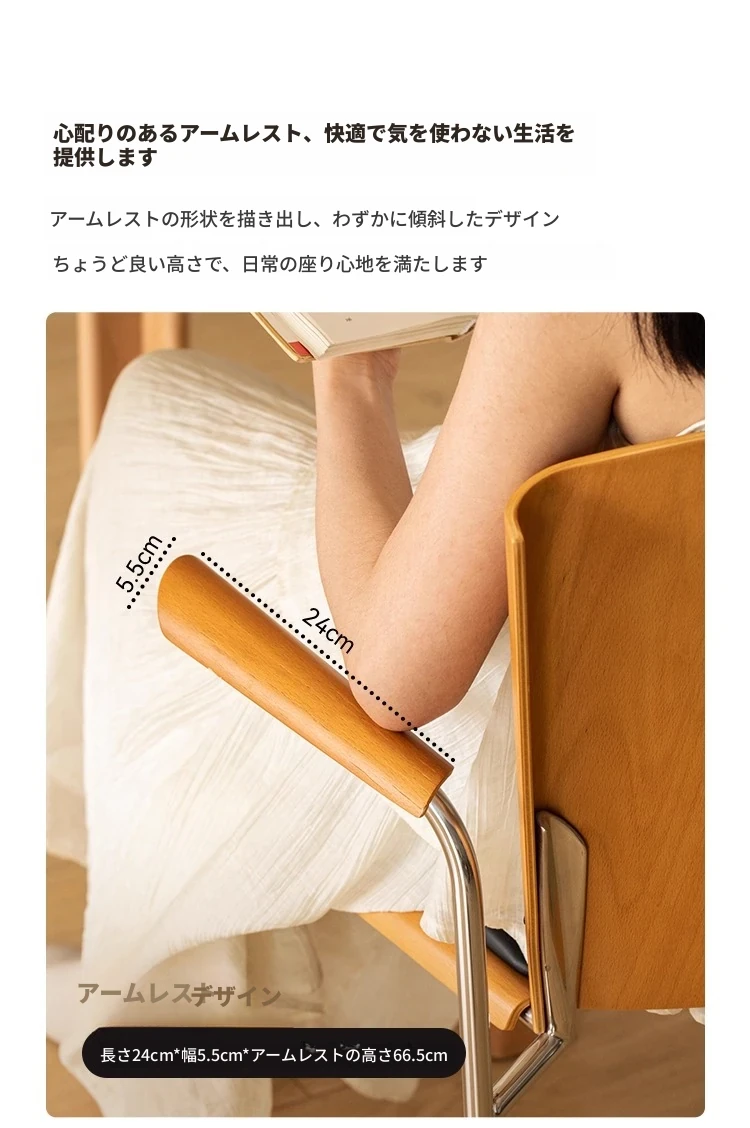 北欧風シンプルな無垢材ダイニングチェア|家庭用・カフェ・ティールームに最適|スタッキング可能でスペースを節約|快適な背もたれ付きの一人掛け椅子