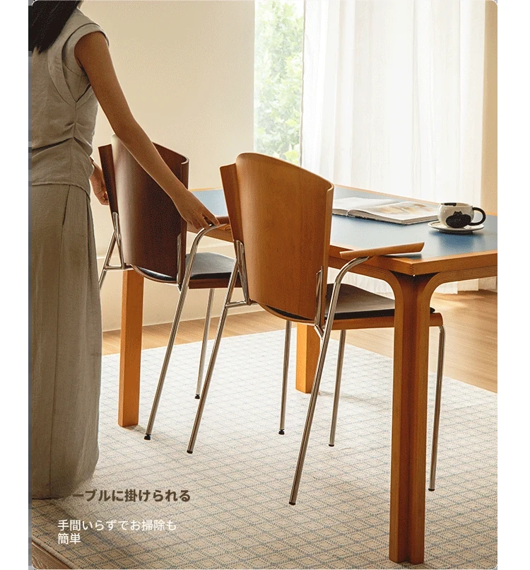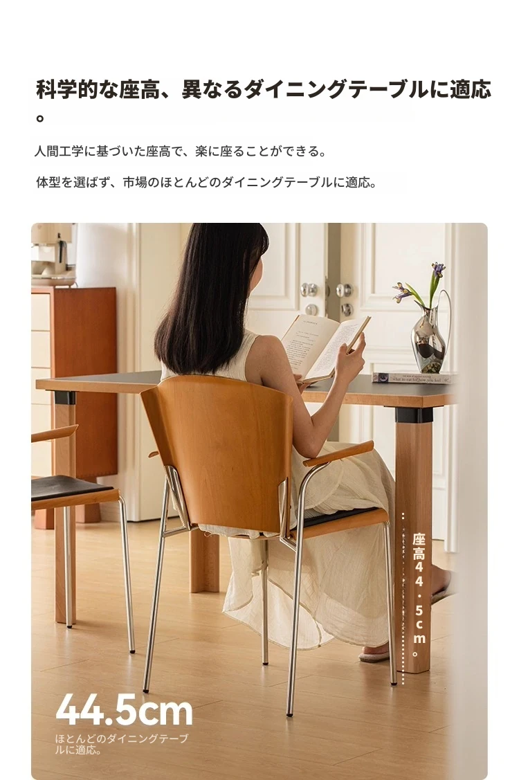 北欧スタイルの小型中古風デザイン、重ねられる背もたれ付きダイニングチェア。シンプルで洗練されたデザイン、家庭にぴったりのダイニングセット!