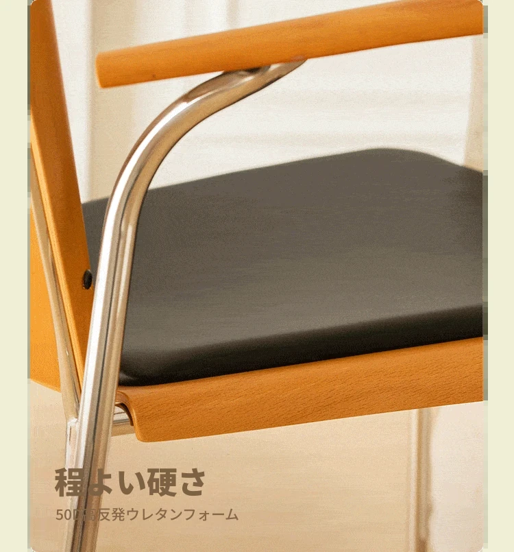 ヴィンテージ風フレンチスタイルの木製ソフトパッドダイニングチェア - リビングやダイニングにぴったり!ステンレススチールのアームレスト付きで、オフィスやリラックスタイムにも最適な背もたれ付きチェア。