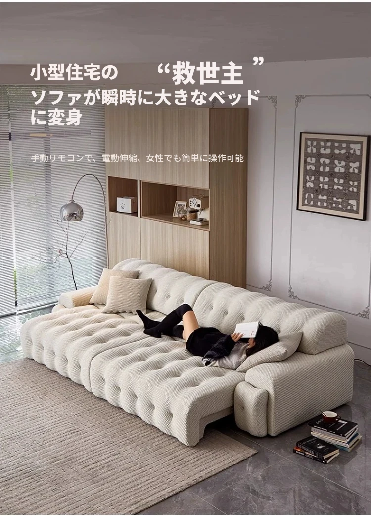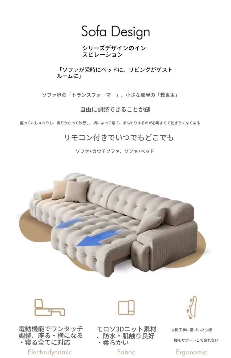 ロッキーバー電動ソファー - イタリアンミニマリズムの小型布製機能ソファー!折りたたみ・伸縮可能で、調整自在のソファベッド。狭い空間でもスタイリッシュに使える、あなたのリビングに最適な一品!