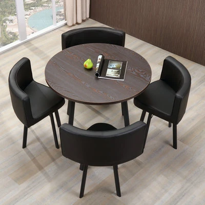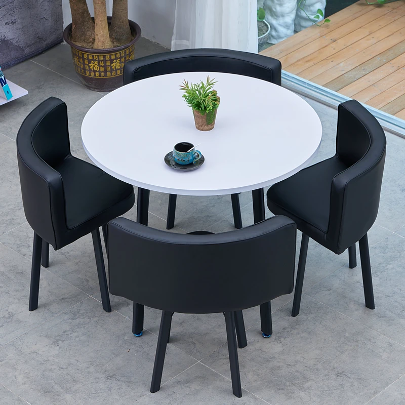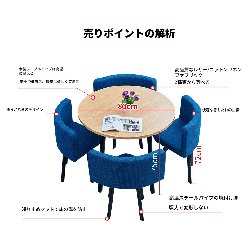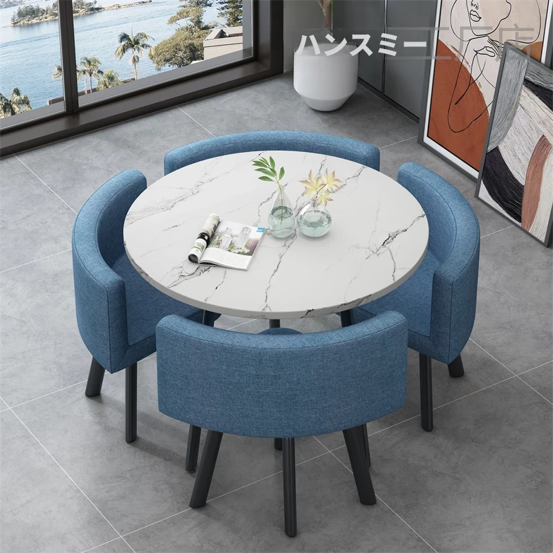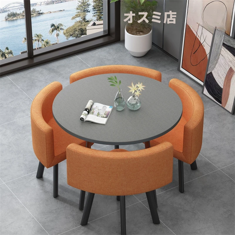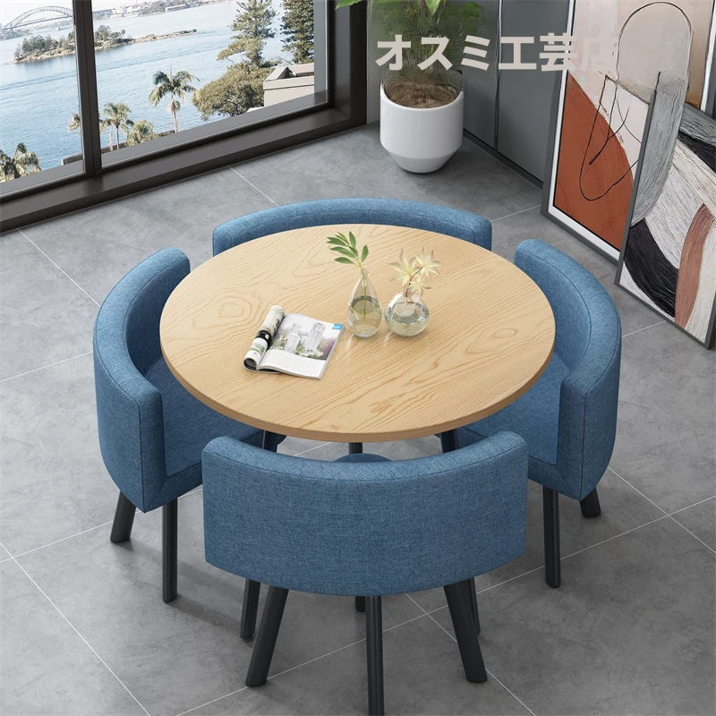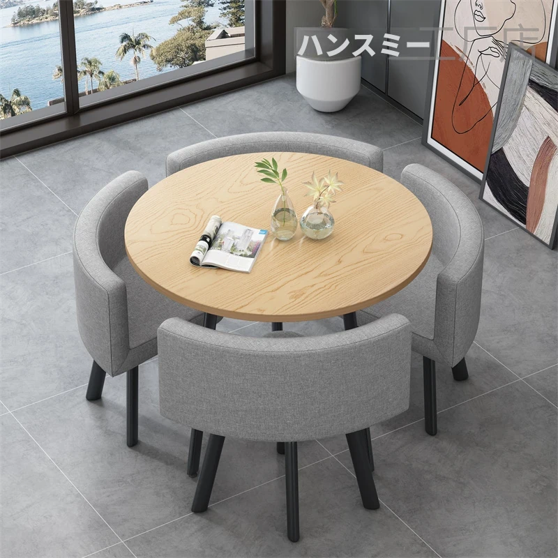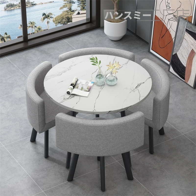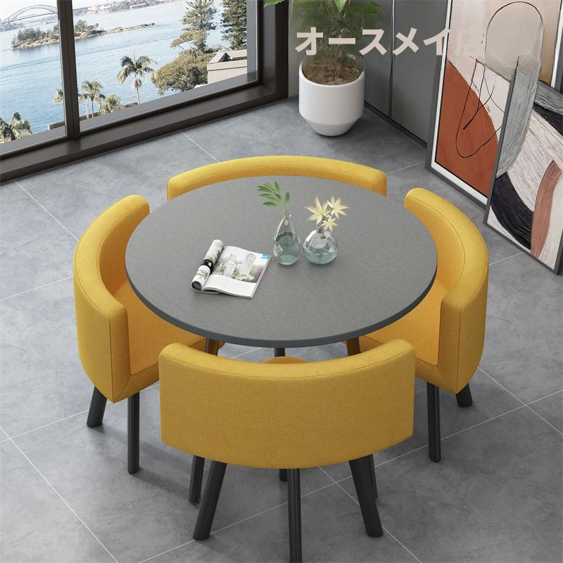シンプルでスタイリッシュなビジネスミーティング用テーブル&チェアセット - 1テーブル4チェアの快適なオフィス&くつろぎスペース、円形デザインでおしゃれなカフェやティーショップに最適!