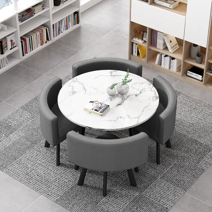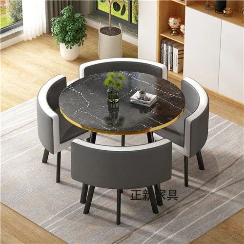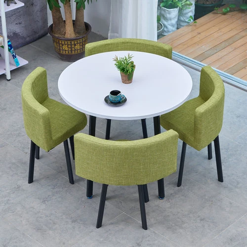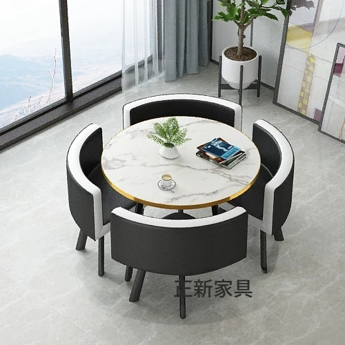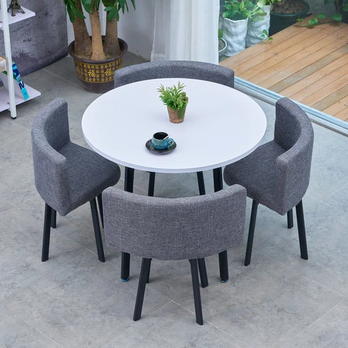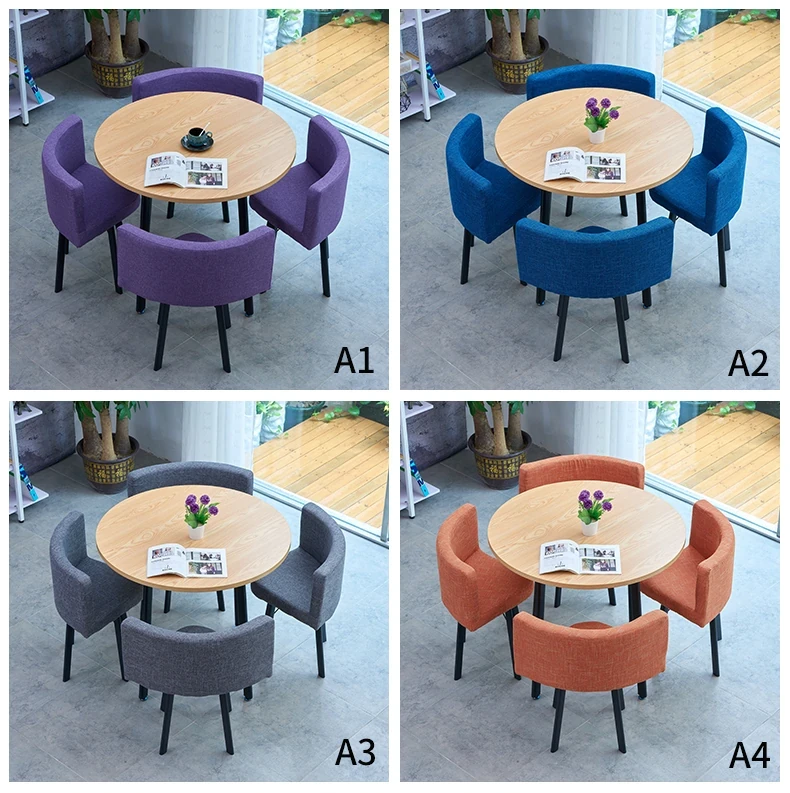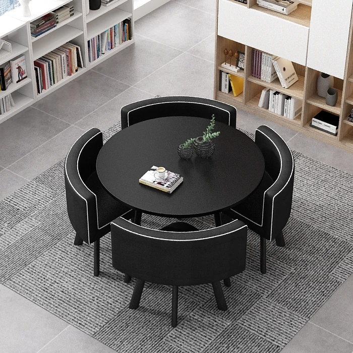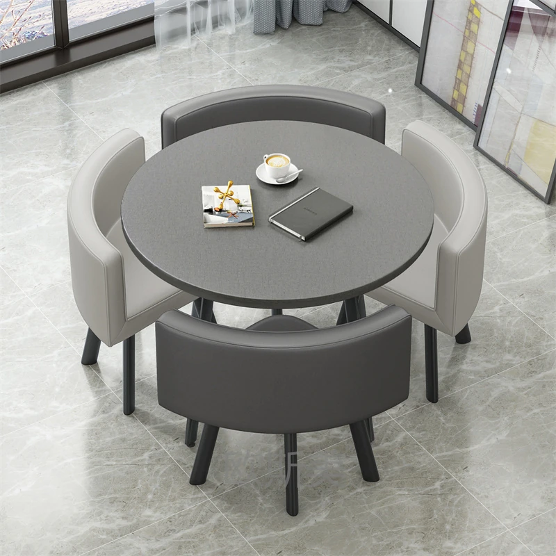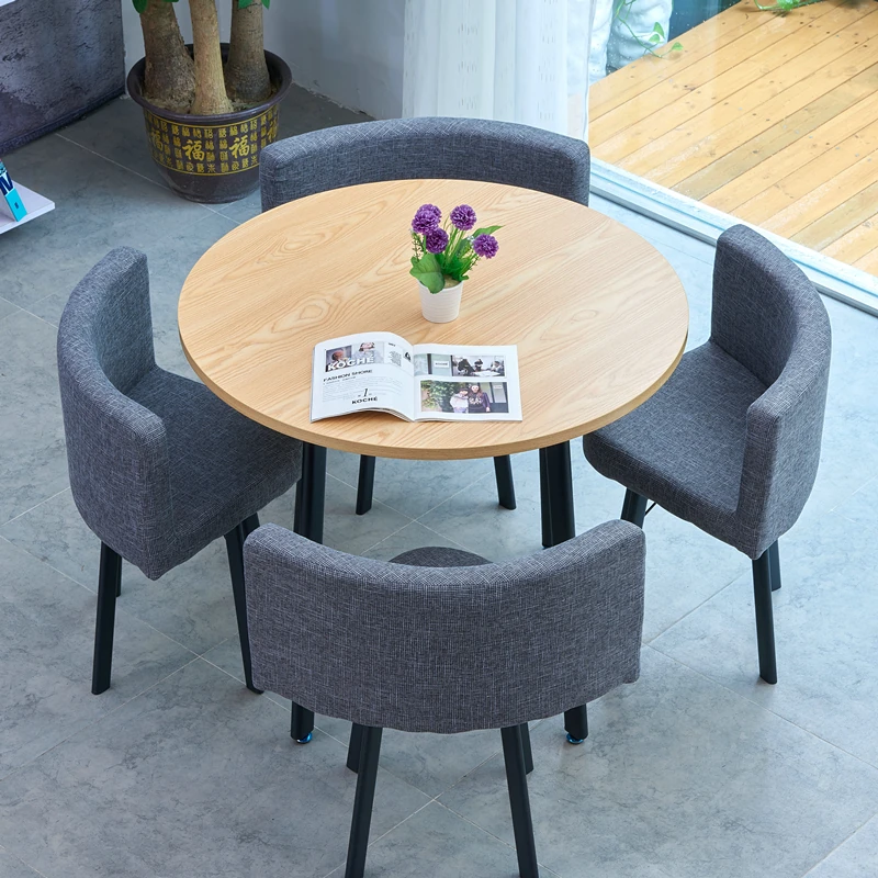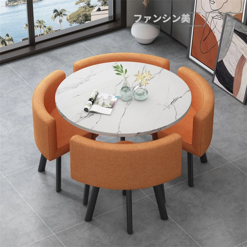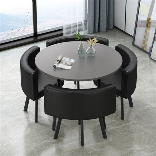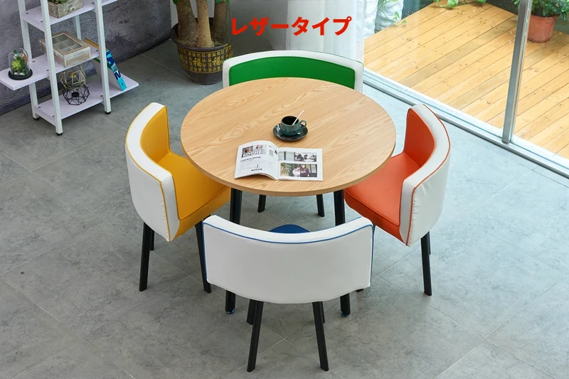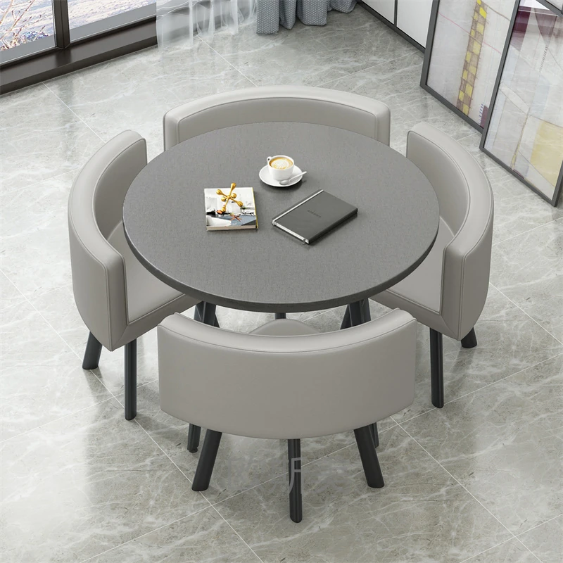 シンプルでスタイリッシュなビジネスミーティング用テーブル&チェアセット - 1テーブル4チェアの快適なオフィス&くつろぎスペース、円形デザインでおしゃれなカフェやティーショップに最適!