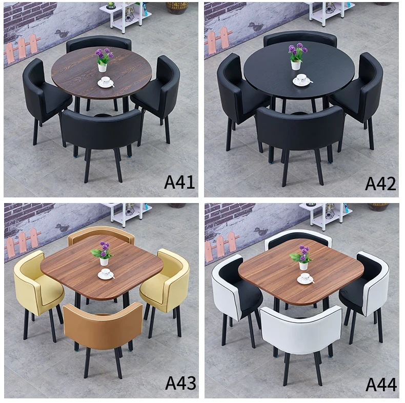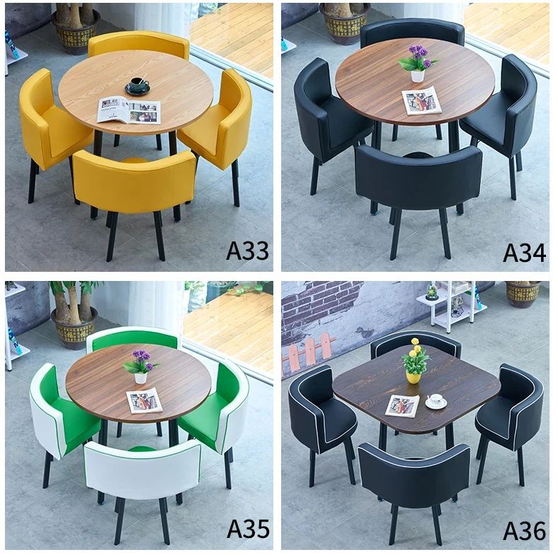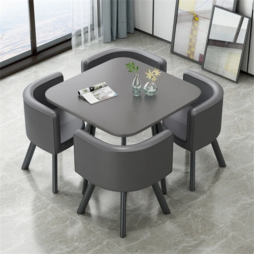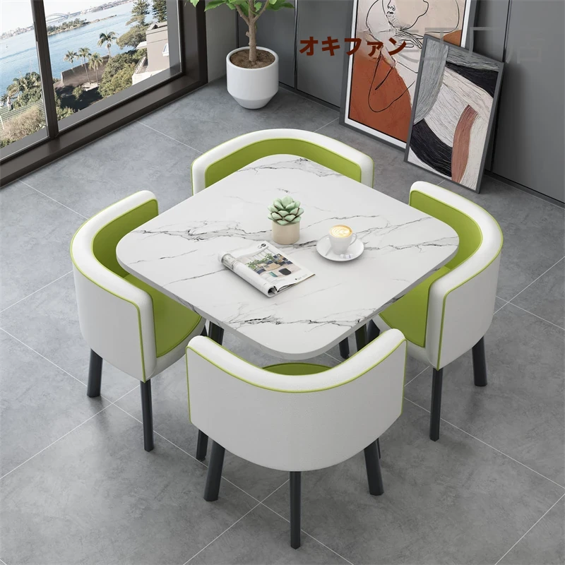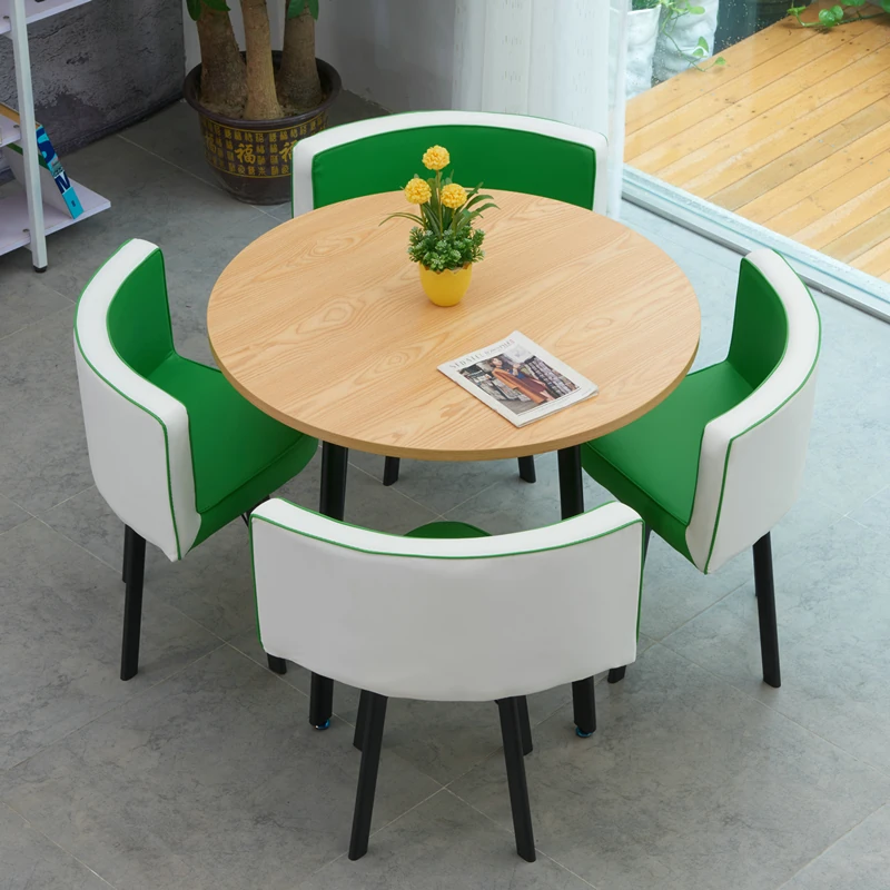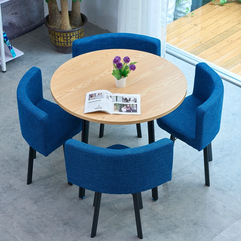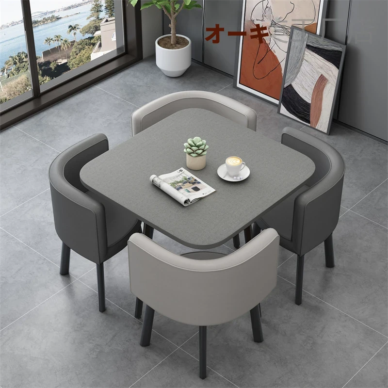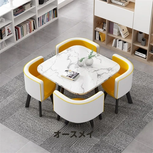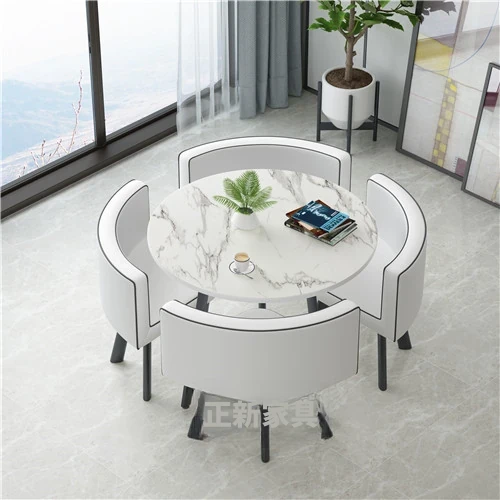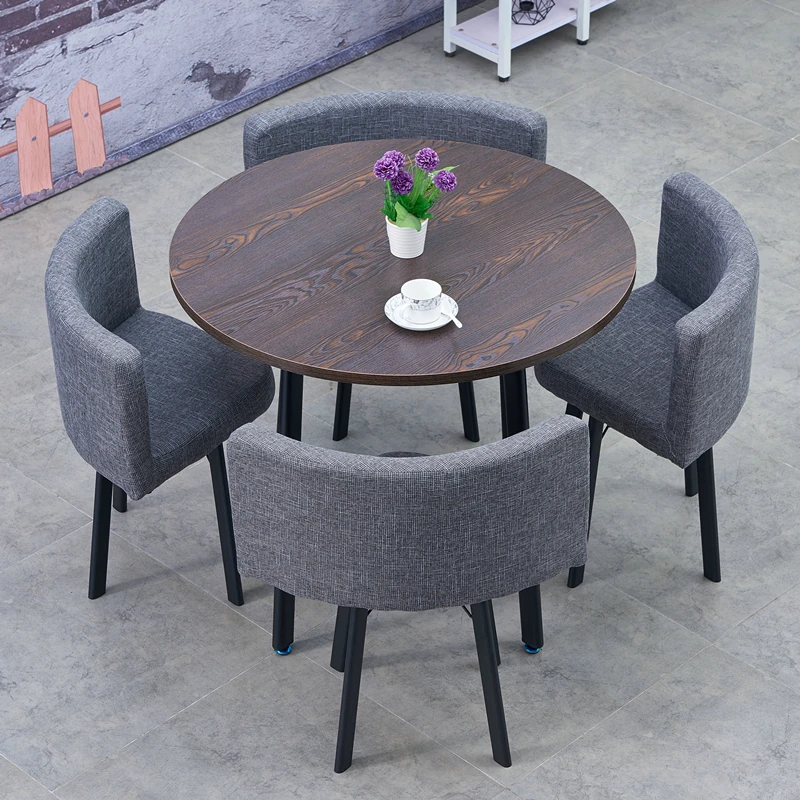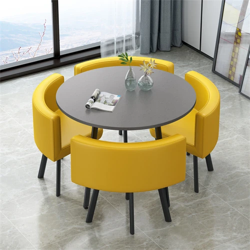 シンプルでスタイリッシュなビジネスミーティング用テーブル&チェアセット - 1テーブル4チェアの快適なオフィス&くつろぎスペース、円形デザインでおしゃれなカフェやティーショップに最適!