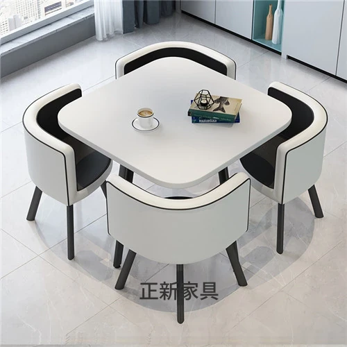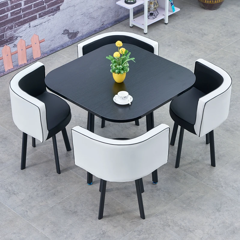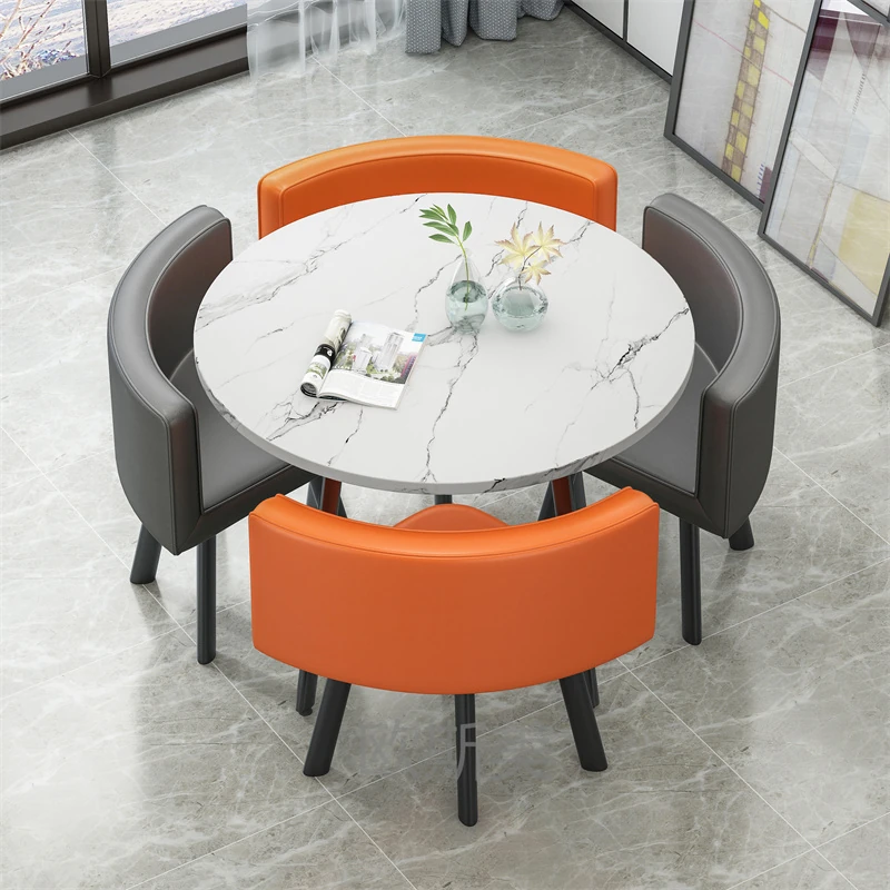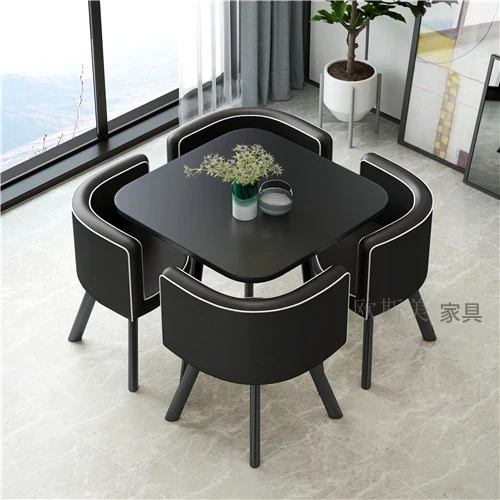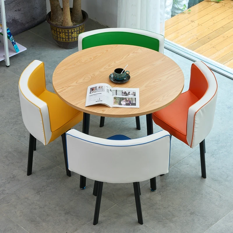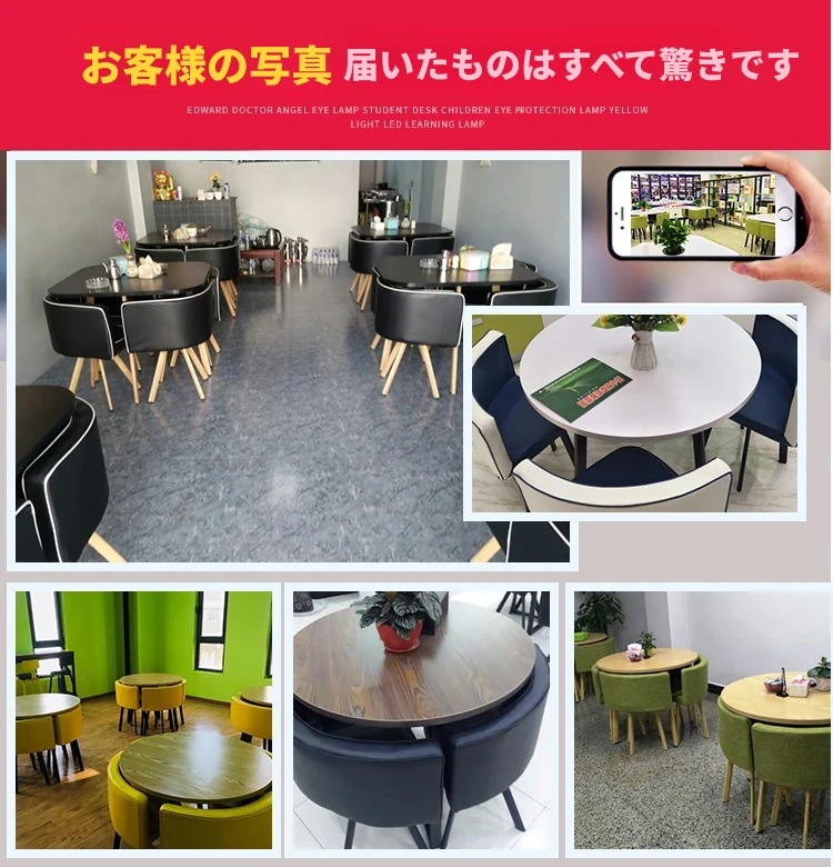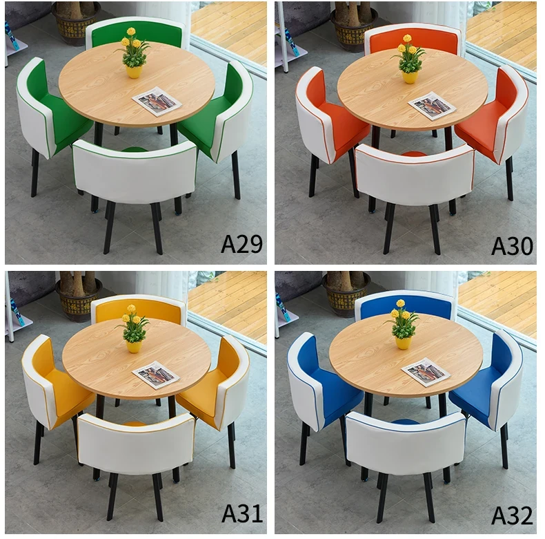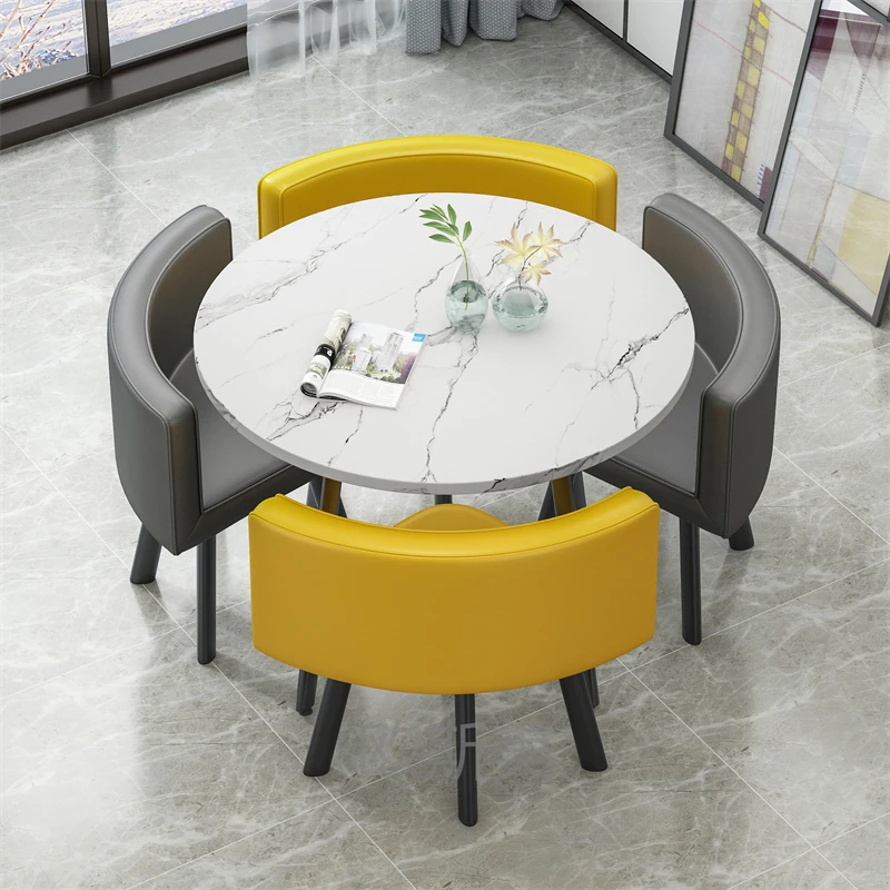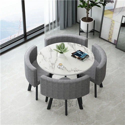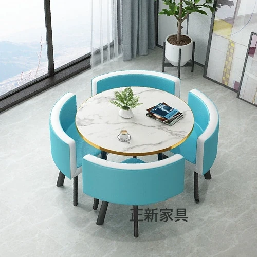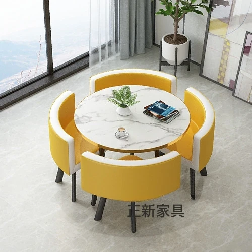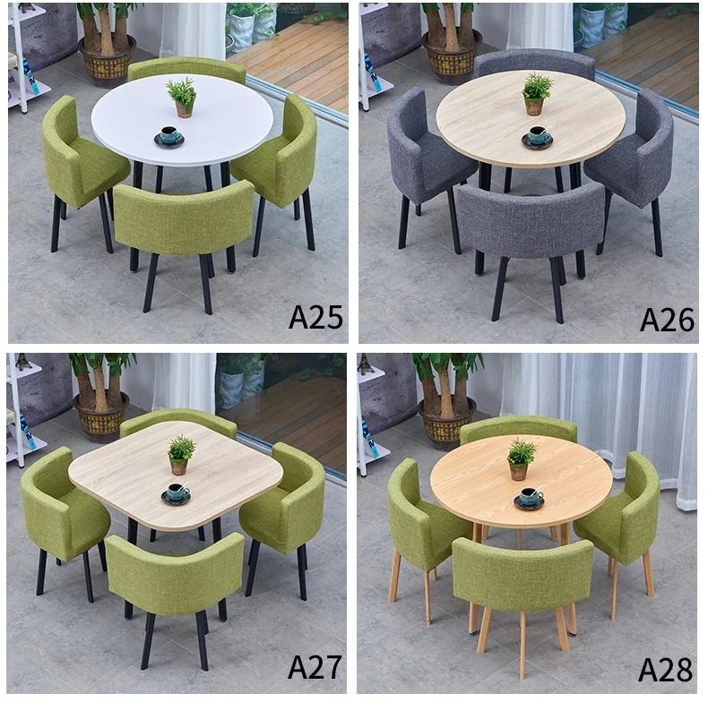 シンプルでスタイリッシュなビジネスミーティング用テーブル&チェアセット - 1テーブル4チェアの快適なオフィス&くつろぎスペース、円形デザインでおしゃれなカフェやティーショップに最適!